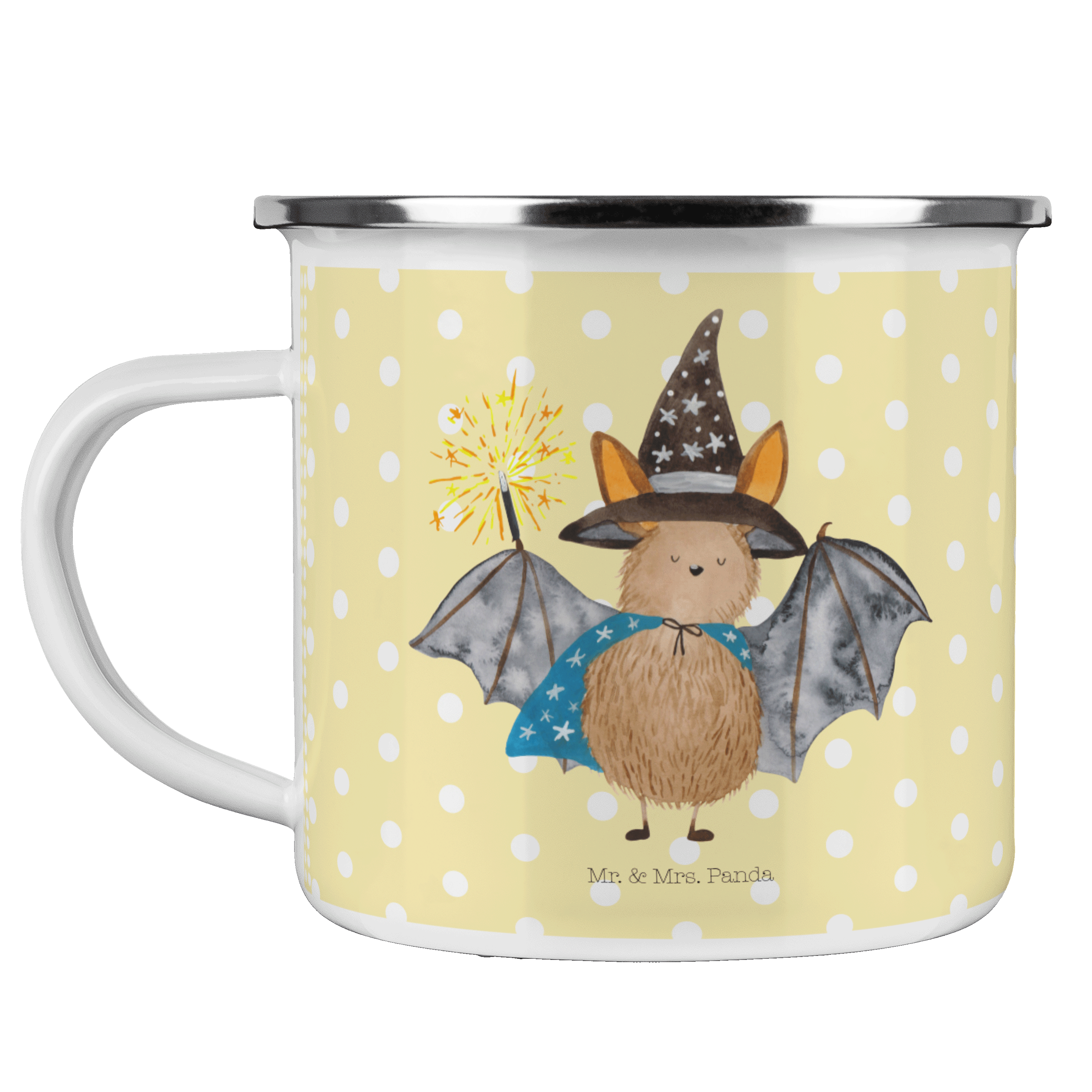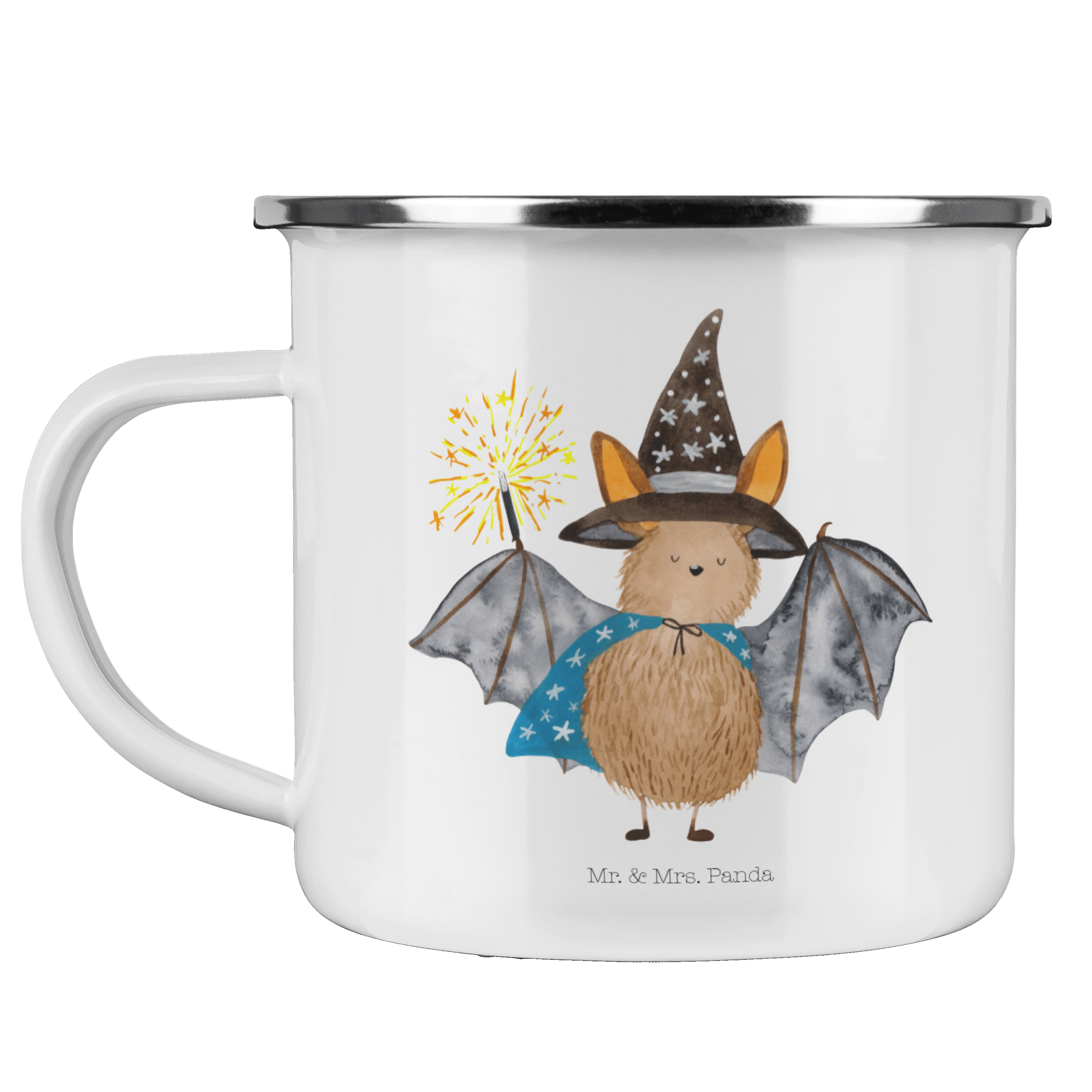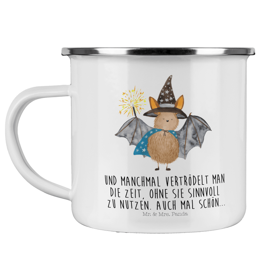 Camping Emaille Tasse Fledermaus Zauberer - mit Spruch - Weiß