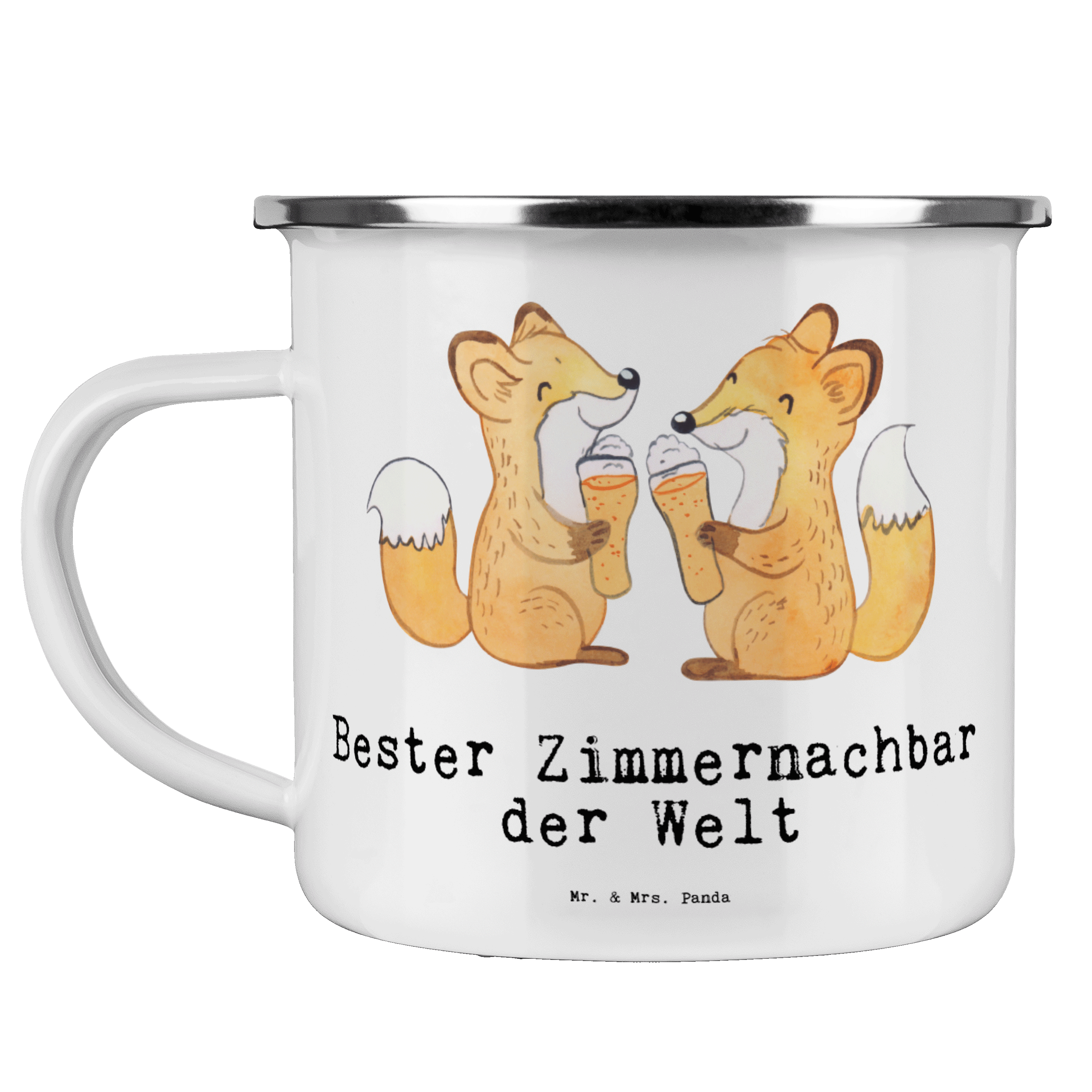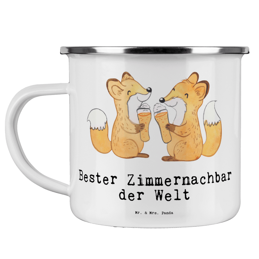 Camping Emaille Tasse Fuchs Bester Zimmernachbar der Welt - Weiß