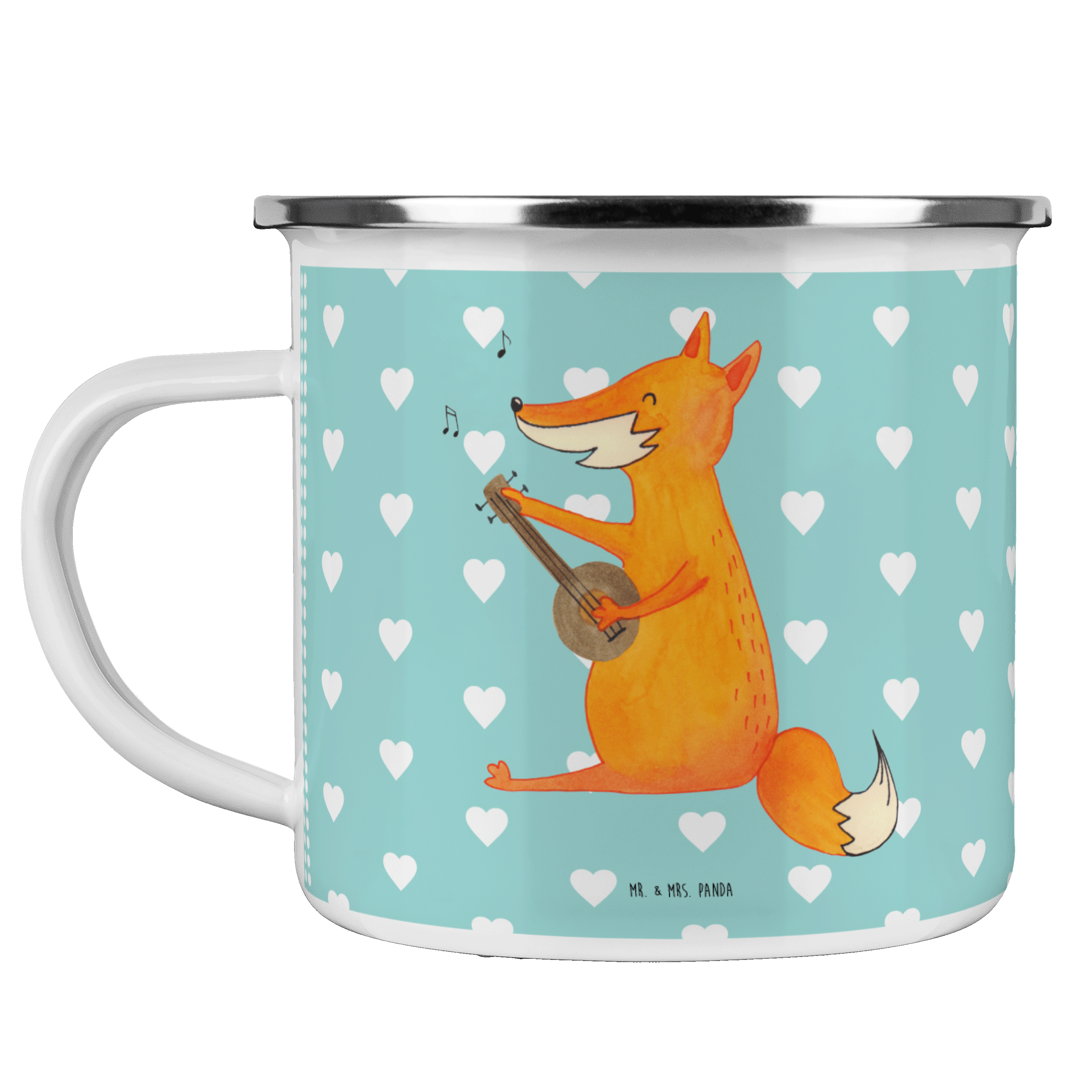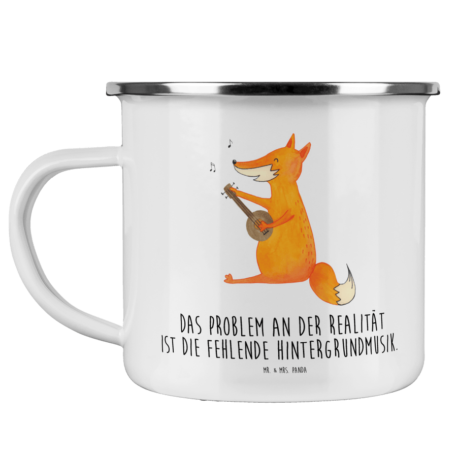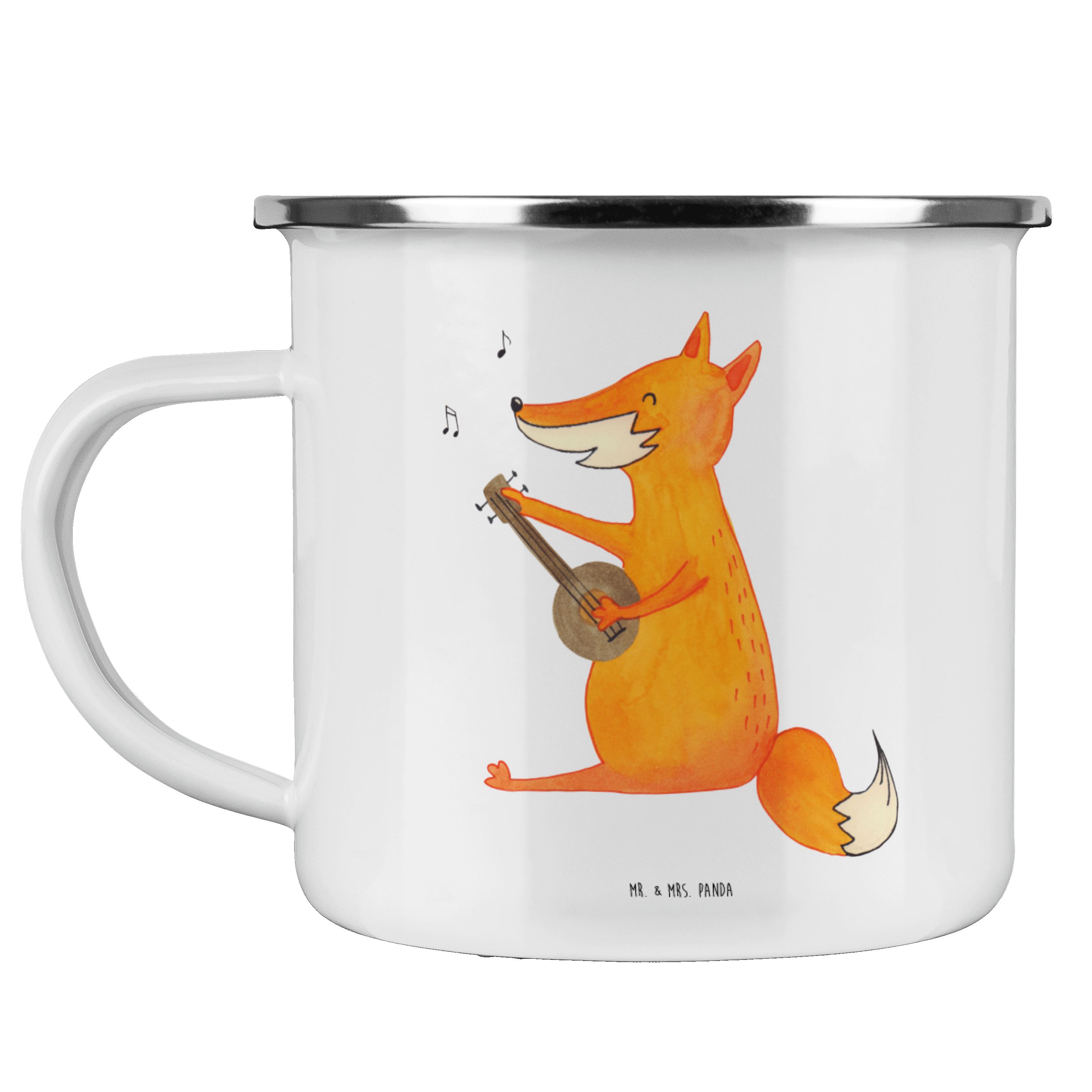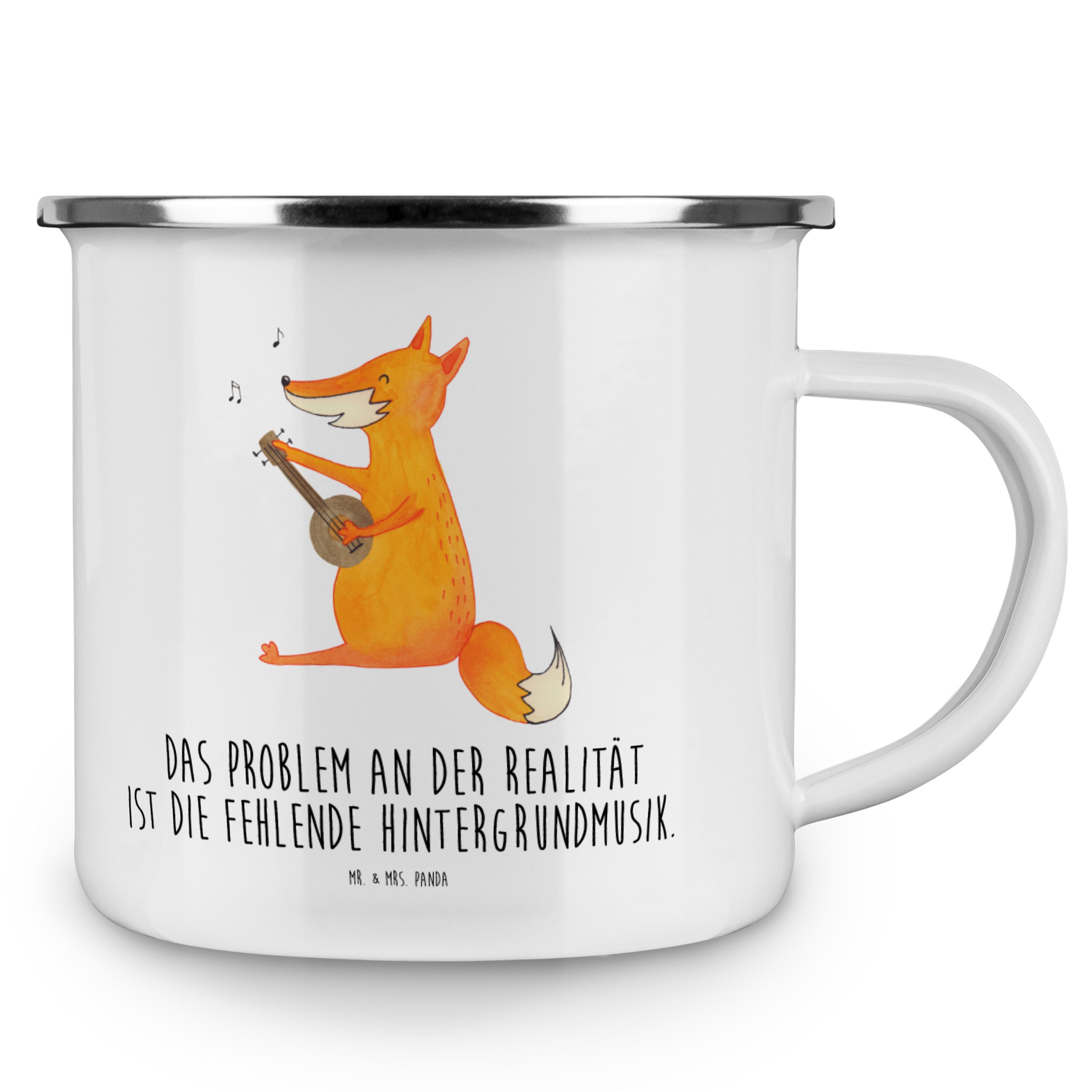 Camping Emaille Tasse Fuchs Gitarre - mit Spruch - Weiß