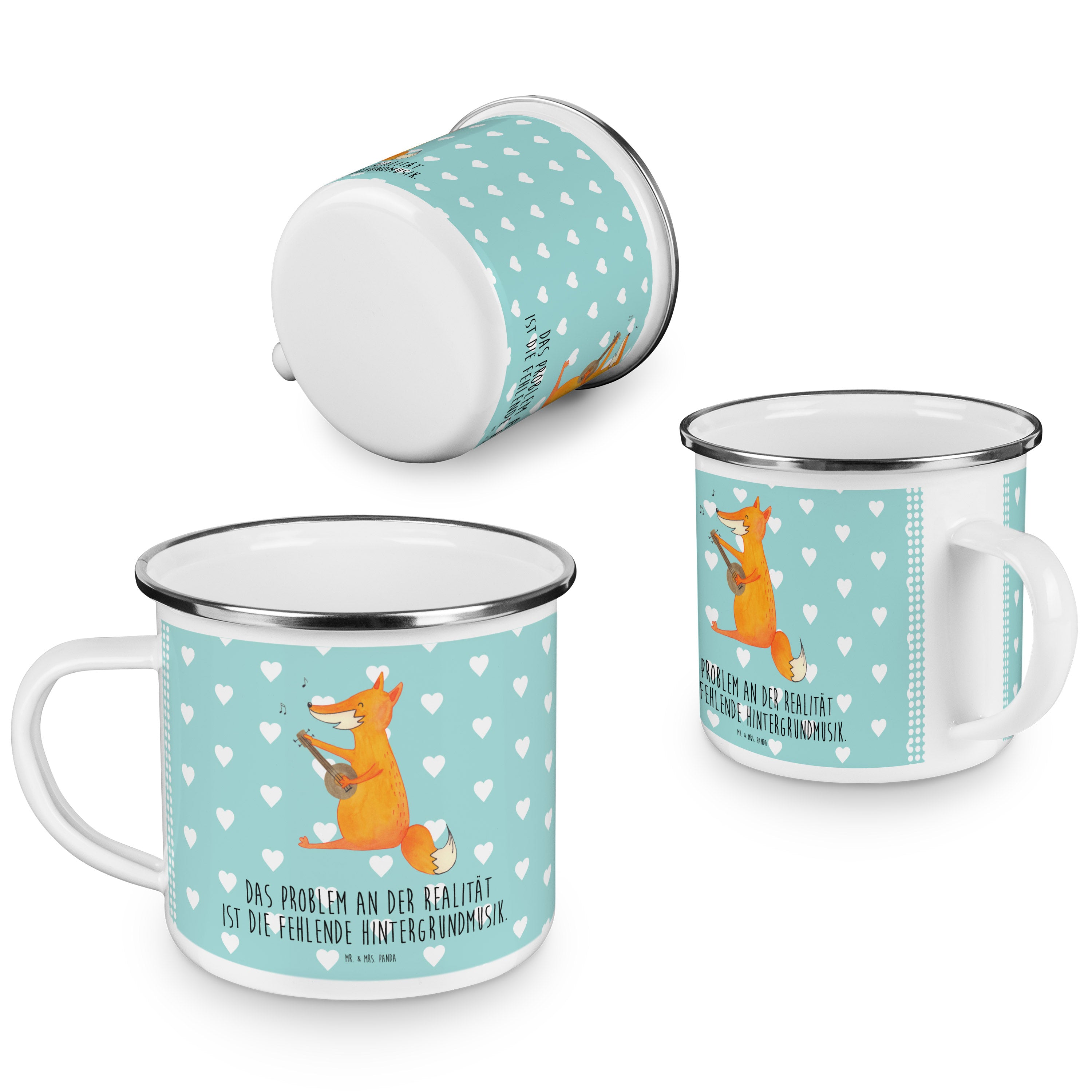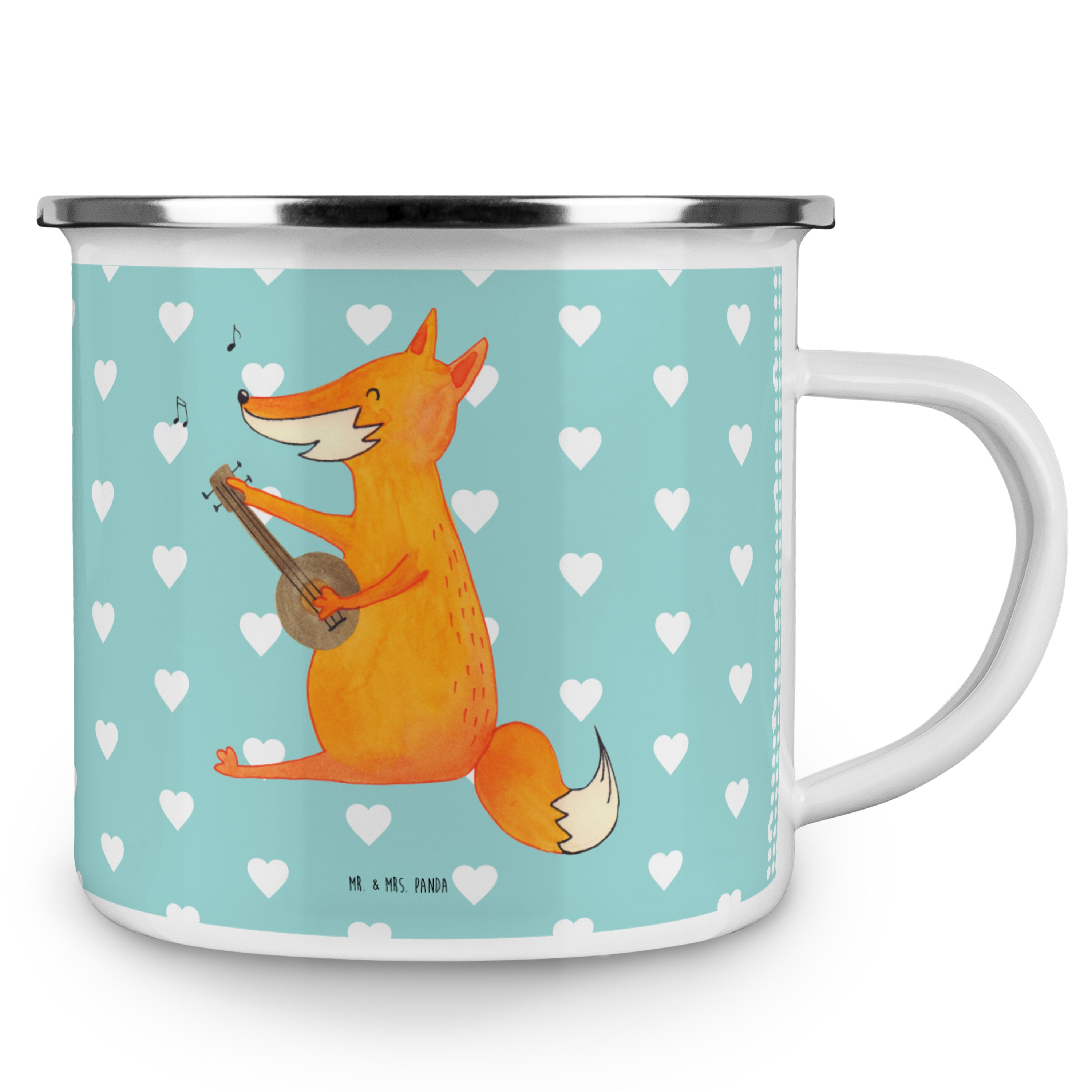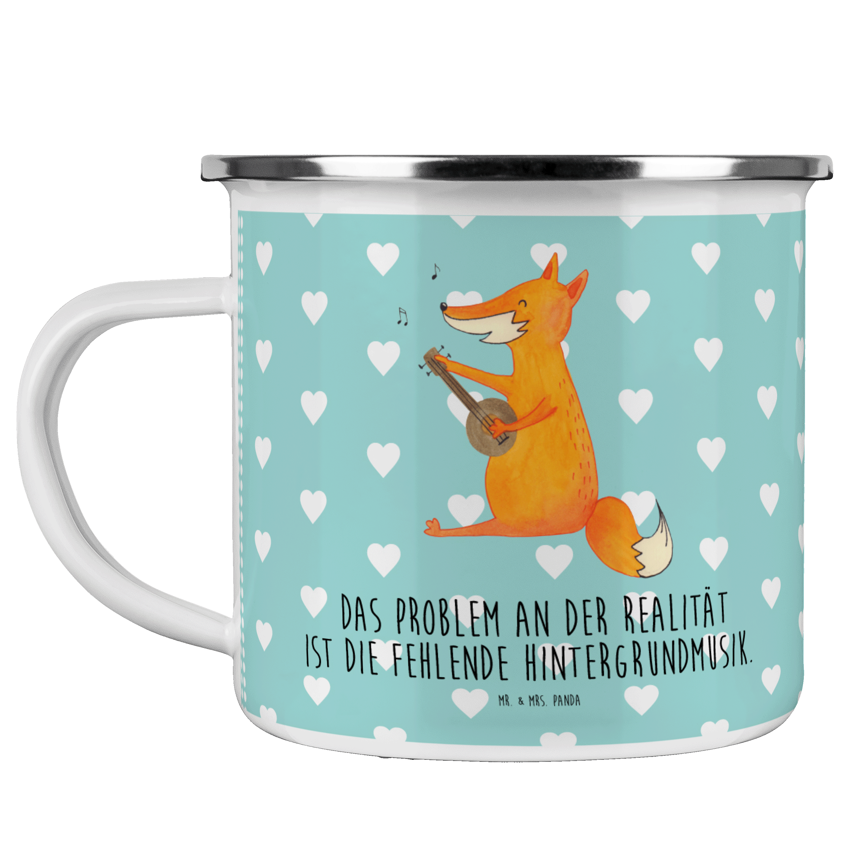 Camping Emaille Tasse Fuchs Gitarre - mit Spruch - Weiß