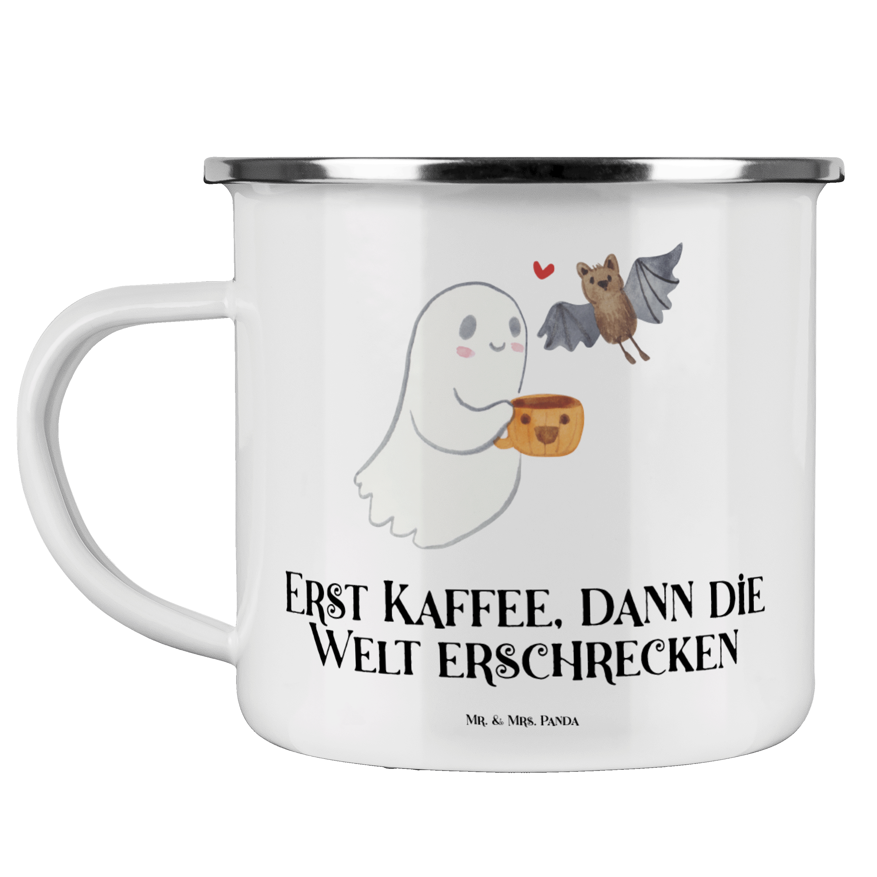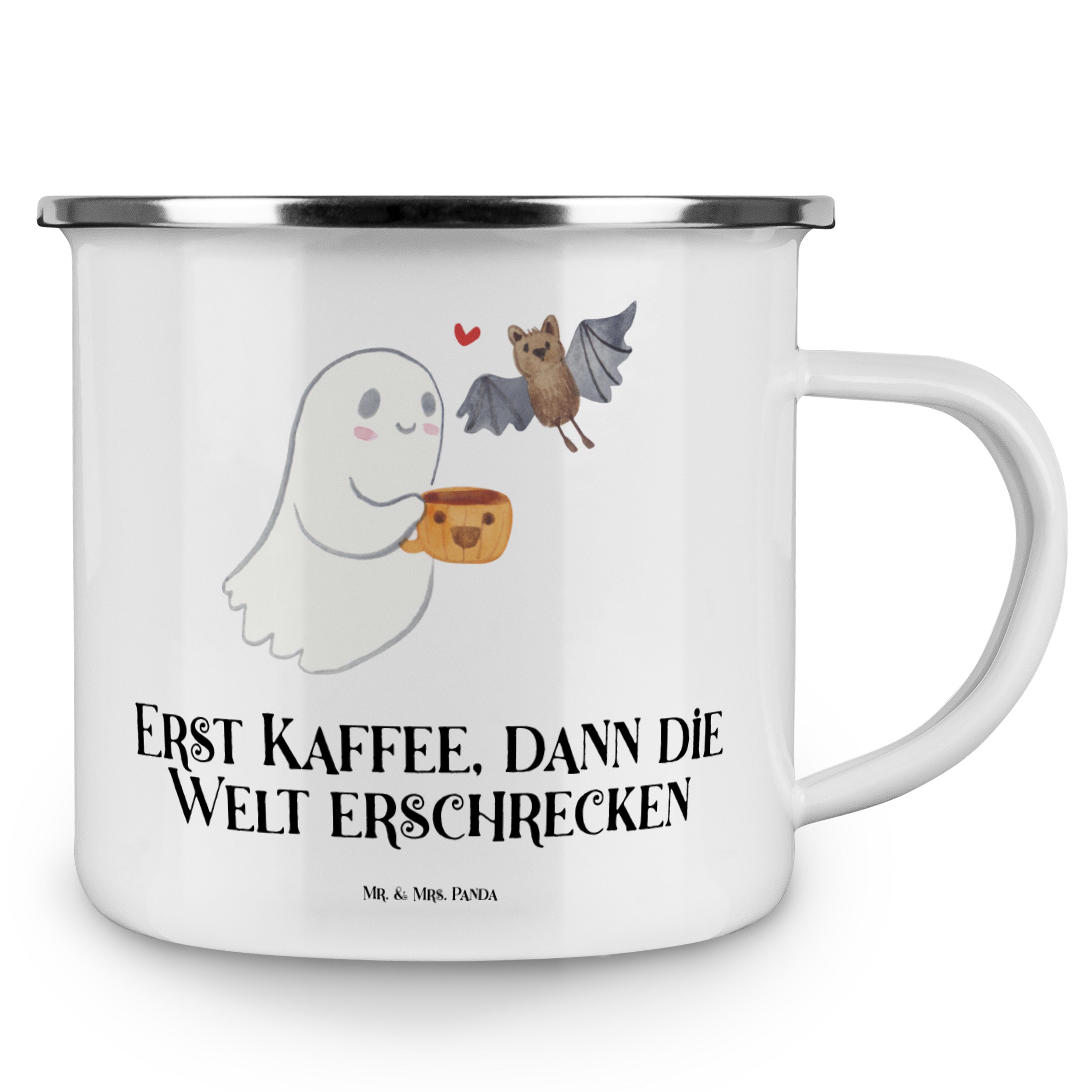 Camping Emaille Tasse Gespenst Kaffee