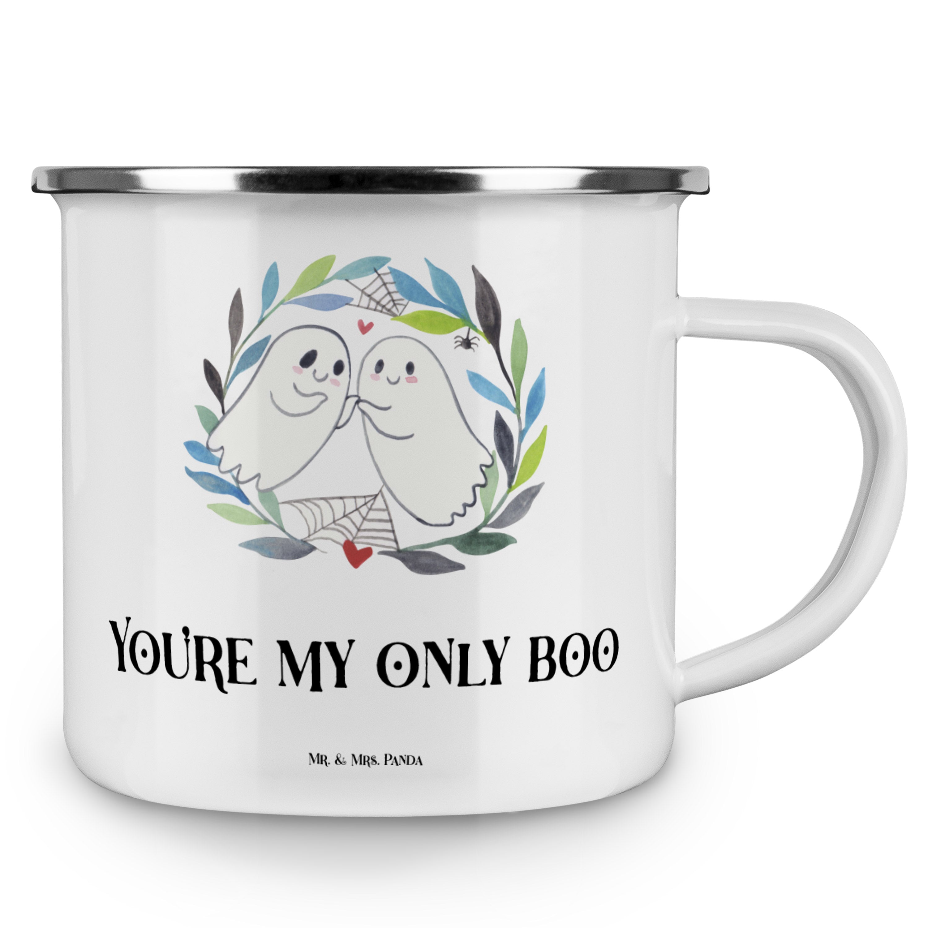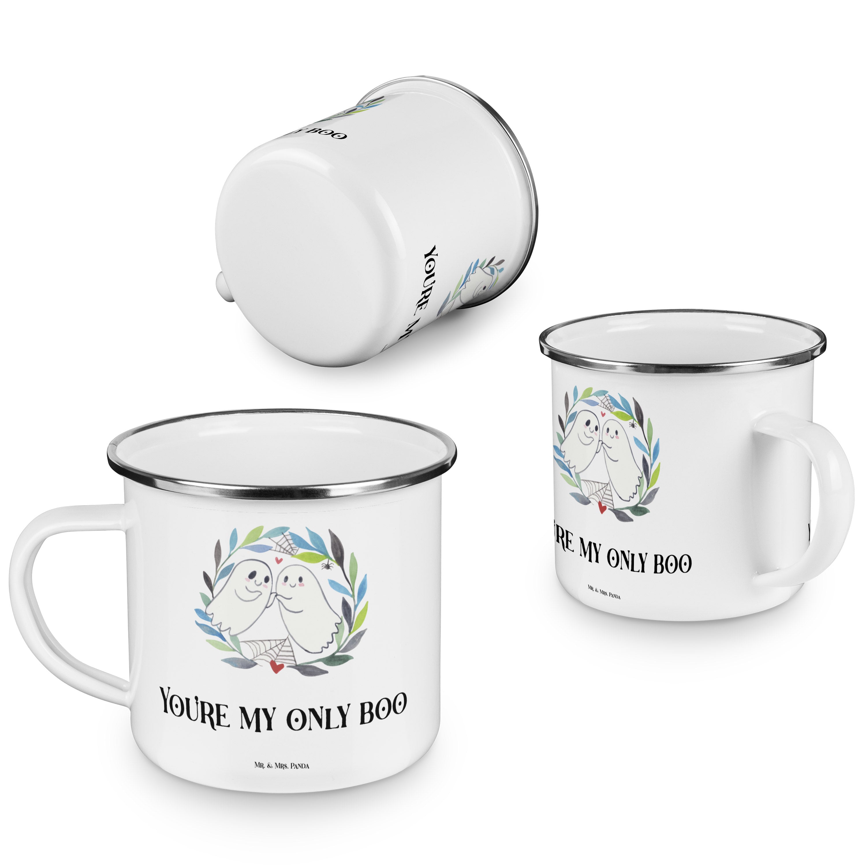 Tauche in eine Szene voller Romantik und Fantasie ein. Du siehst ein bezauberndes Gespensterpaar, händchenhaltend und verliebt in die Augen schauend. Lass dich verzaubern vom grünen und blauen Farbton der Blättergirlande, die das Paar umrahmt und den feinen Spinnweben, die ihre Liebe noch mysteriöser machen.