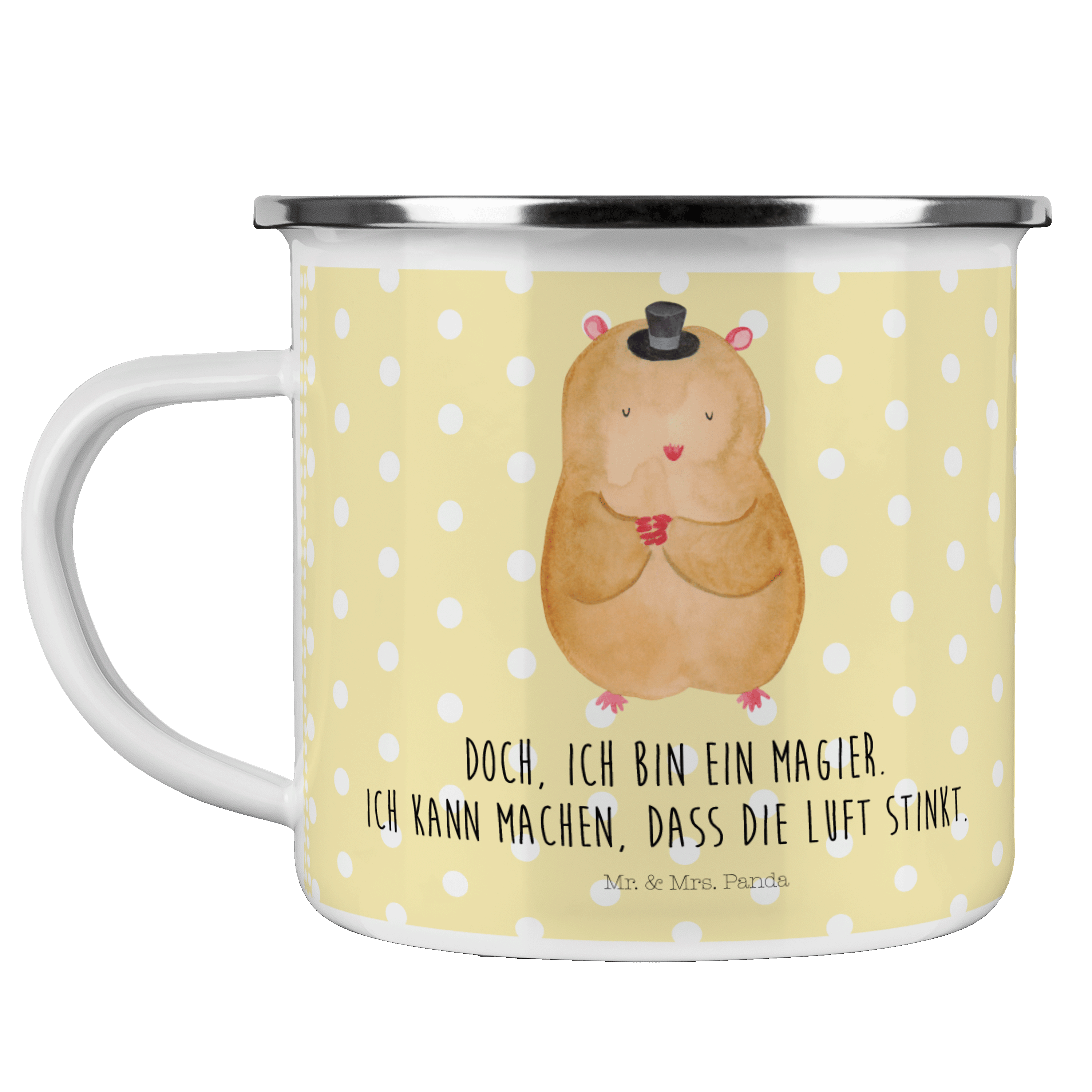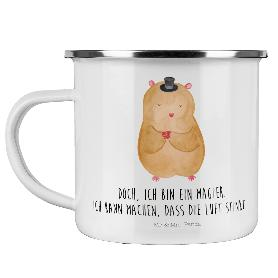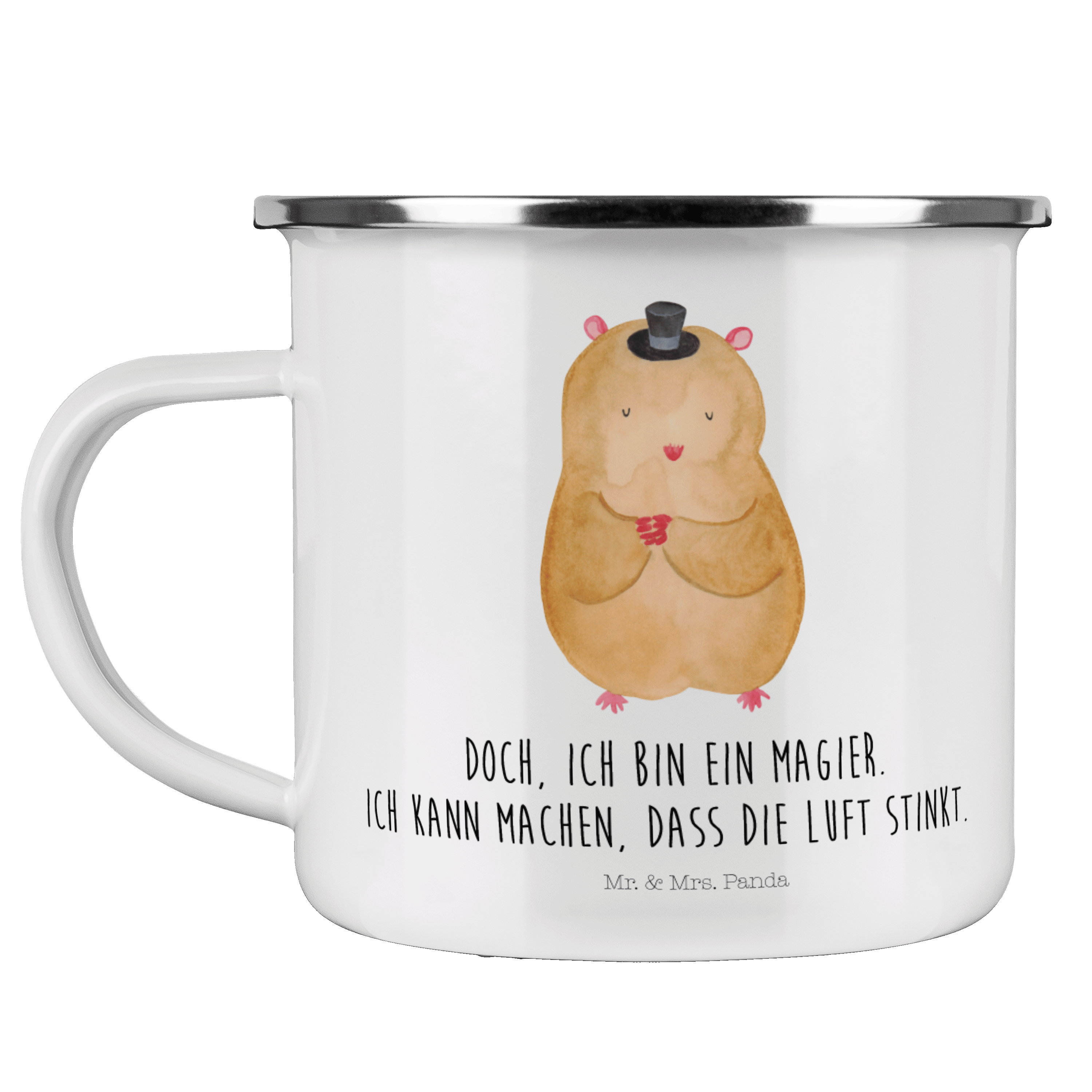 Camping Emaille Tasse Hamster mit Hut - mit Spruch - Weiß