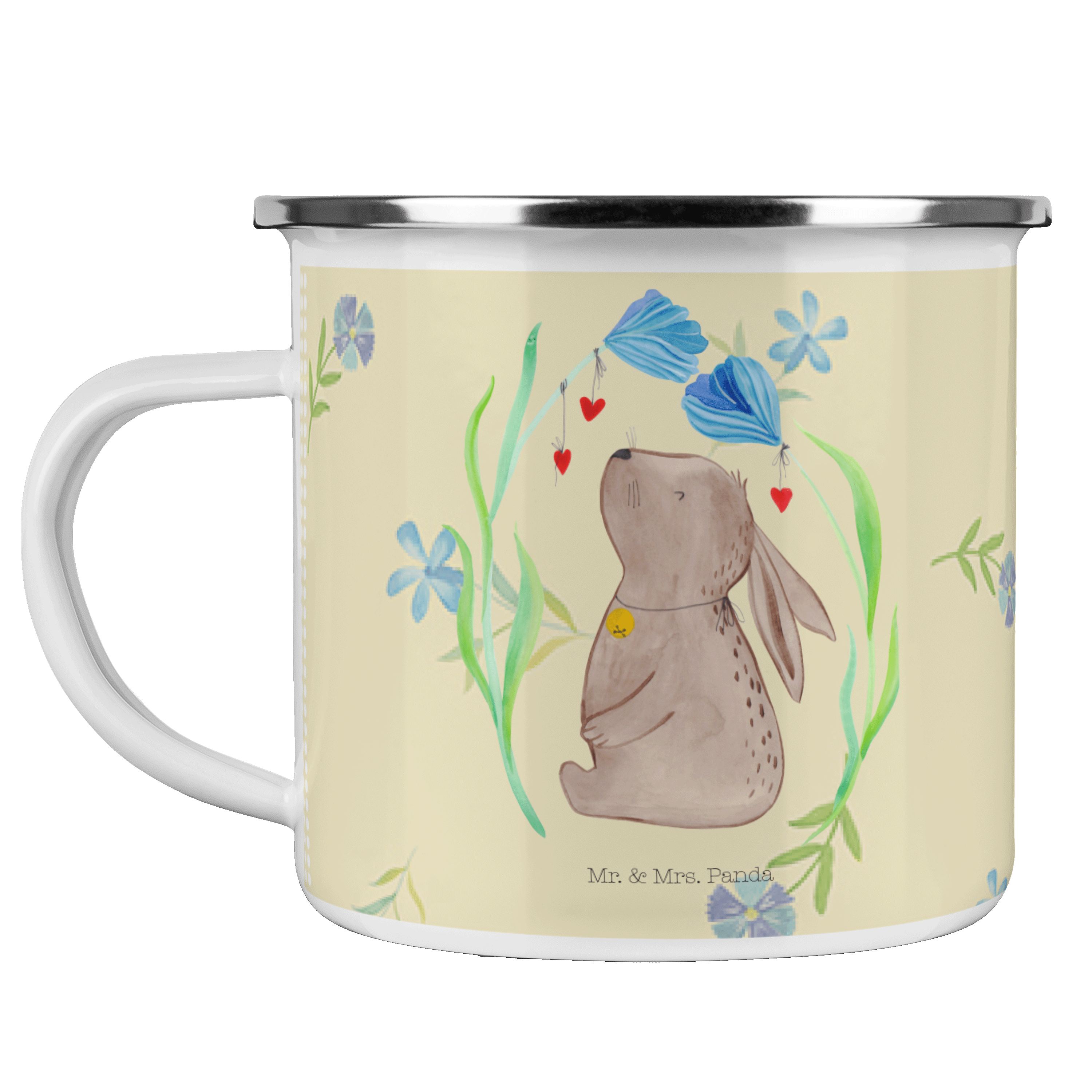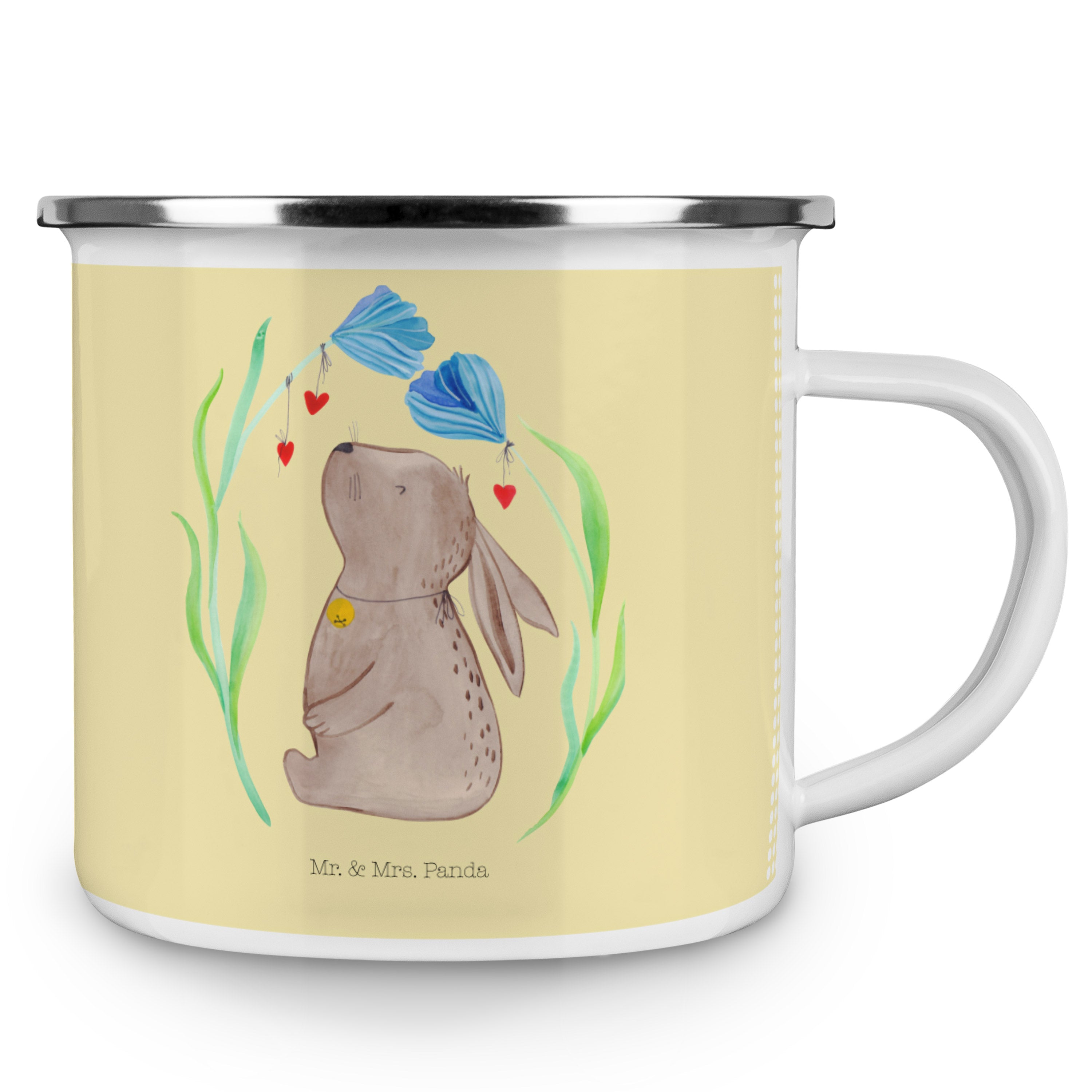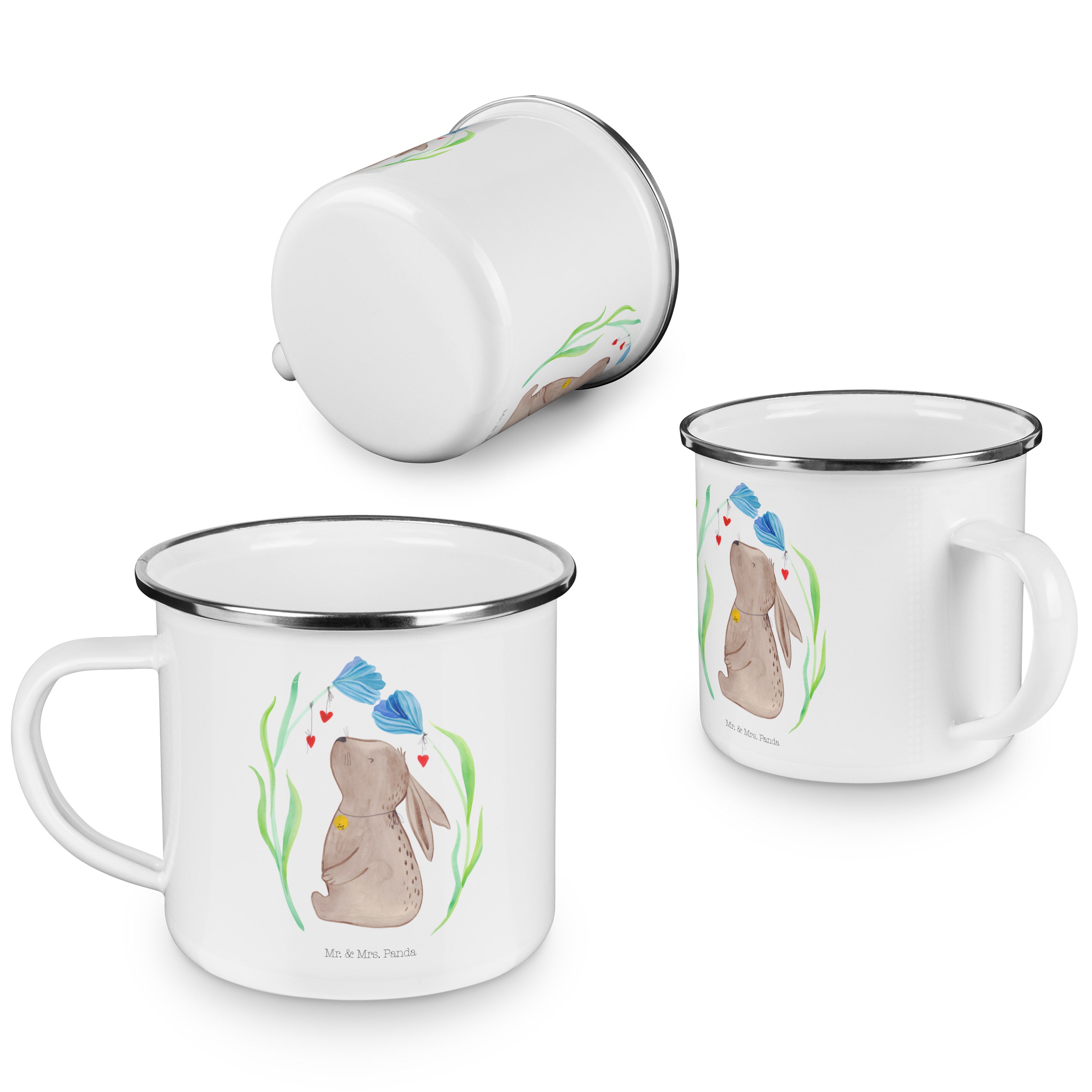 Camping Emaille Tasse Hase Blume - ohne Spruch - Blumig