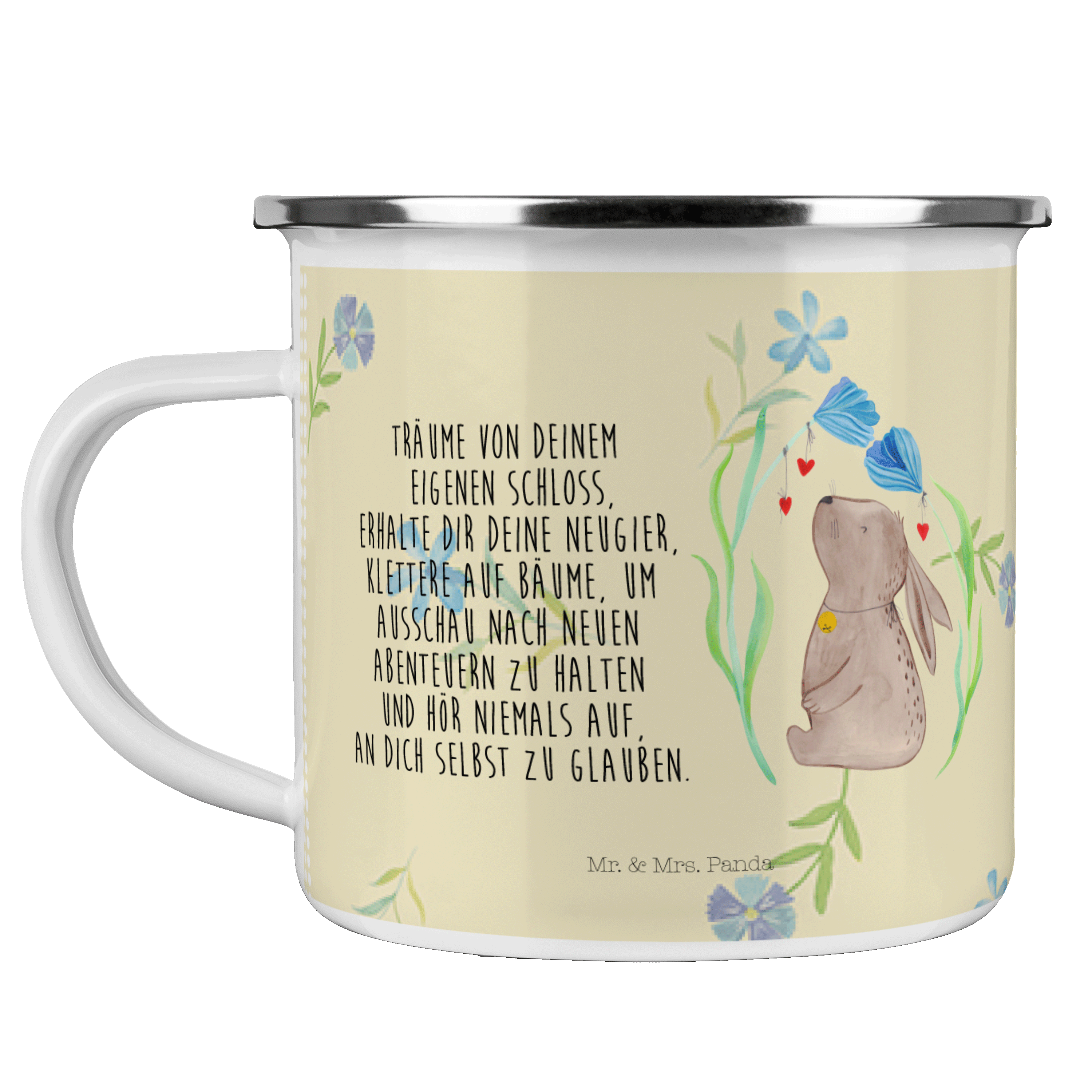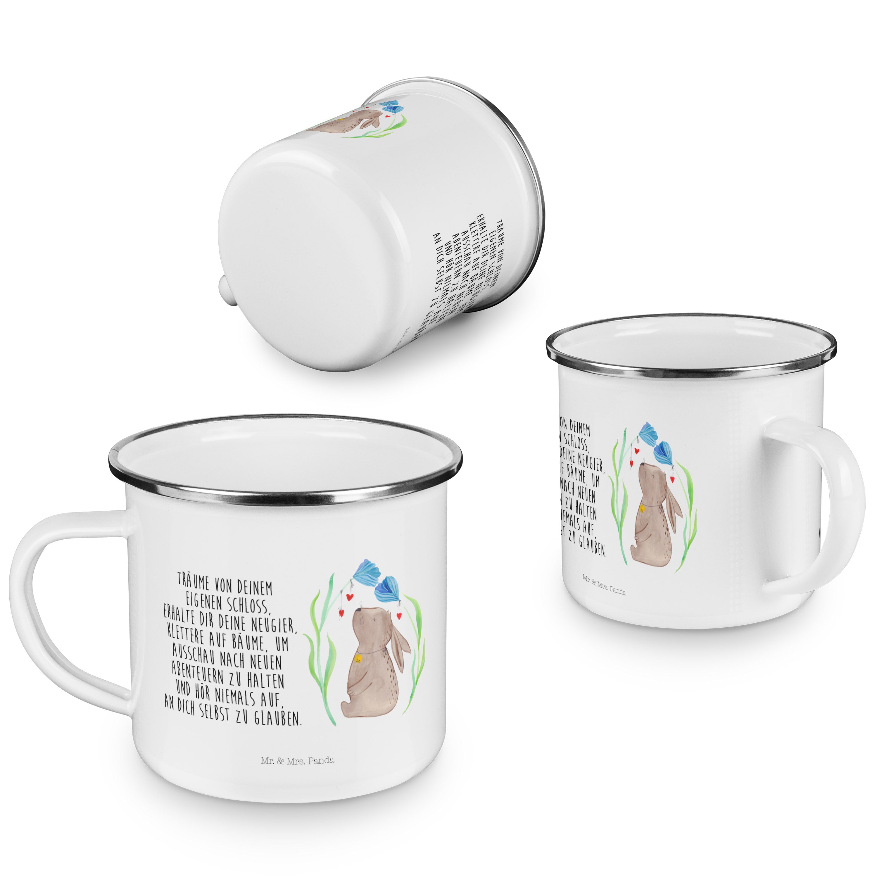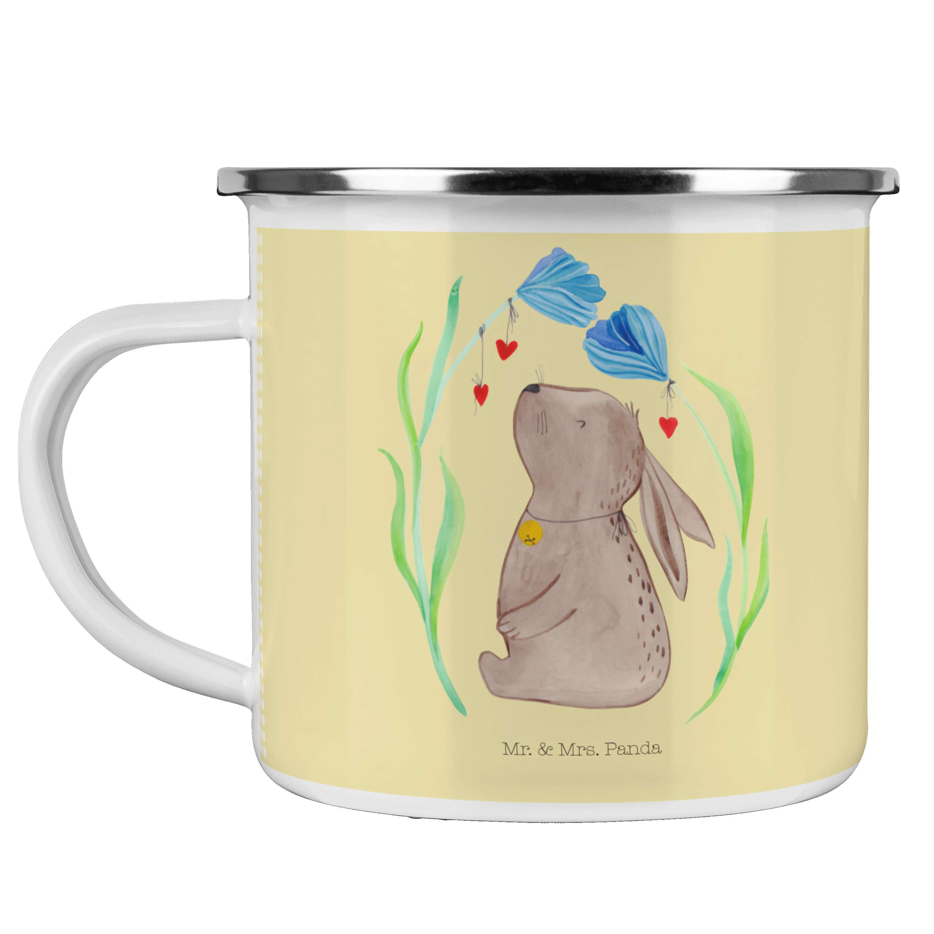 Camping Emaille Tasse Hase Blume - ohne Spruch - Blumig