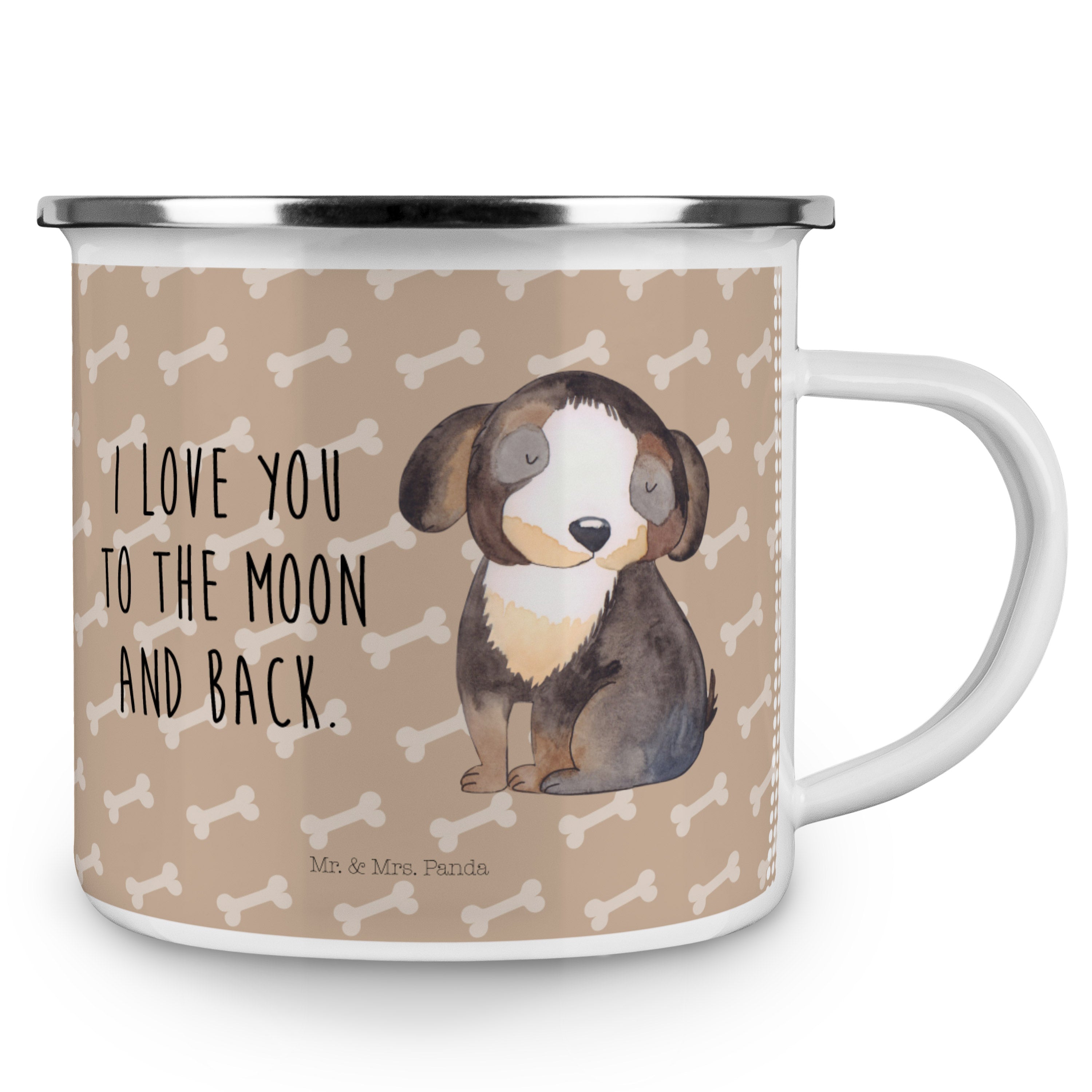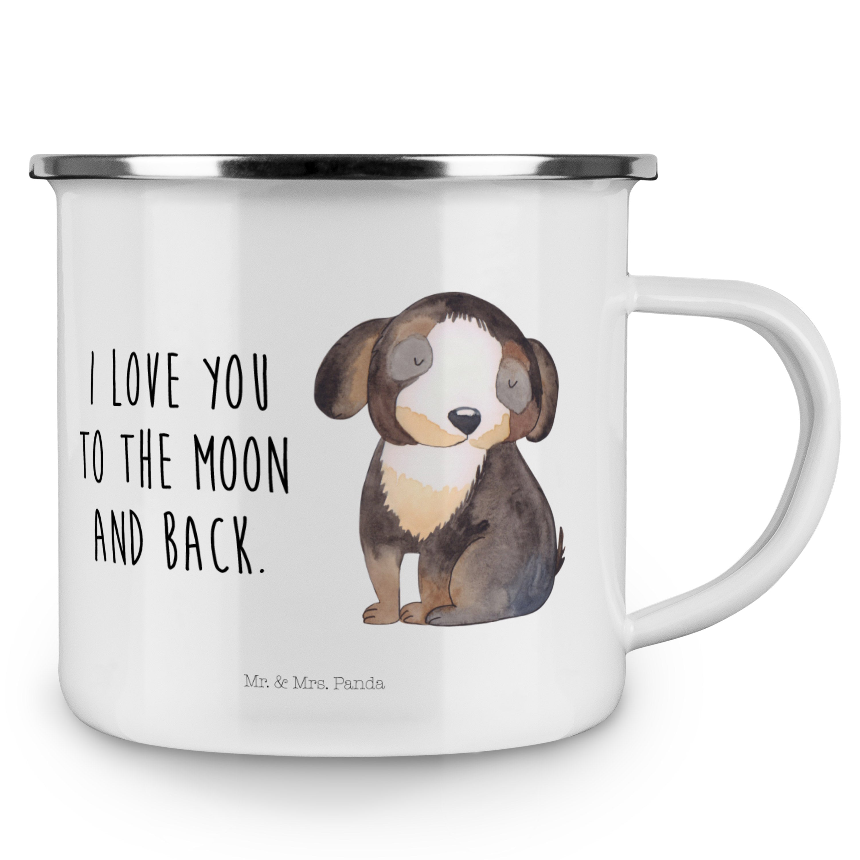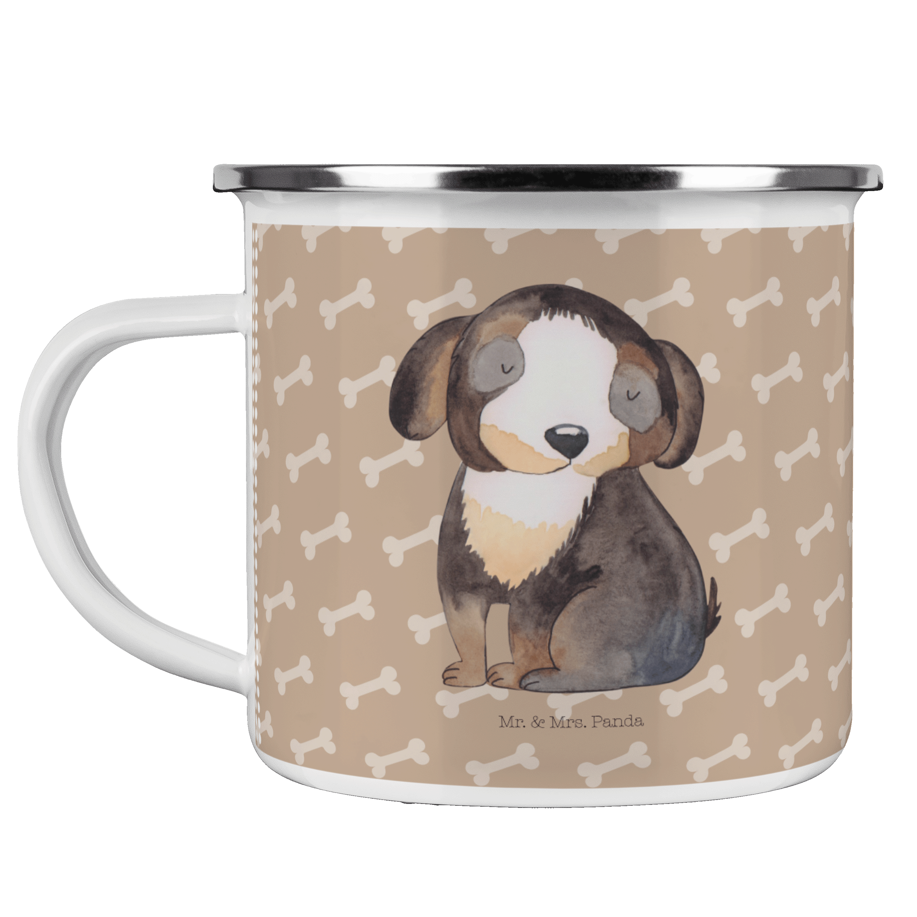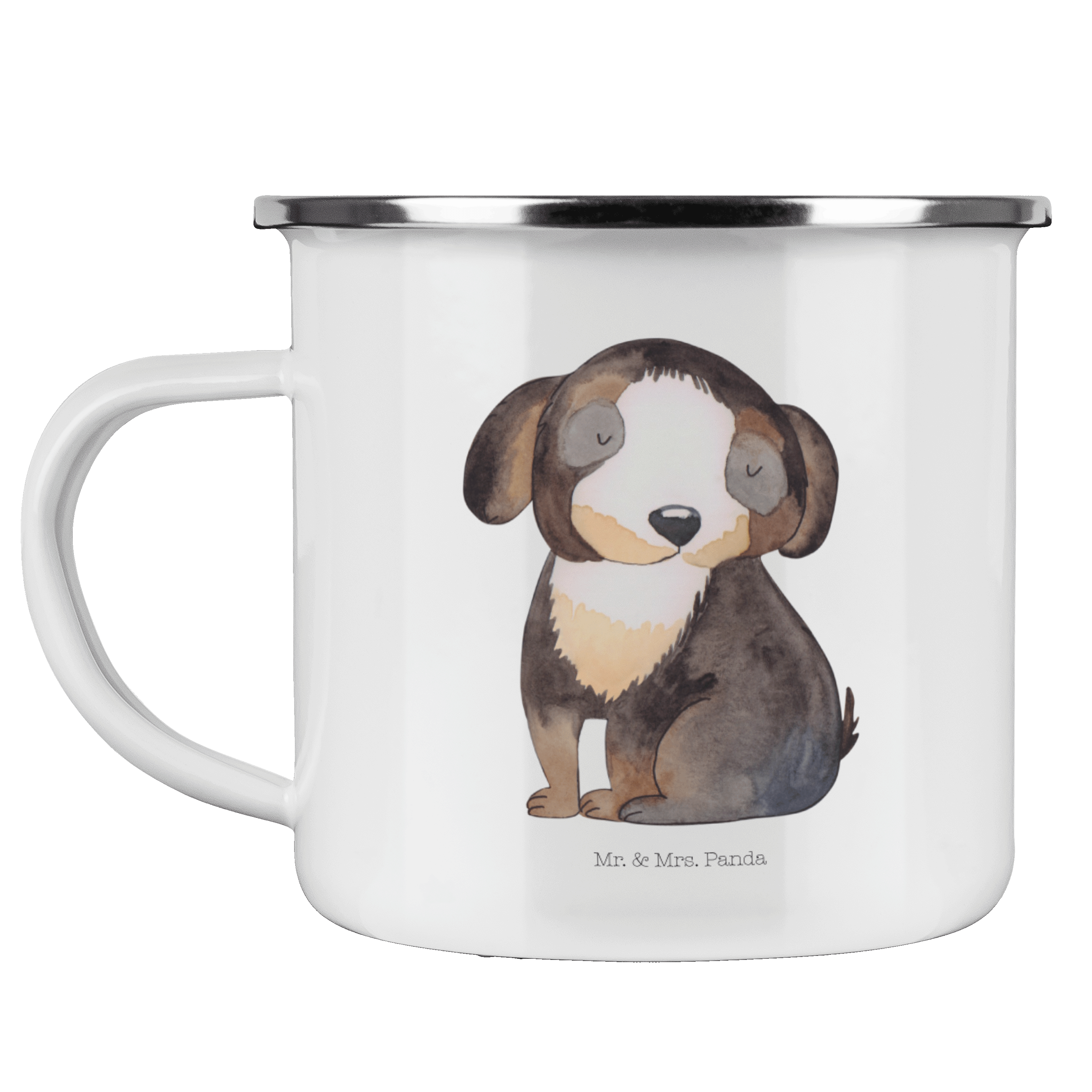 Camping Emaille Tasse Hund entspannt - ohne Spruch - Hundeglück