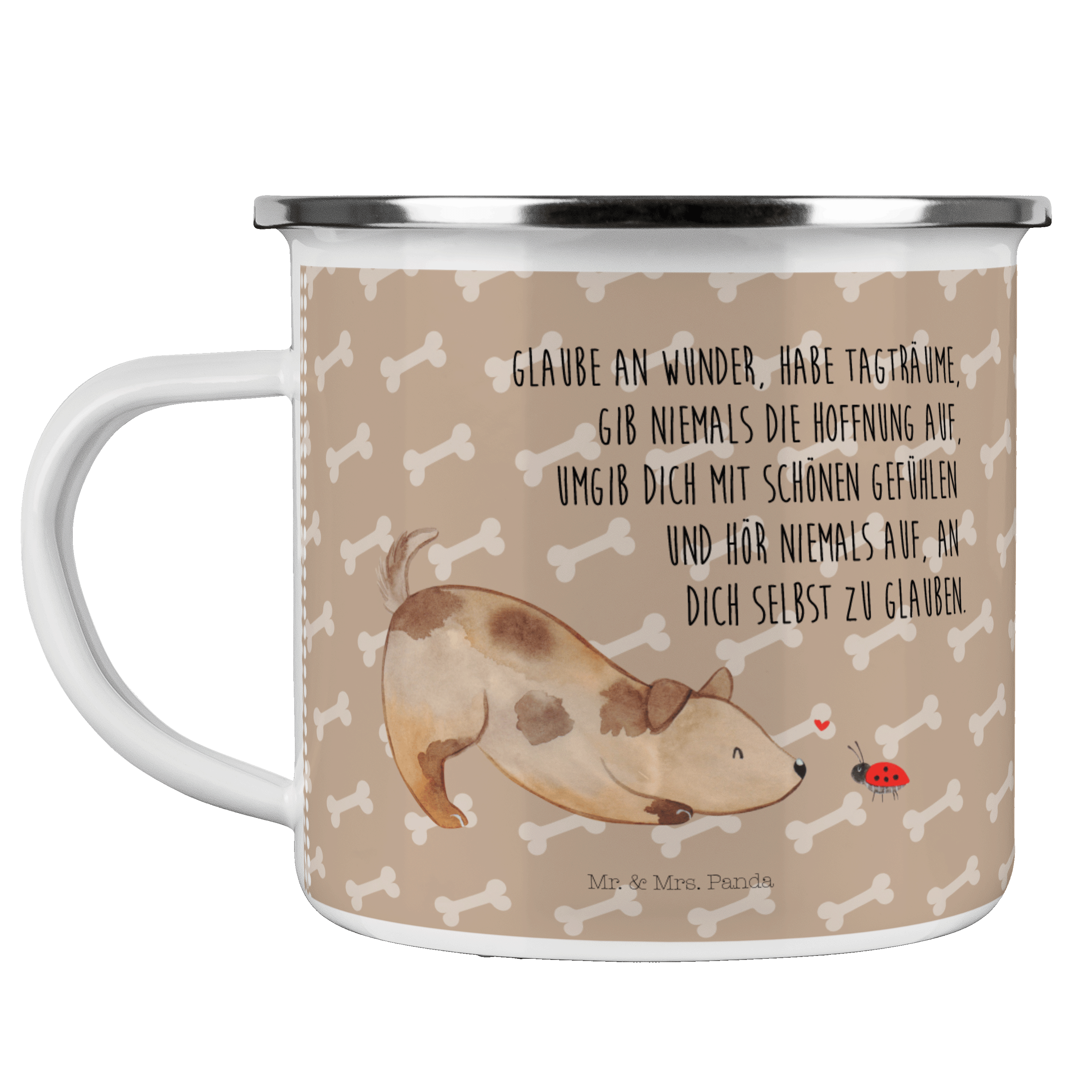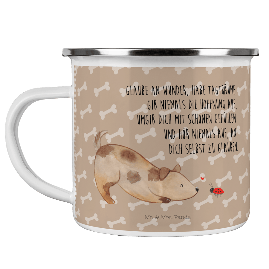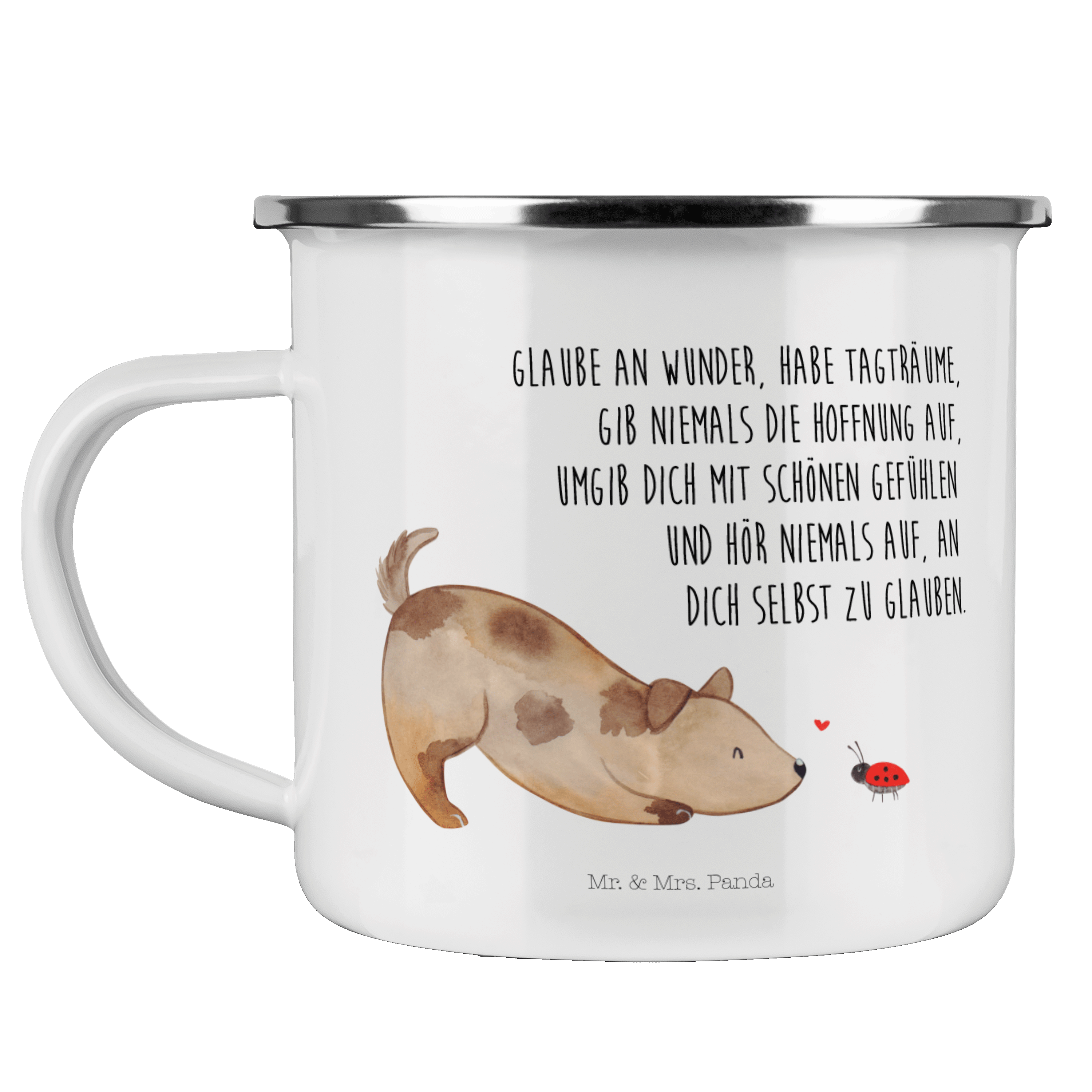 Camping Emaille Tasse Hund Marienkäfer - mit Spruch - Hundeglück