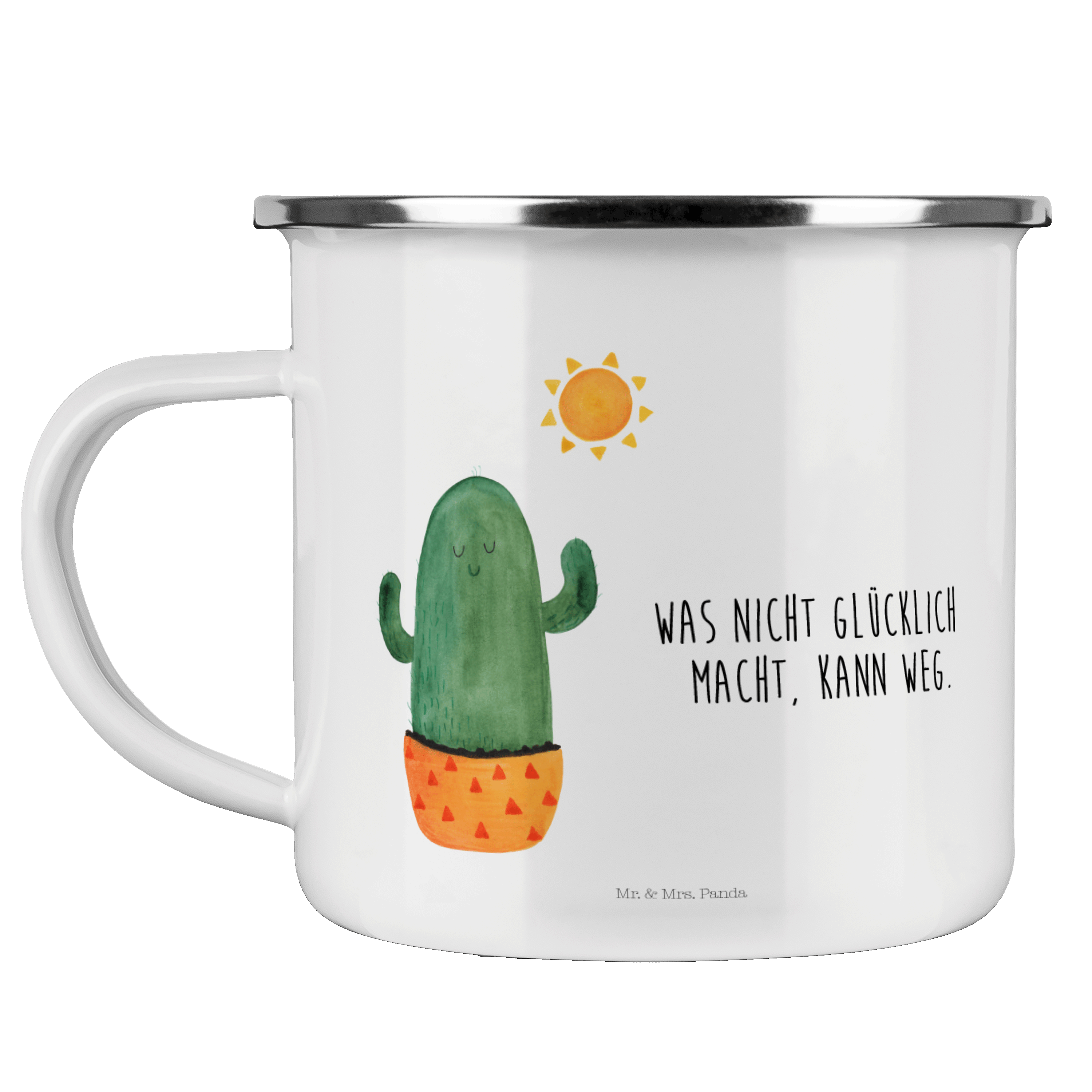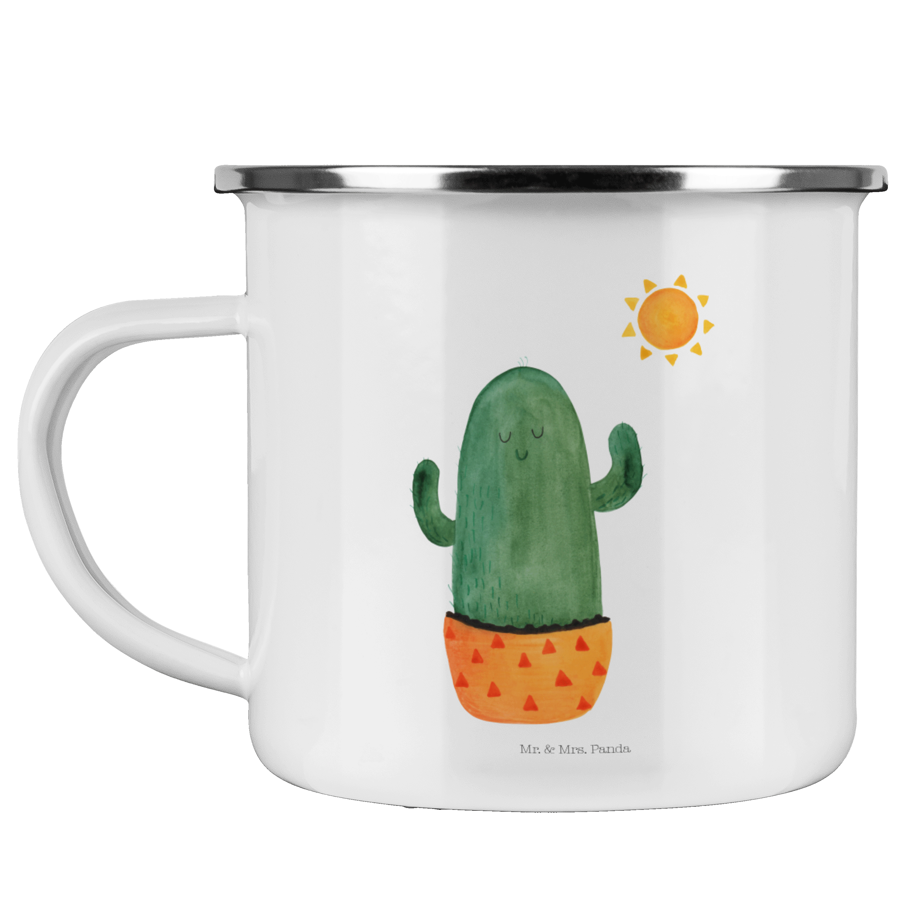 Camping Emaille Tasse Kaktus Sonnenanbeter - mit Spruch