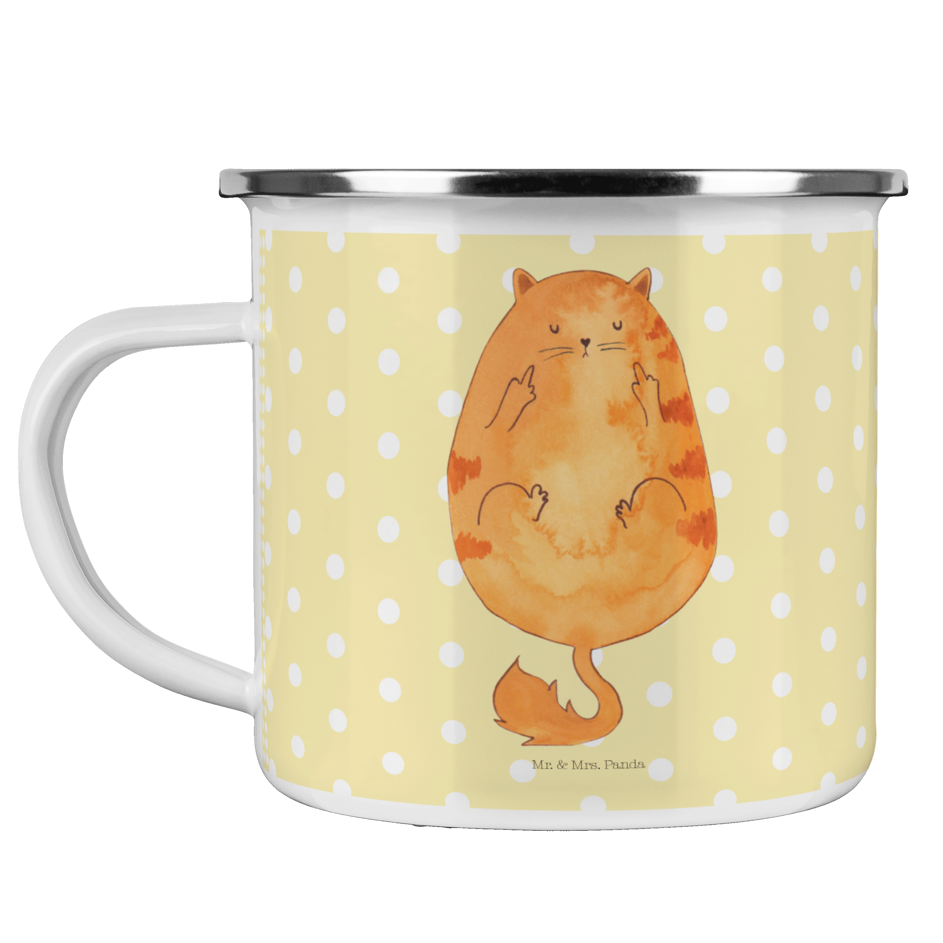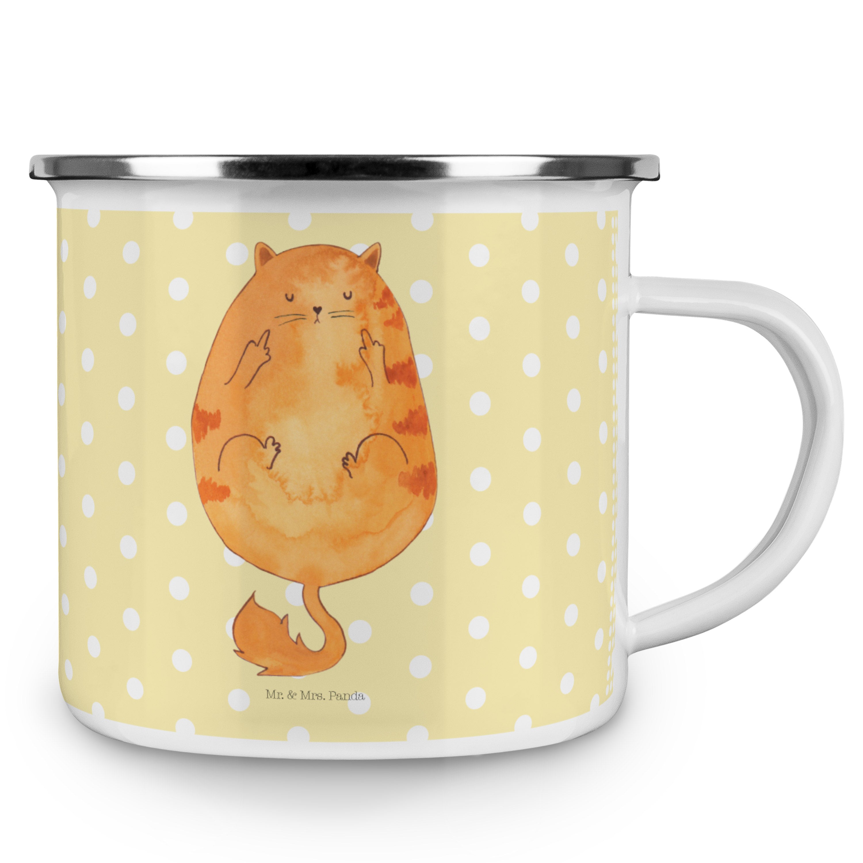 Diese wunderschöne Emailletasse von Mr. & Mrs. Panda mit abgesetztem Edelstahl Rand in Emaille Optik ist der perfekte, bruchsichere Begleiter für dein nächstes Abenteuer. Das Füllvolumen des Bechers beträgt 300 ml. So sind die Motivtassen ideal beim Camping als Campingbecher einsetzbar.