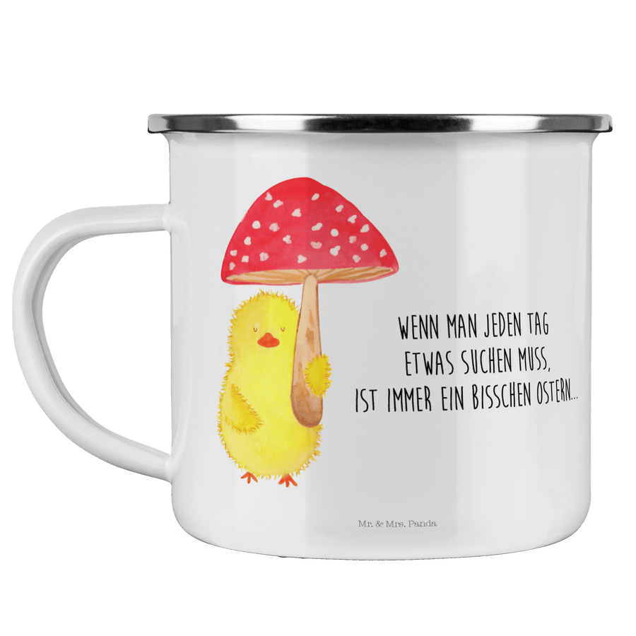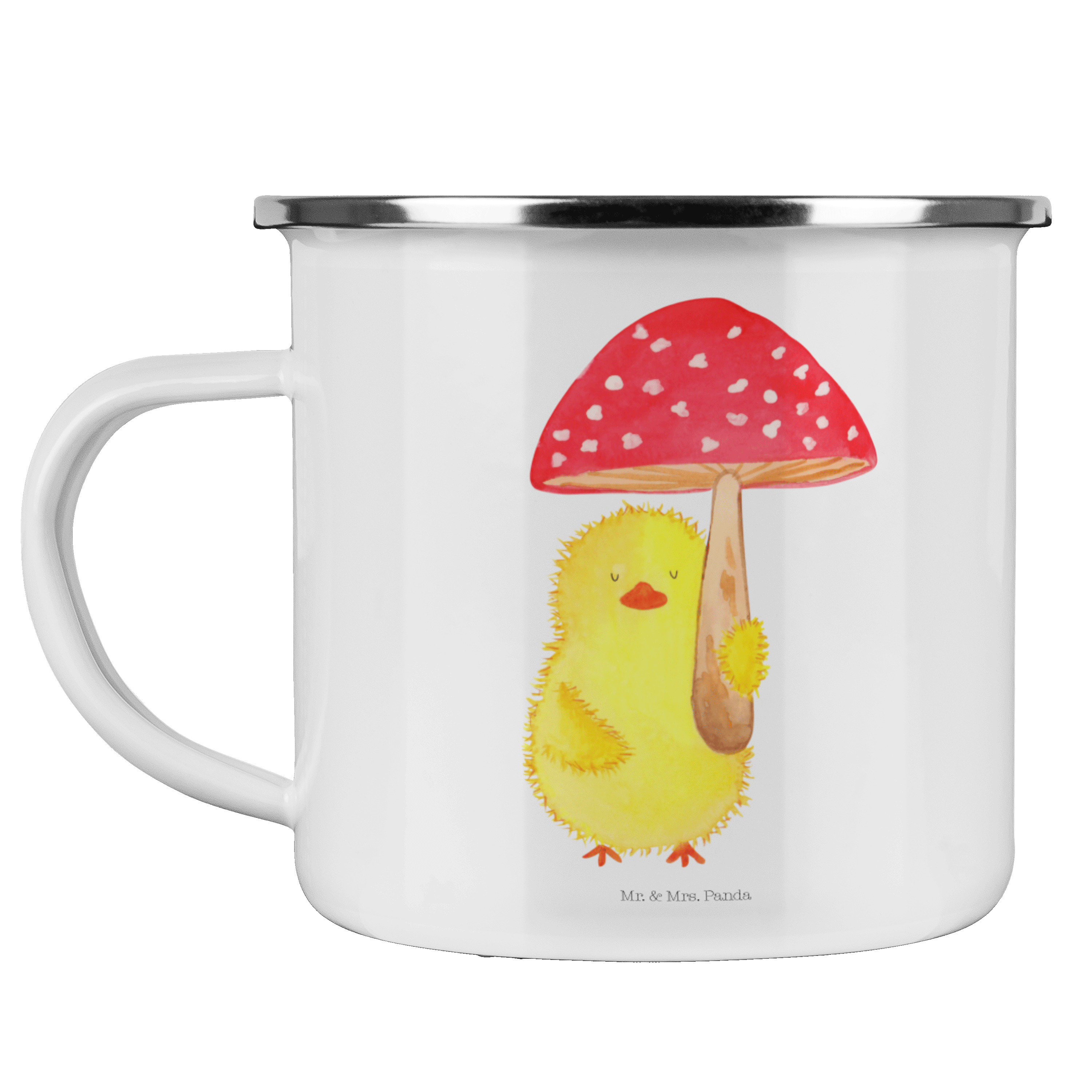 Camping Emaille Tasse Küken Fliegenpilz - mit Spruch