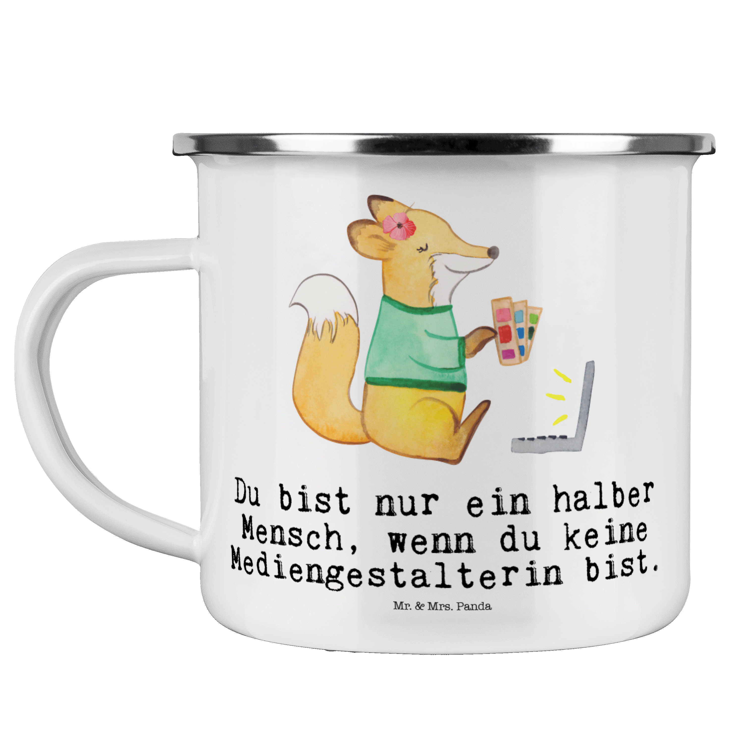 Camping Emaille Tasse Mediengestalterin mit Herz