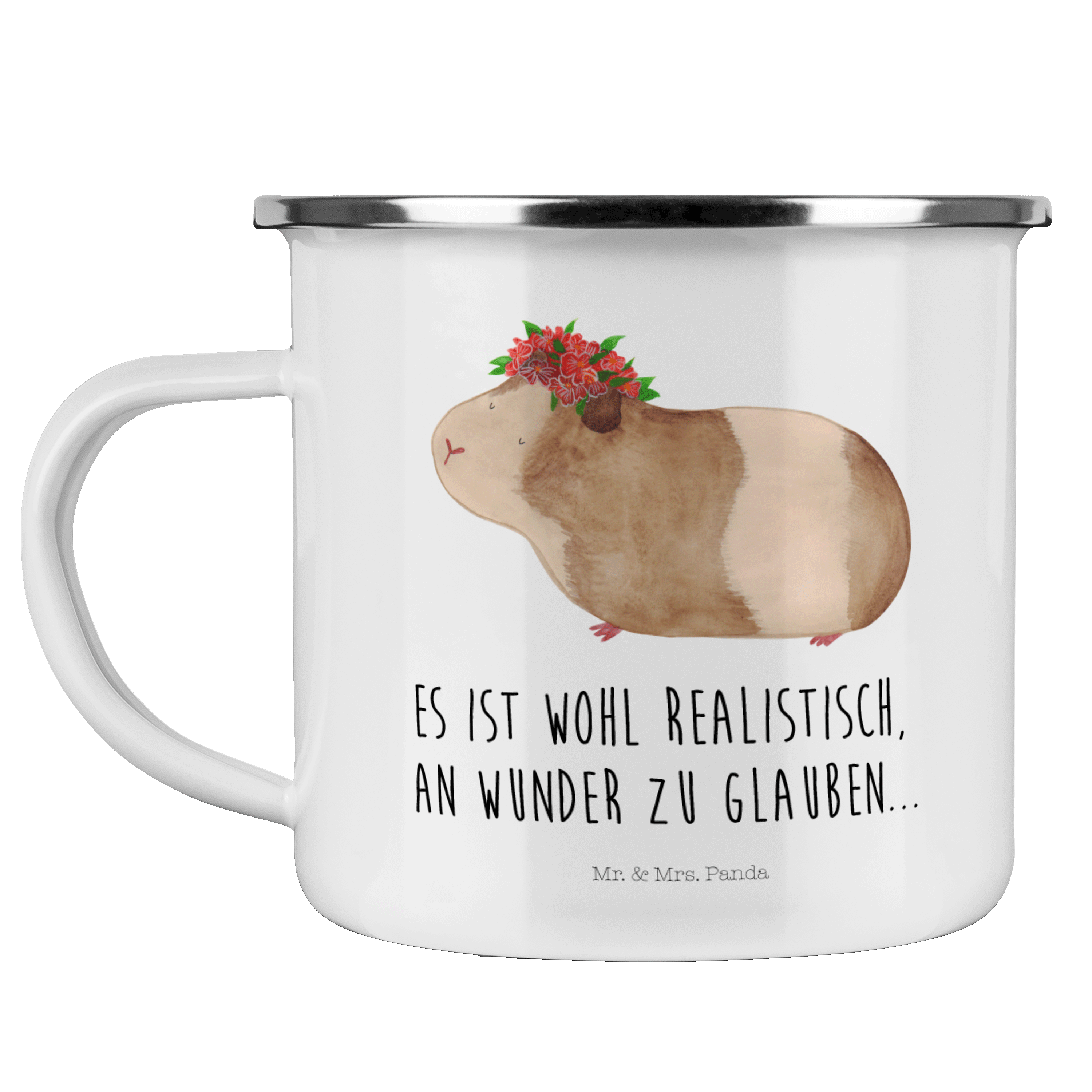 Camping Emaille Tasse Meerschweinchen weise - mit Spruch - Weiß