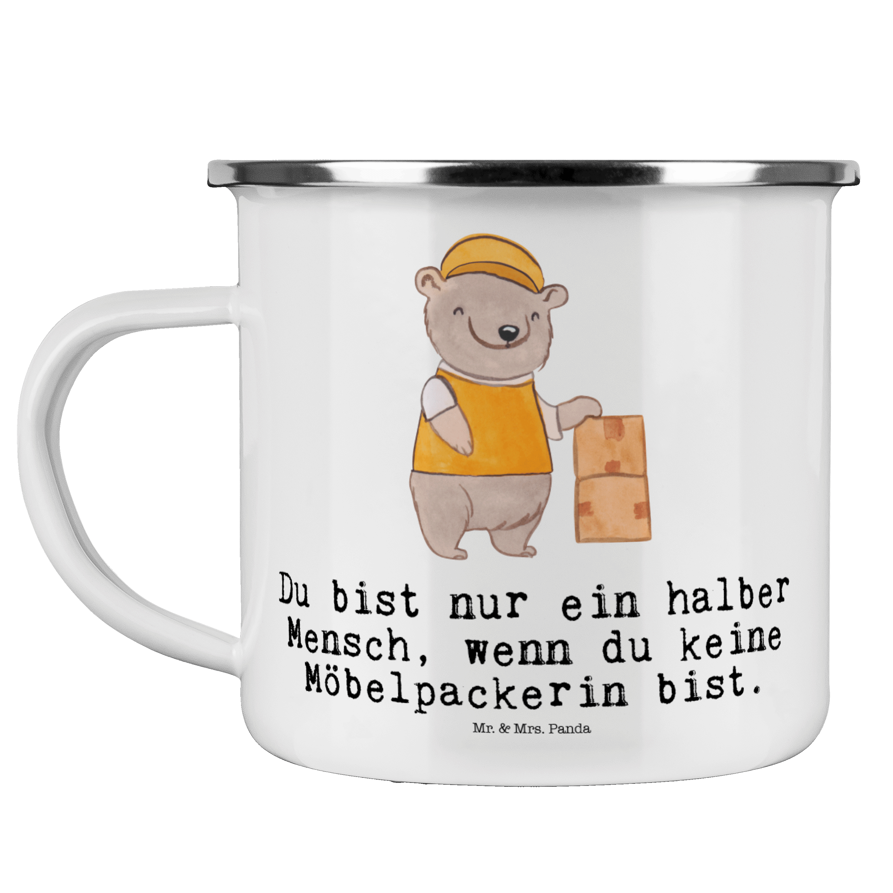 Camping Emaille Tasse Möbelpackerin mit Herz