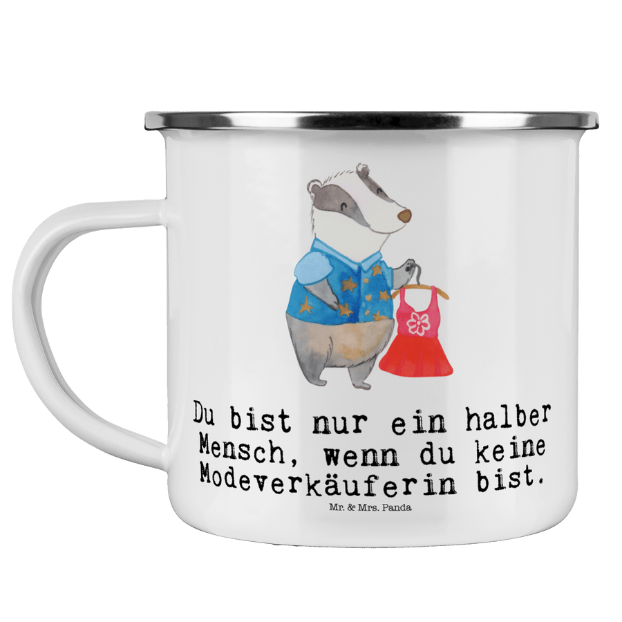 Camping Emaille Tasse Modeverkäuferin mit Herz