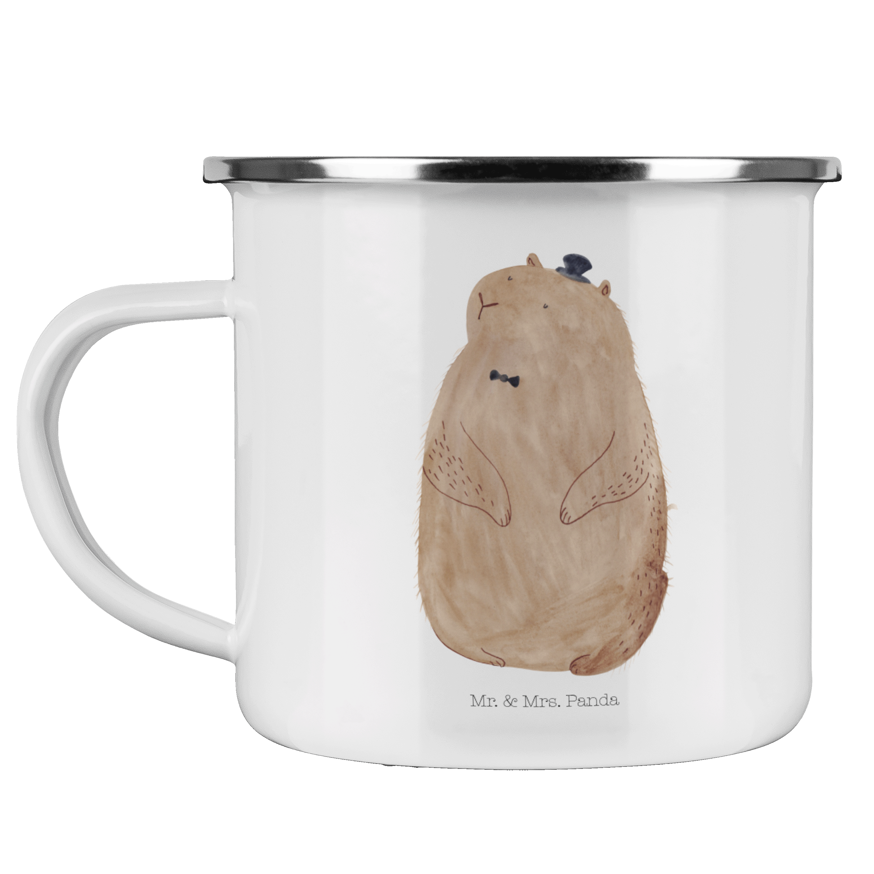 Camping Emaille Tasse Murmeltier - mit Spruch - Weiß