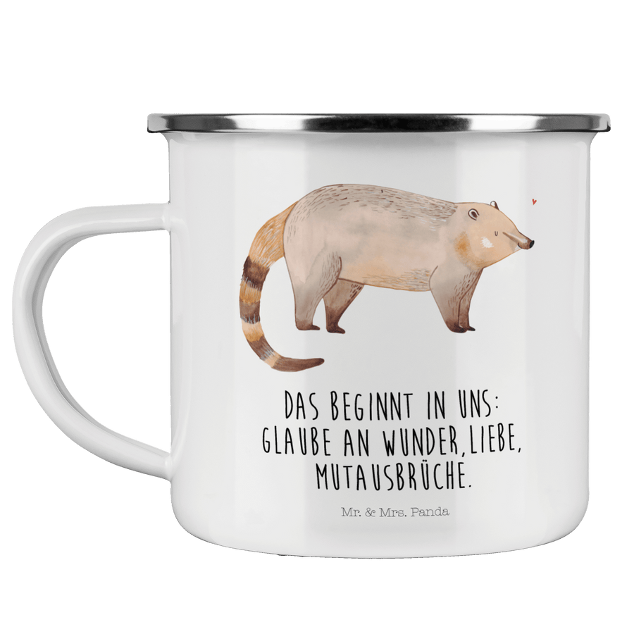 Camping Emaille Tasse Nasenbär Campingtasse, Trinkbecher, Metalltasse, Outdoor Tasse, Emaille Trinkbecher, Blechtasse Outdoor, Emaille Campingbecher, Edelstahl Trinkbecher, Metalltasse für Camping, Kaffee Blechtasse, Camping Tasse Metall, Tiermotive, Gute Laune, lustige Sprüche, Tiere, Nasenbär, Nasenbären, Rüsselbär, Bär