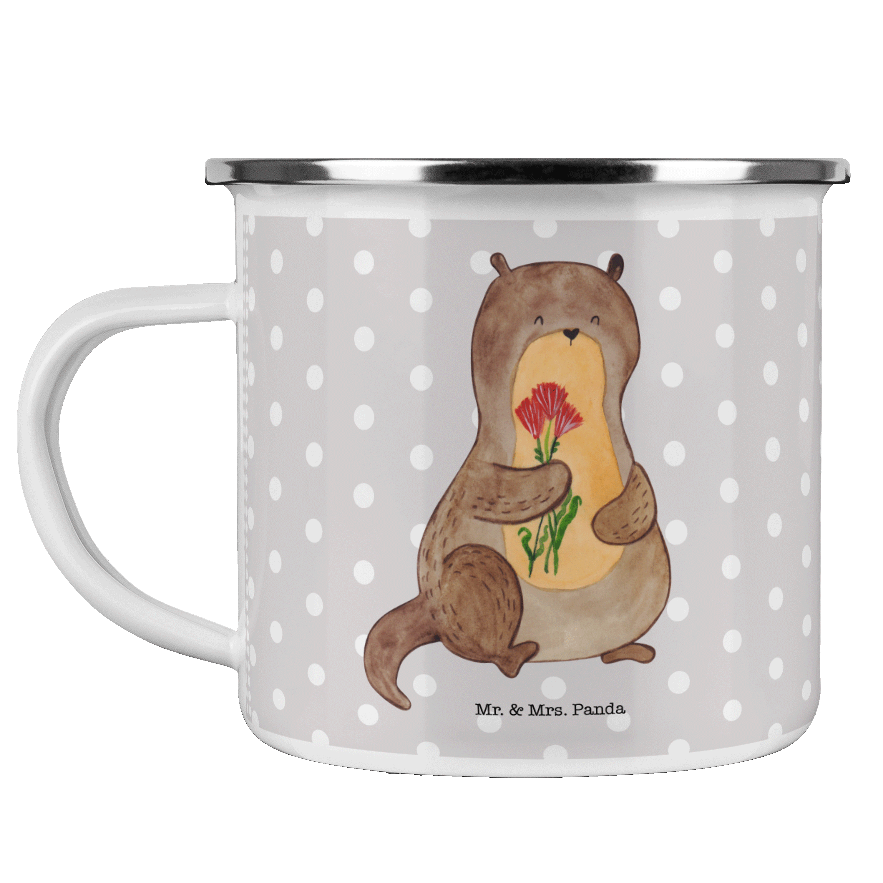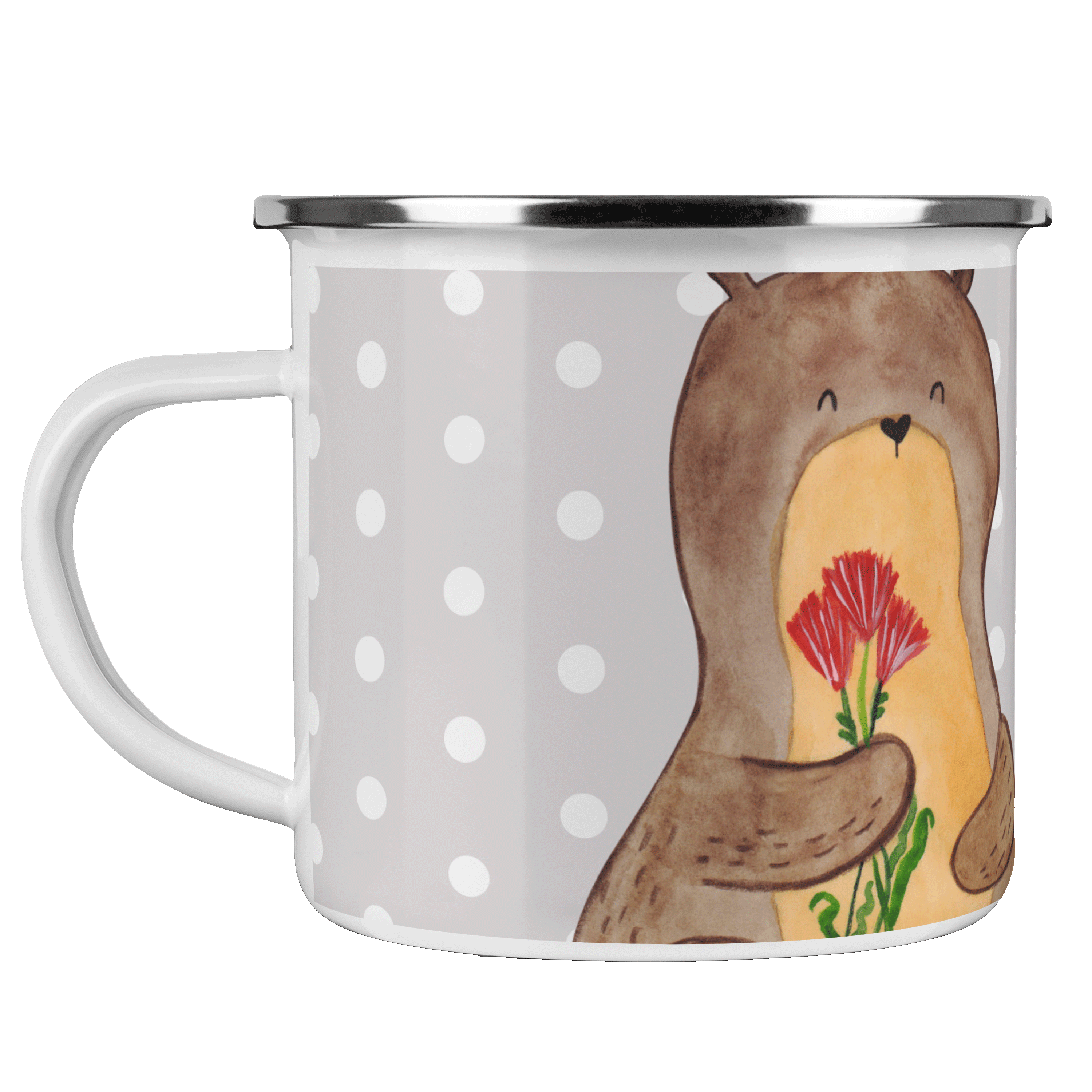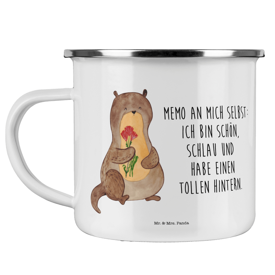 Camping Emaille Tasse Otter Blumenstrauß - mit Spruch - Weiß