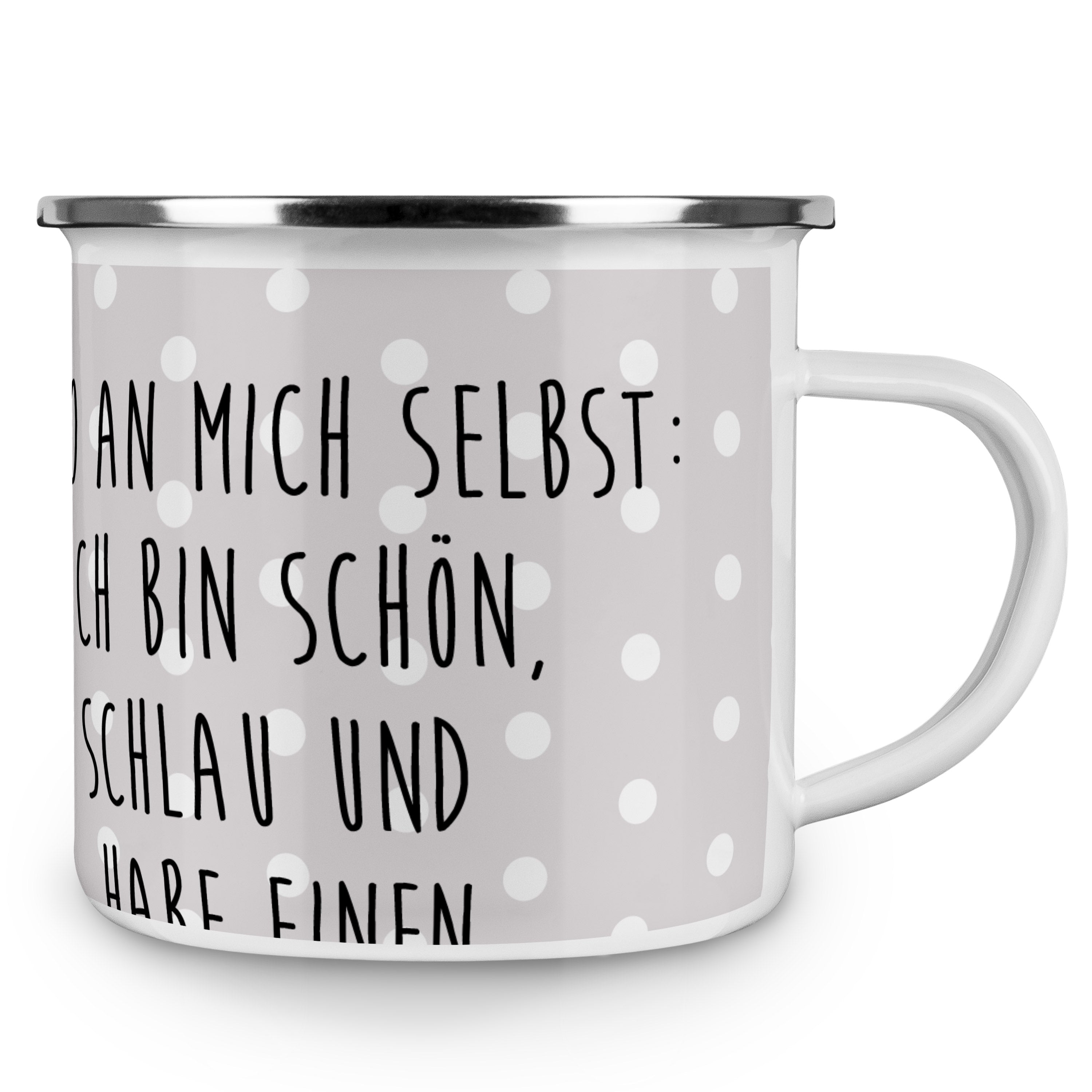 Die Tassen freuen sich über eine liebevolle Handwäsche, und sind, wie jedes Emaillegeschirr, nicht spülmaschinenfest. Für den genüsslichen Kaffee am Morgen ist diese Blechtasse ein echter Hingucker.