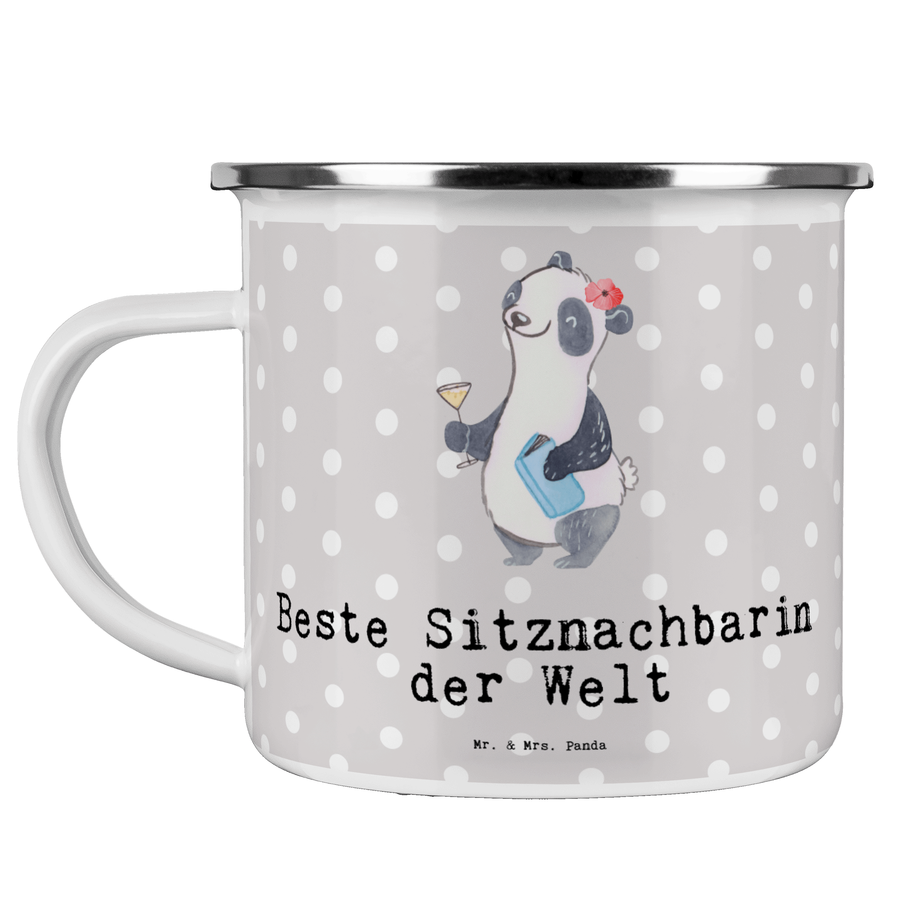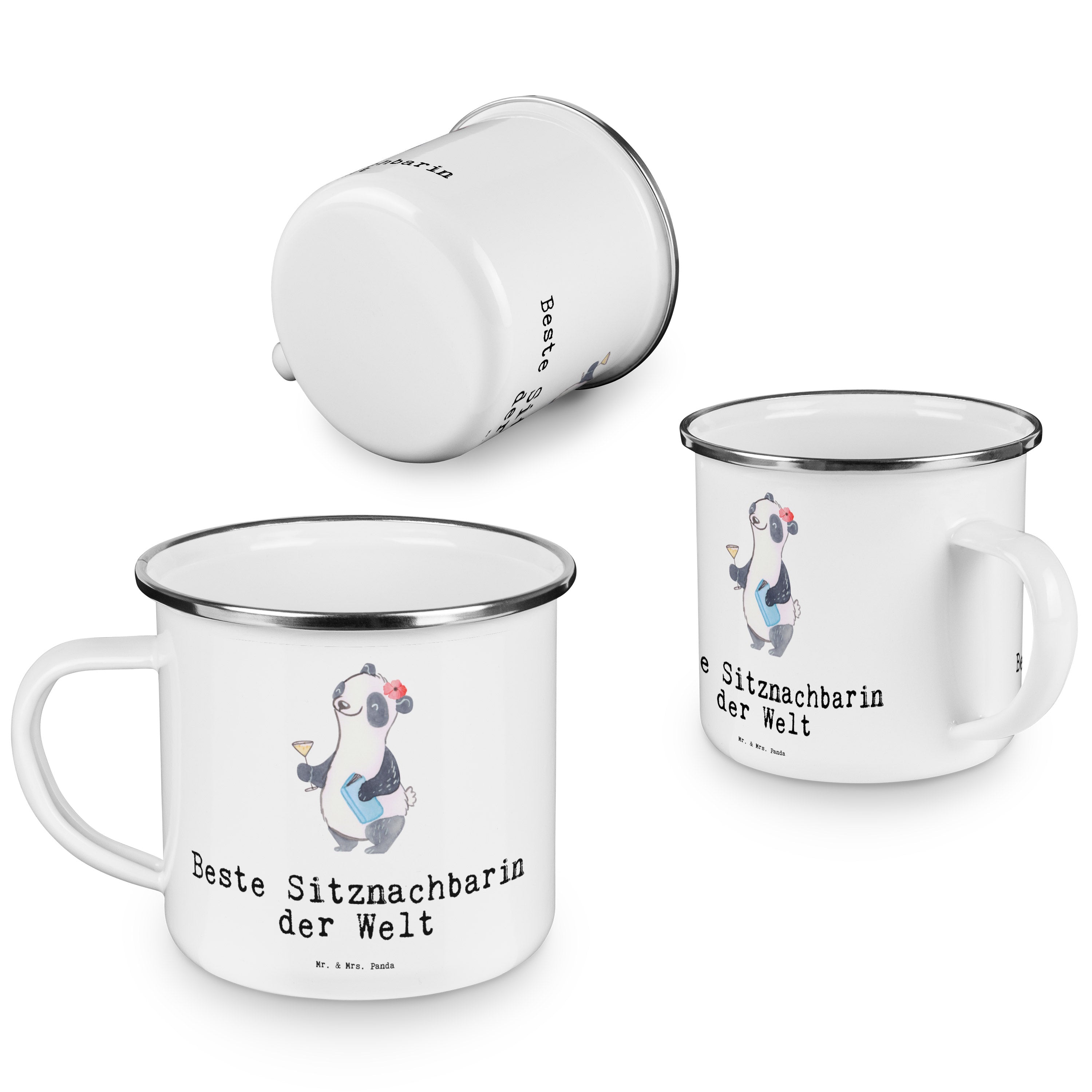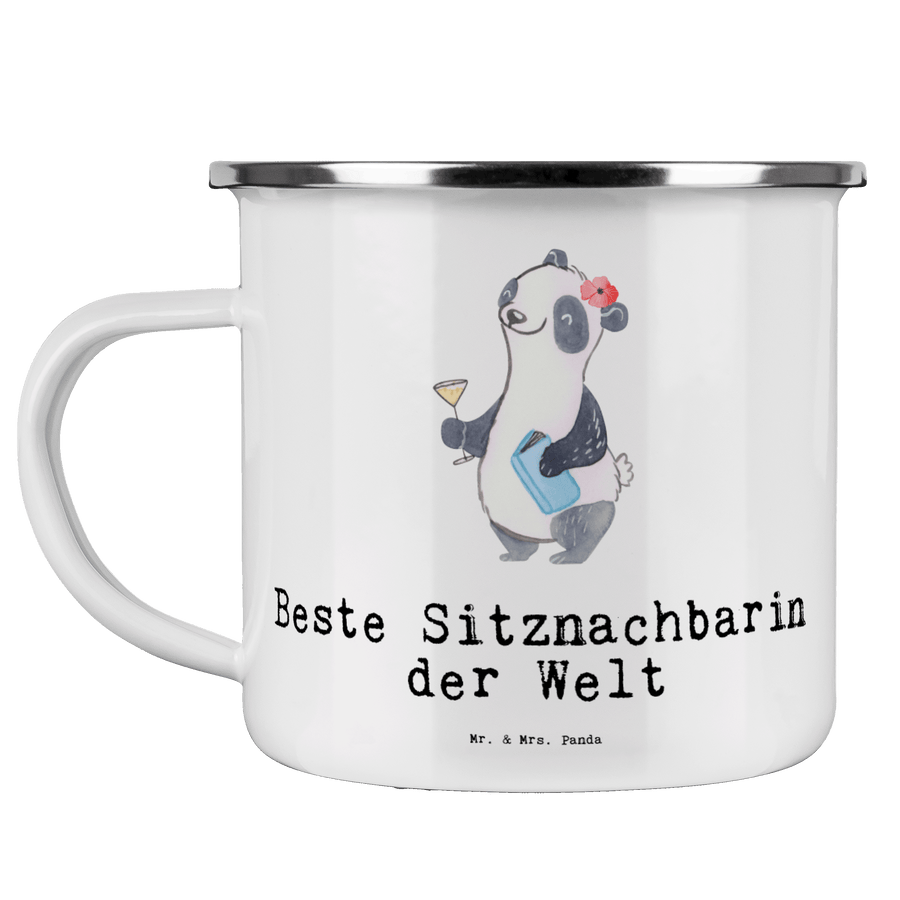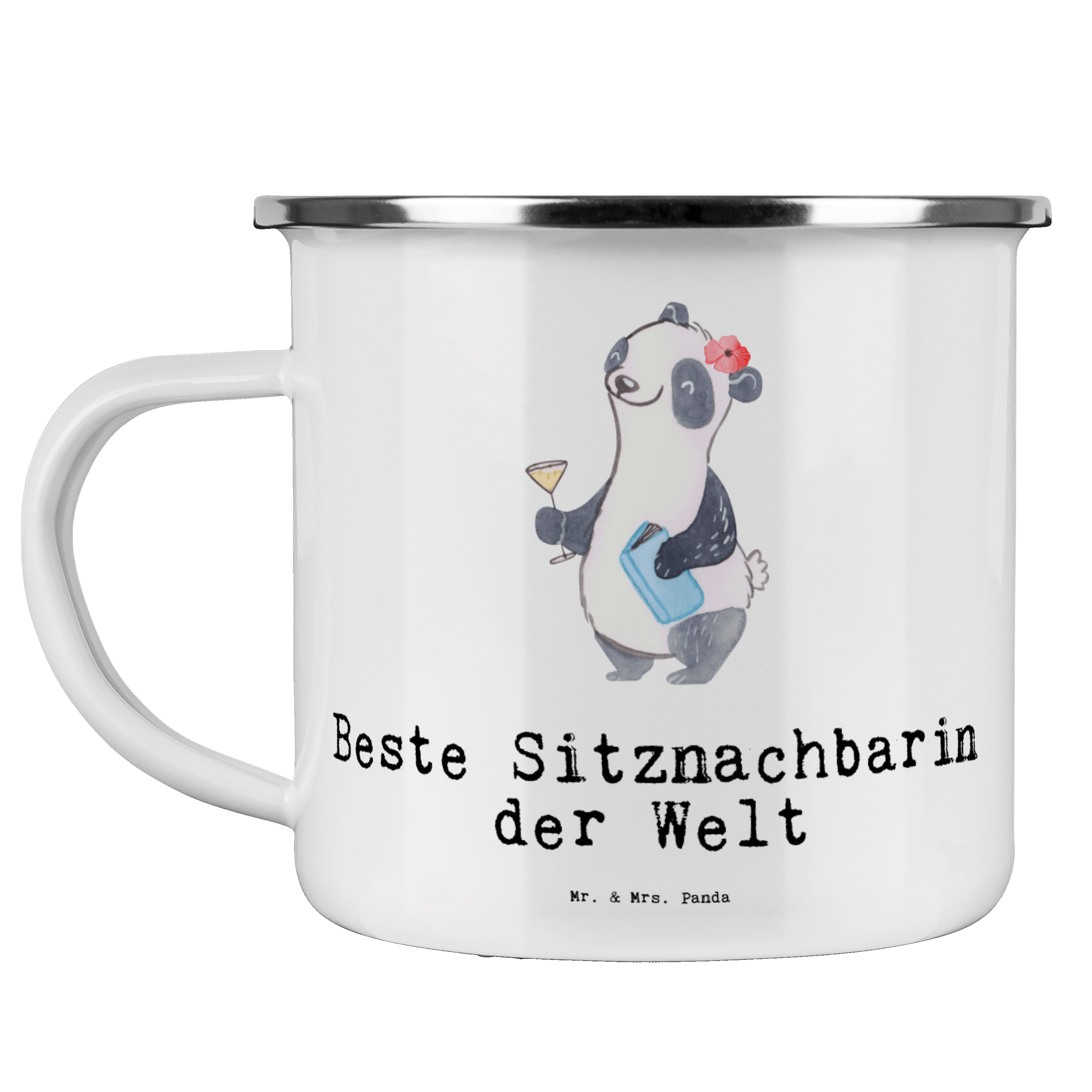 Camping Emaille Tasse Panda Beste Sitznachbarin der Welt - Weiß