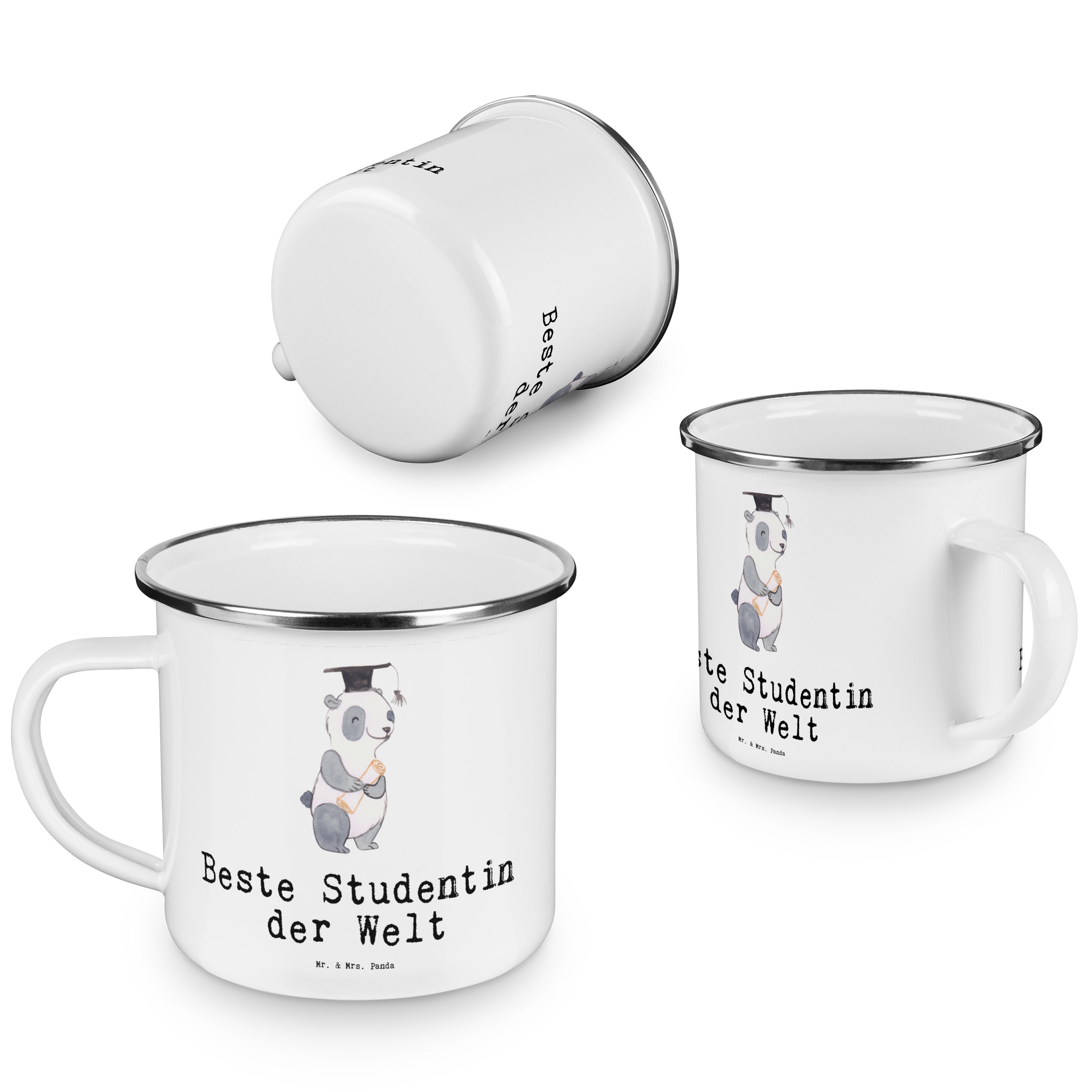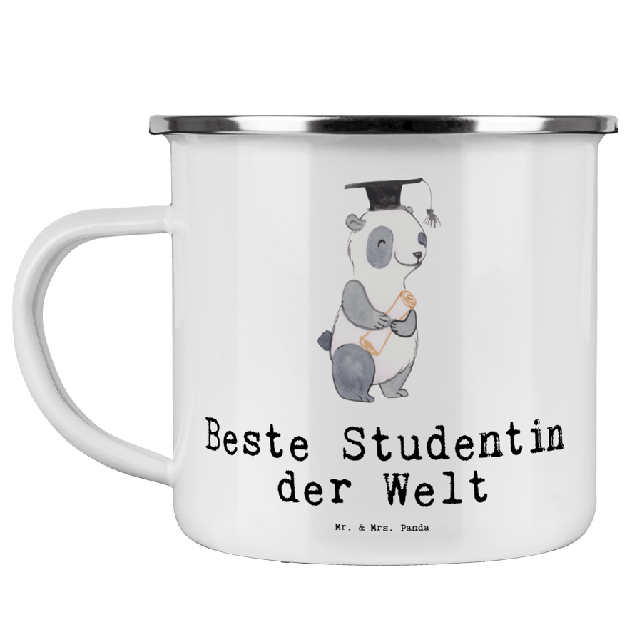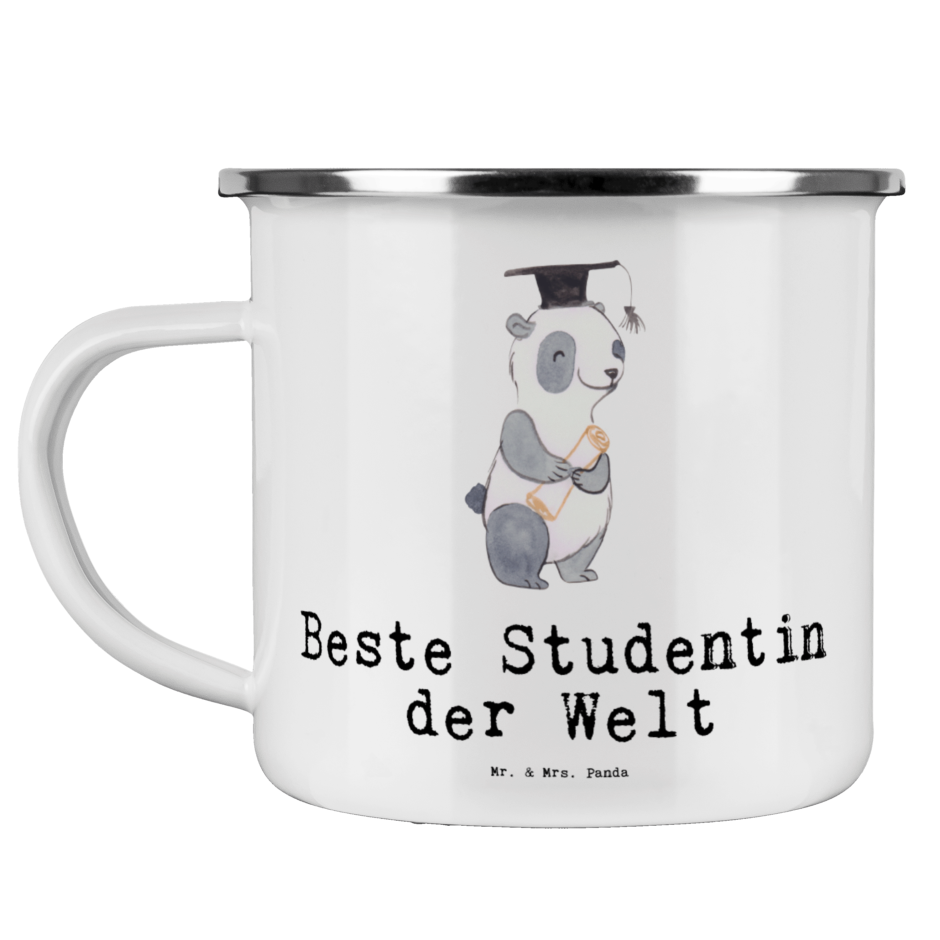 Camping Emaille Tasse Panda Beste Studentin der Welt - Weiß