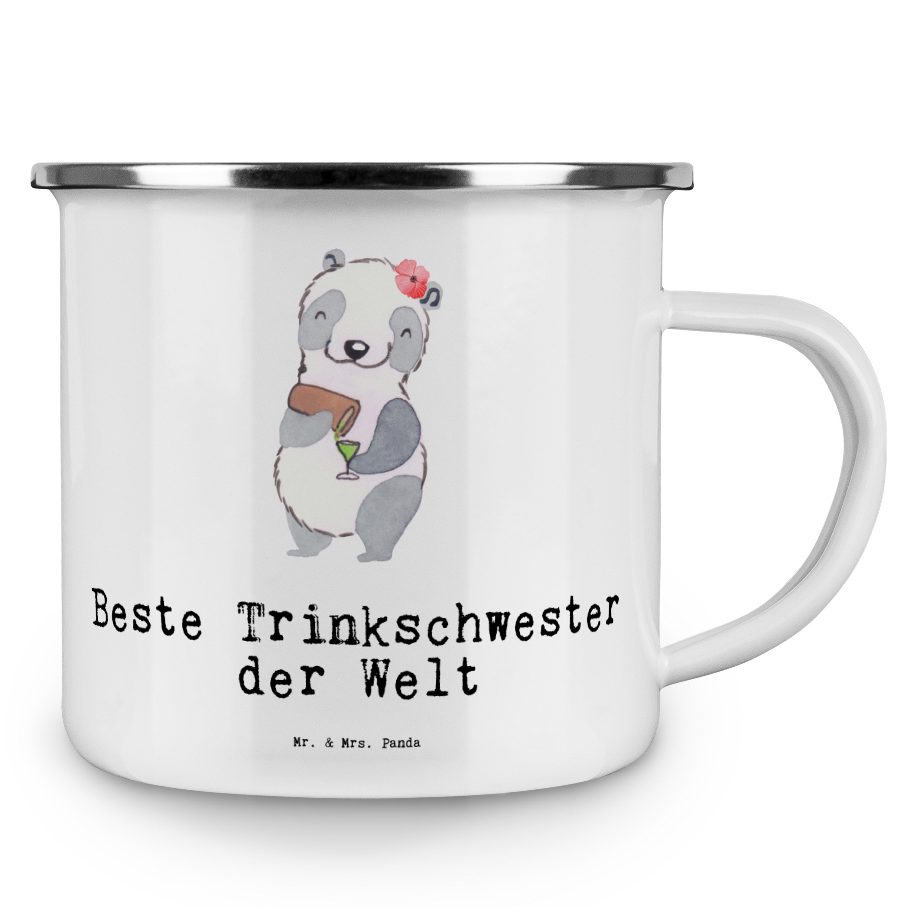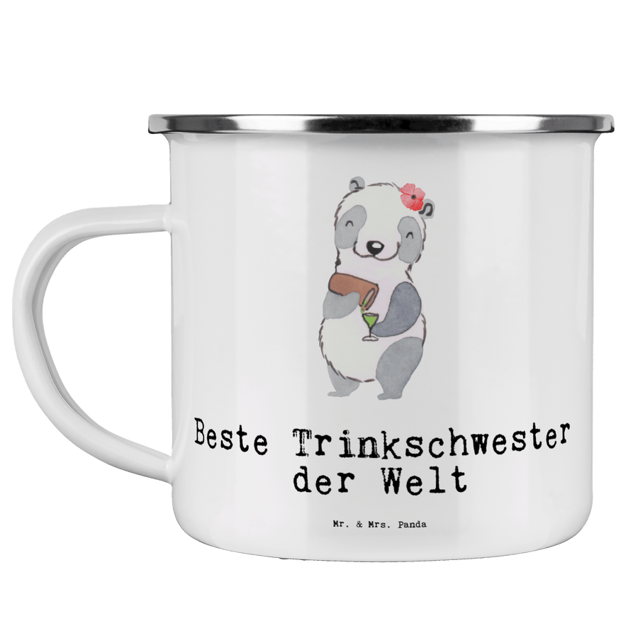 Camping Emaille Tasse Panda Beste Trinkschwester der Welt - Weiß