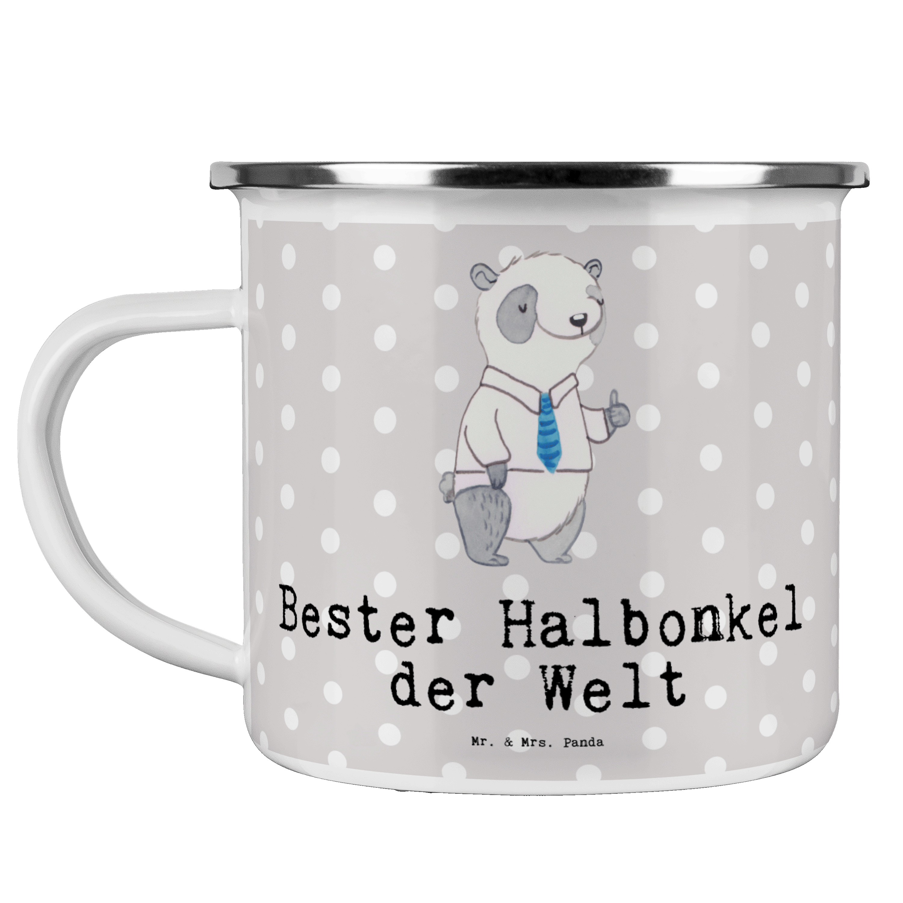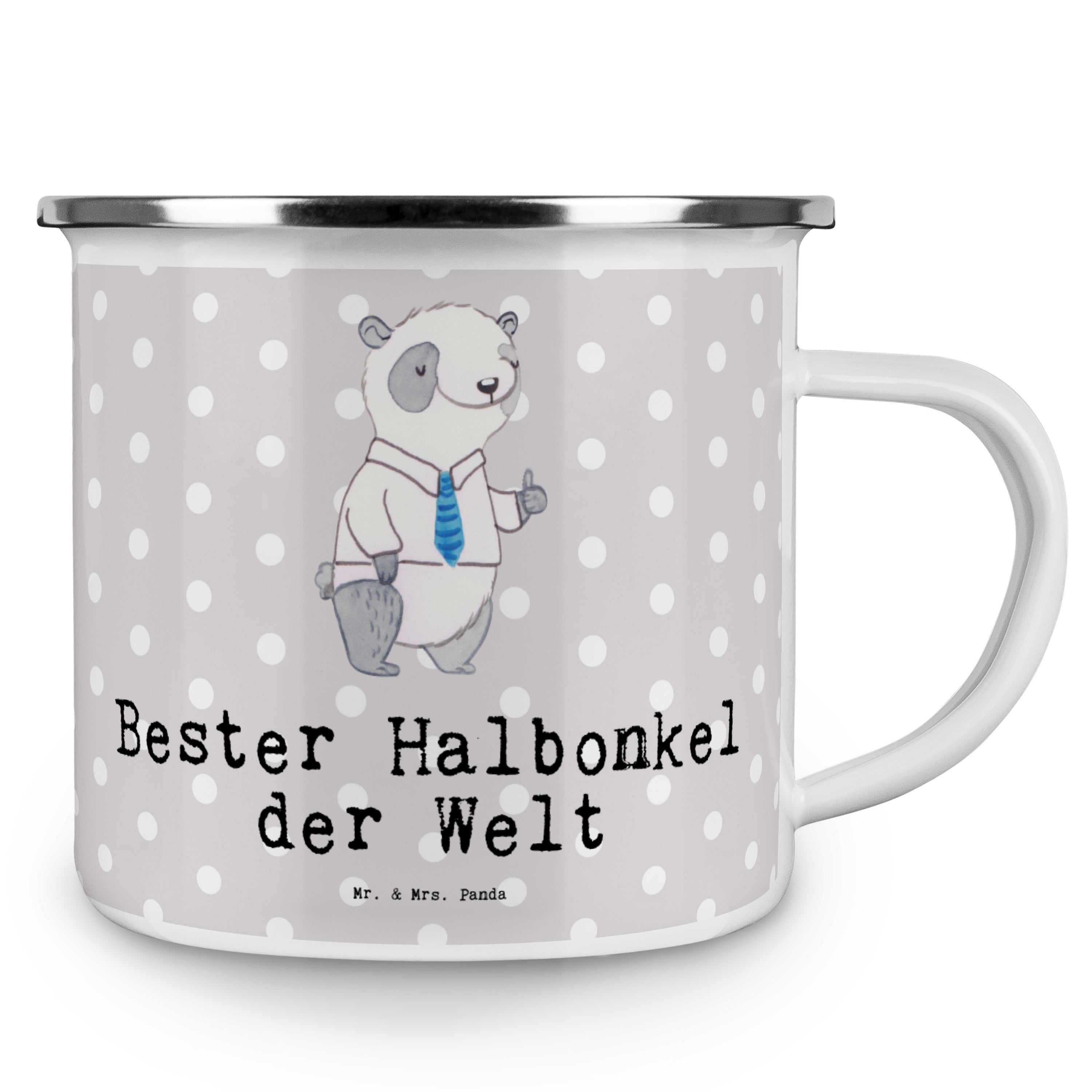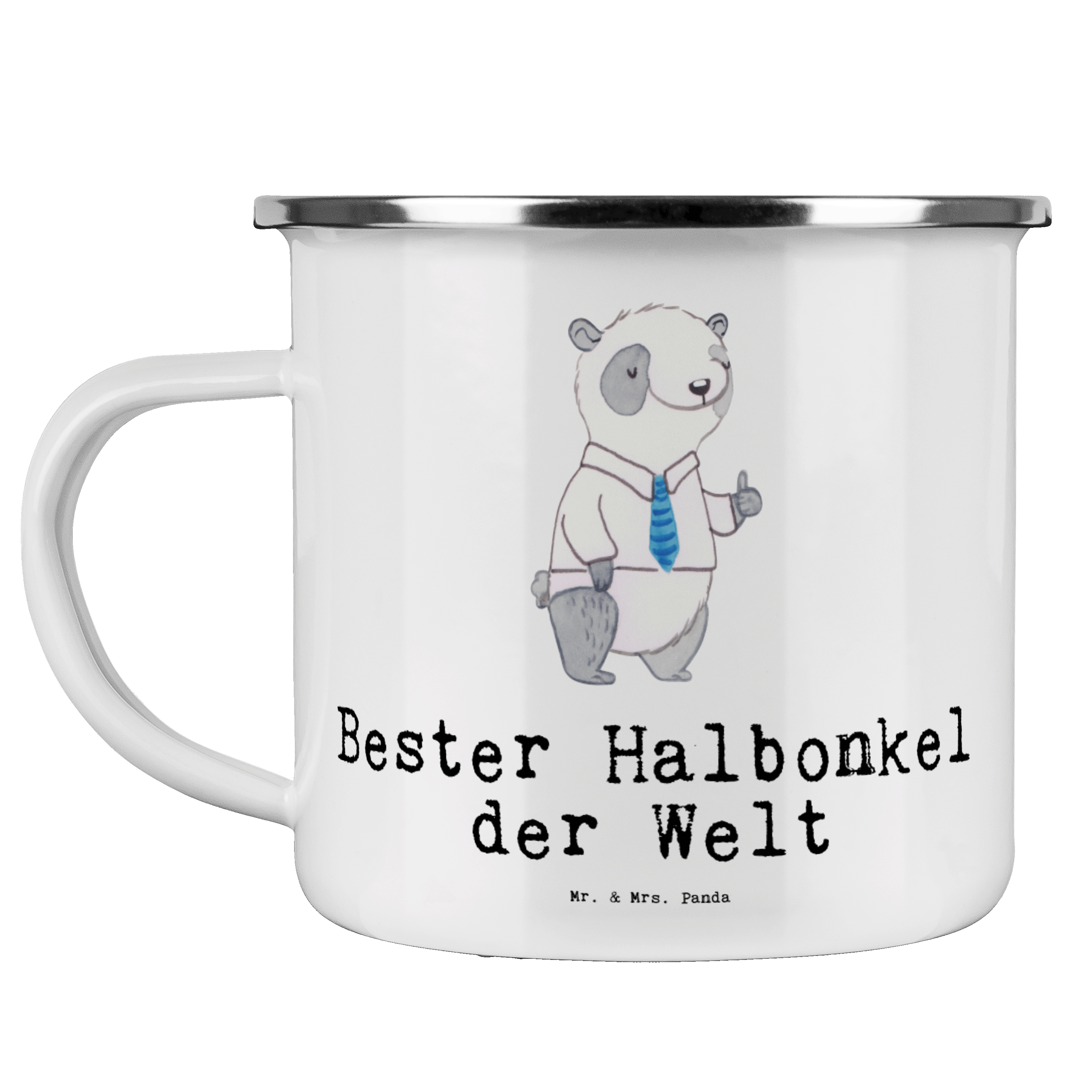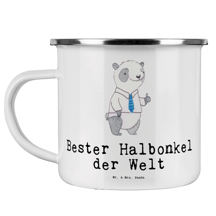 Camping Emaille Tasse Panda Bester Halbonkel der Welt - Weiß