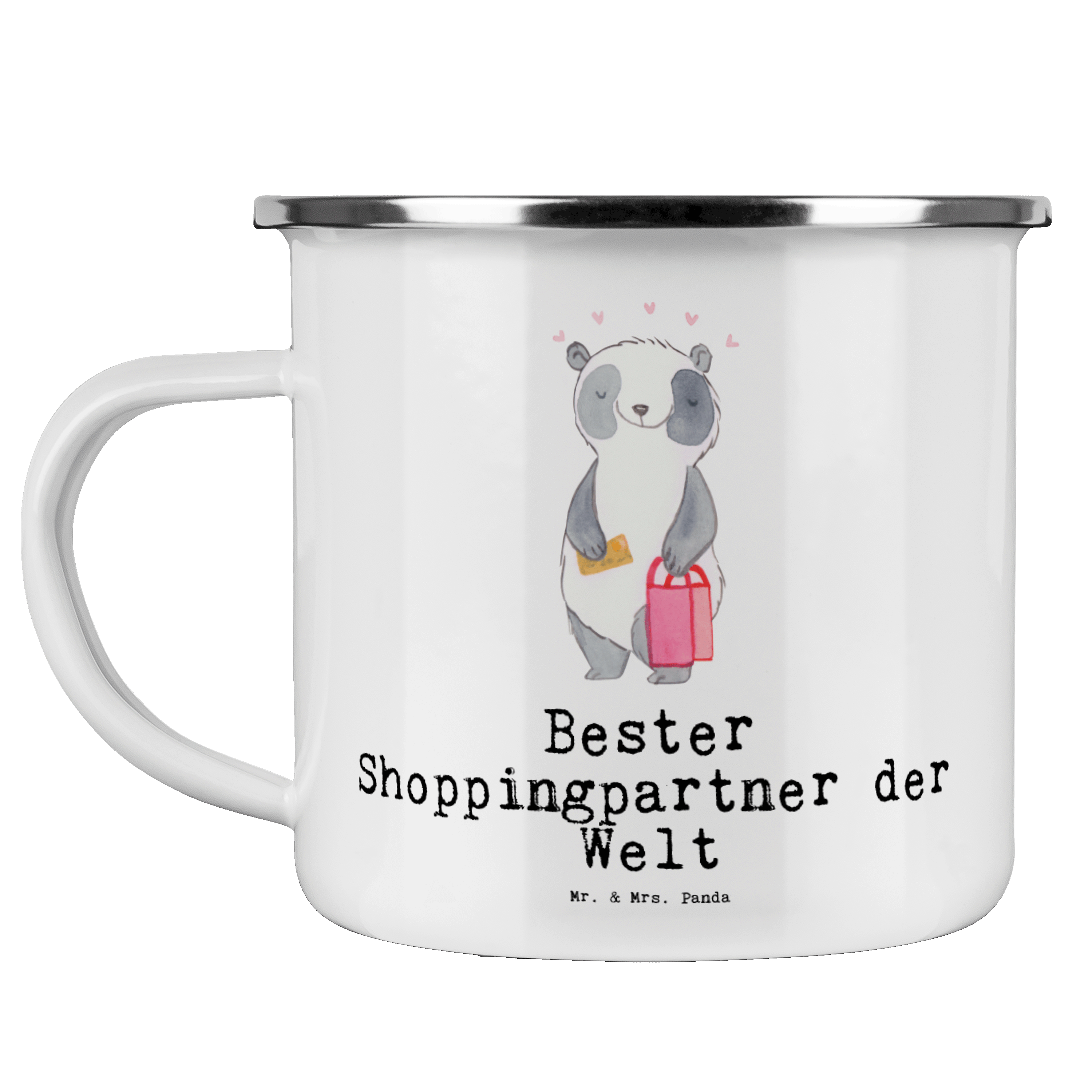 Camping Emaille Tasse Panda Bester Shoppingpartner der Welt Campingtasse, Trinkbecher, Metalltasse, Outdoor Tasse, Emaille Trinkbecher, Blechtasse Outdoor, Emaille Campingbecher, Edelstahl Trinkbecher, Metalltasse für Camping, Kaffee Blechtasse, Camping Tasse Metall, für, Dankeschön, Geschenk, Schenken, Geburtstag, Geburtstagsgeschenk, Geschenkidee, Danke, Bedanken, Mitbringsel, Freude machen, Geschenktipp, Shoppingpartner, Shoppen, Begleitung, Partner, Freundin, Freund, bff, Shopping, Einkaufen, Shopping-Queen, Queen, Bester