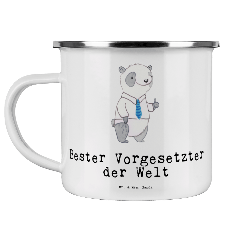 Camping Emaille Tasse Panda Bester Vorgesetzter der Welt - Weiß