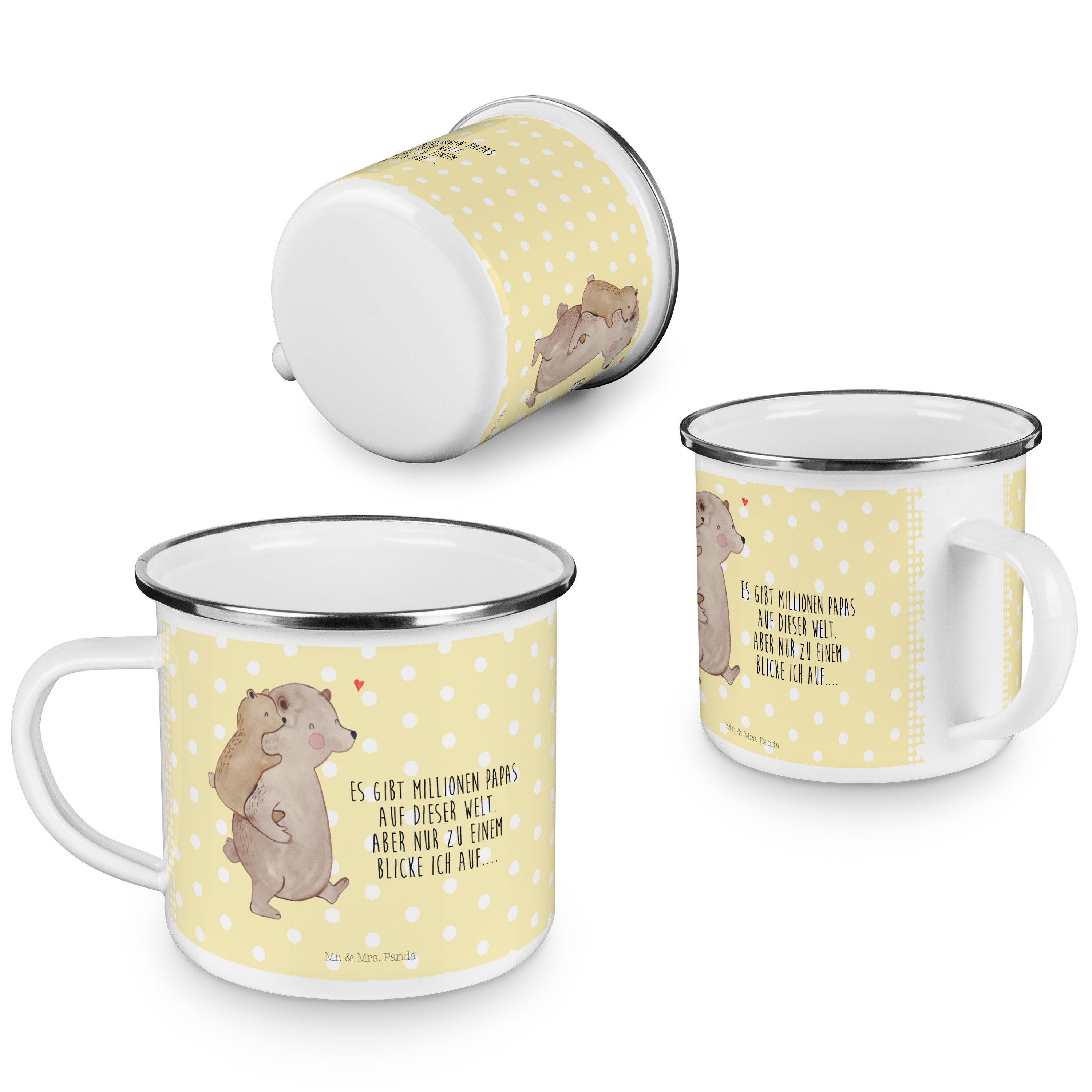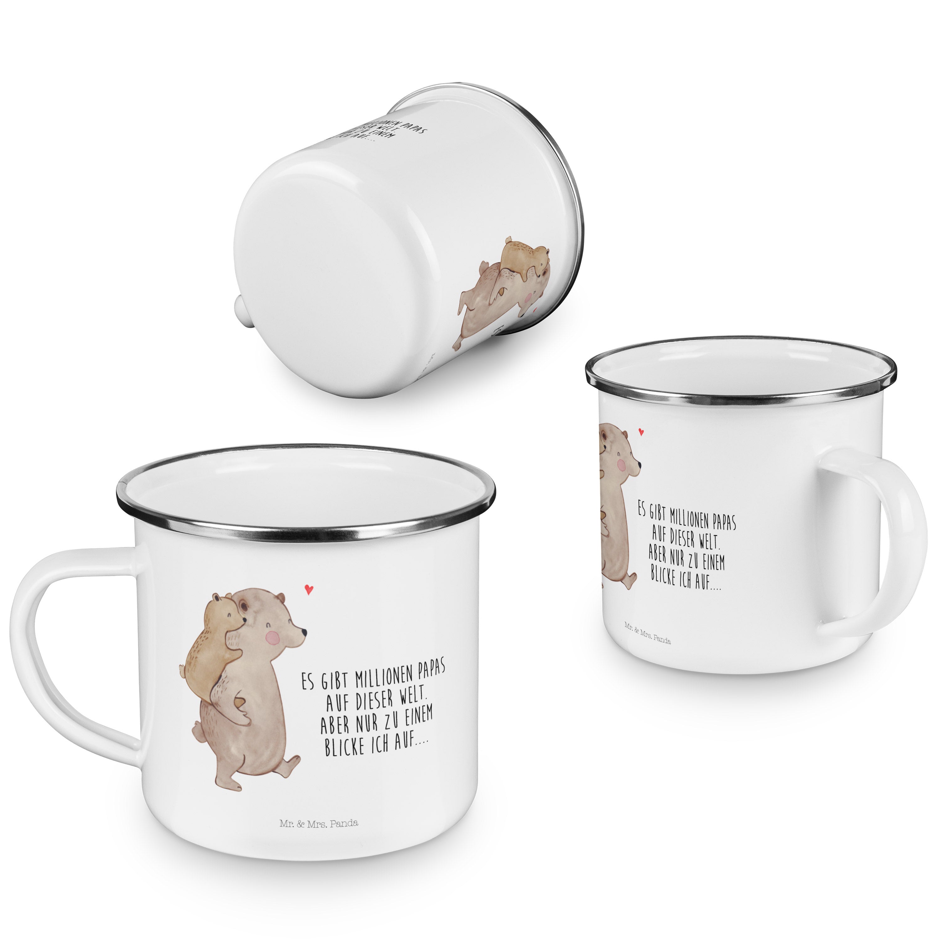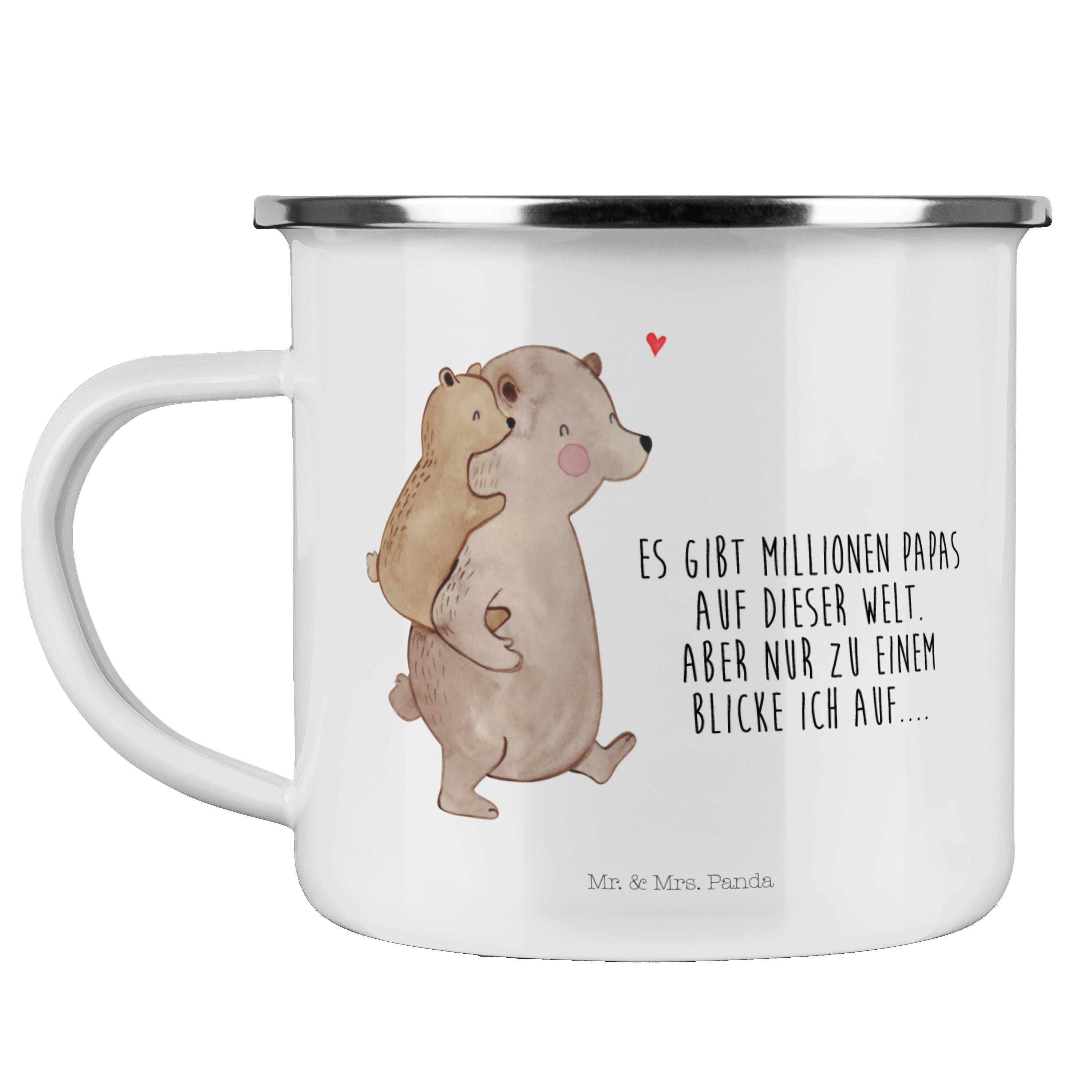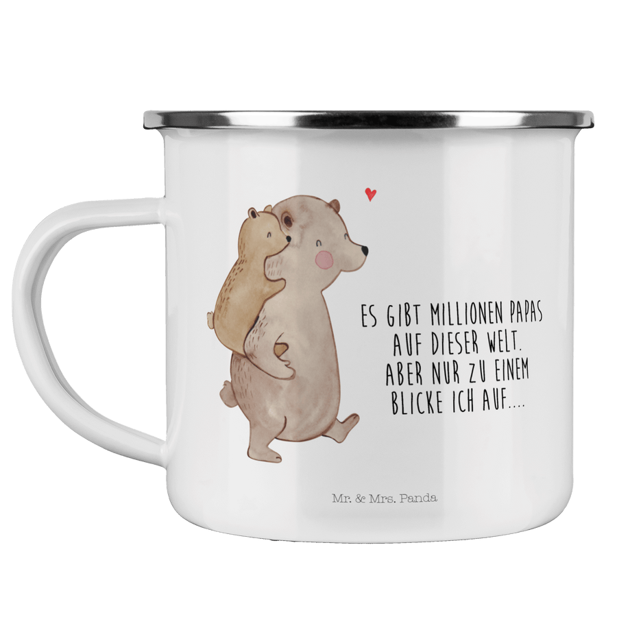 Camping Emaille Tasse Papa Bär - mit Spruch - Weiß