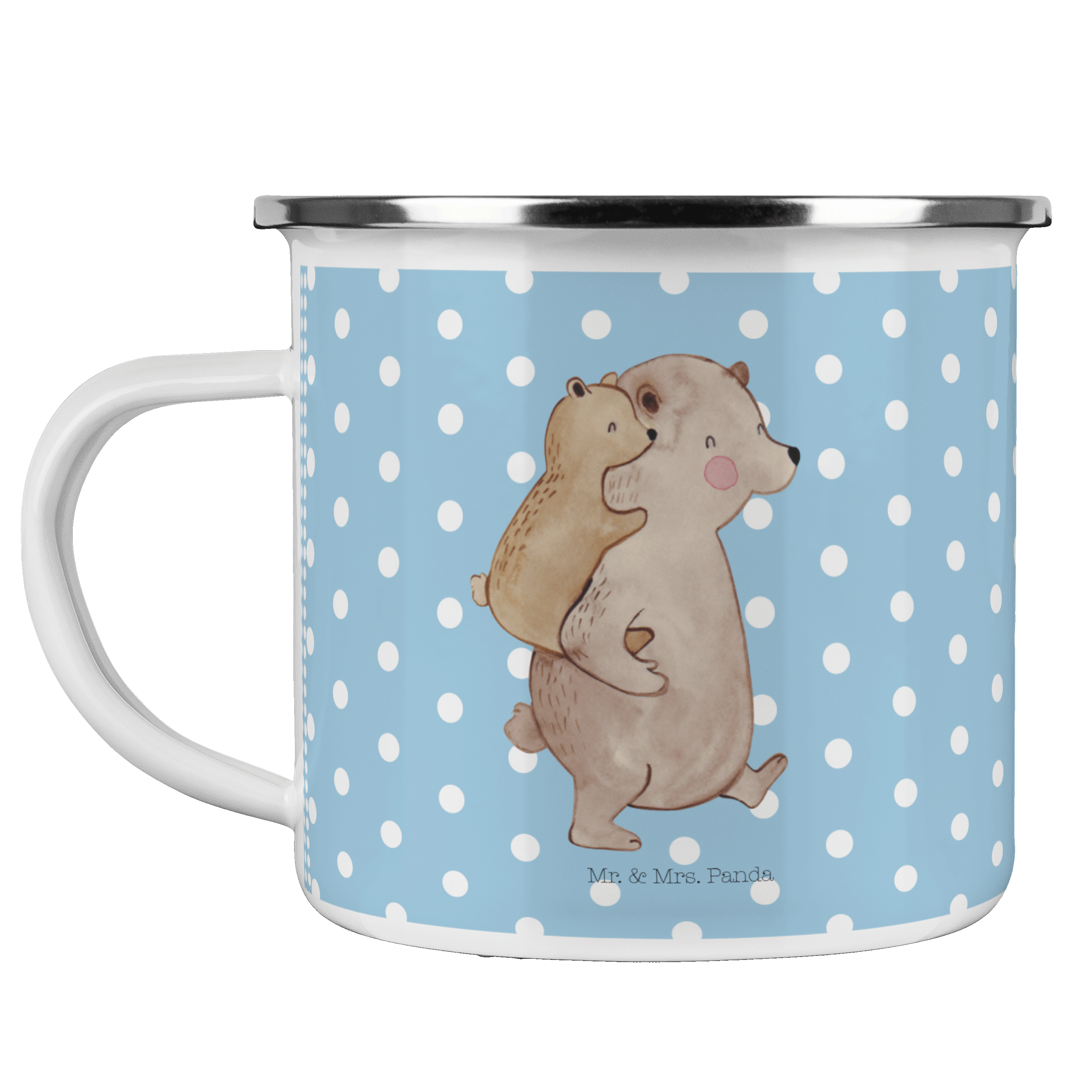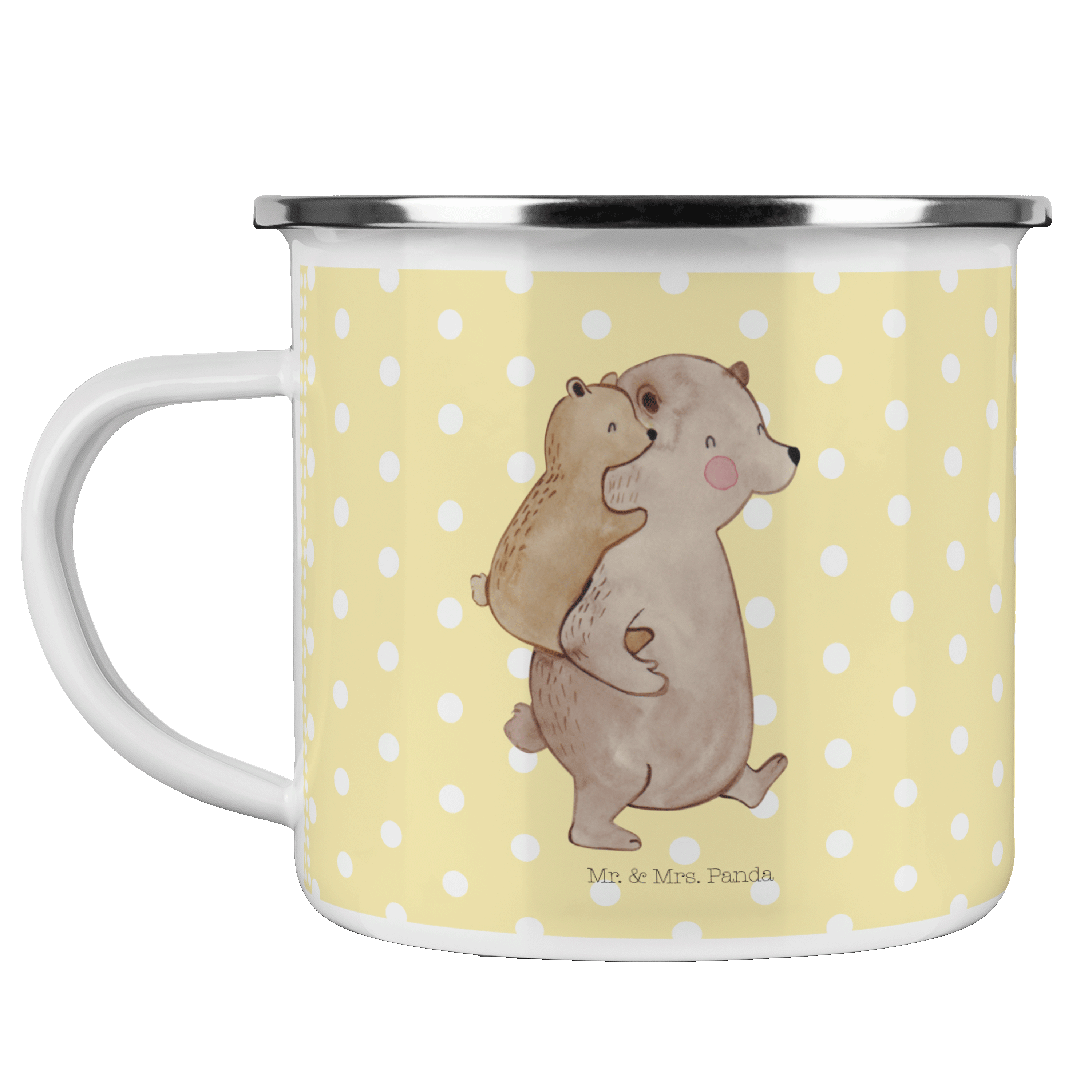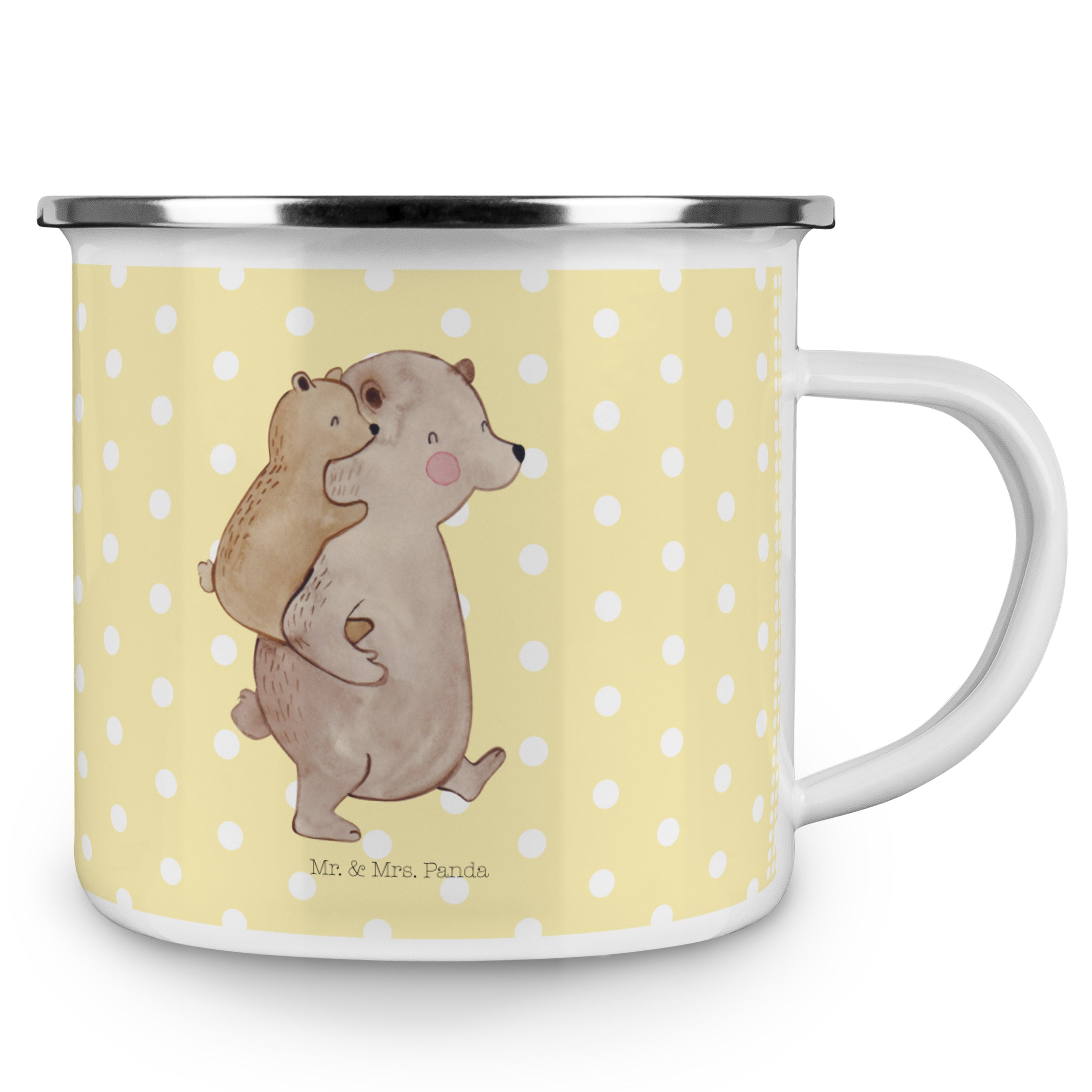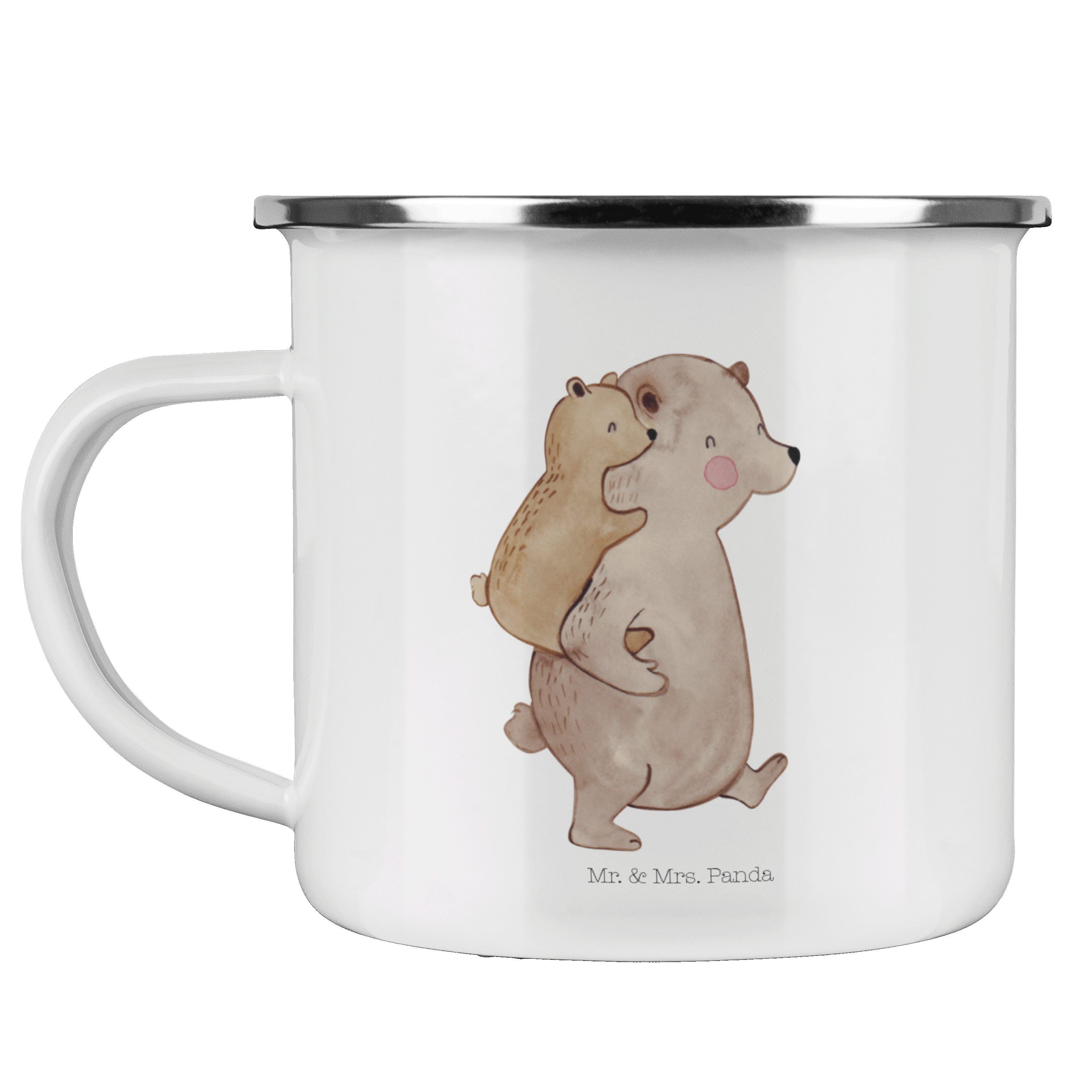 Camping Emaille Tasse Papa Bär - mit Spruch - Weiß