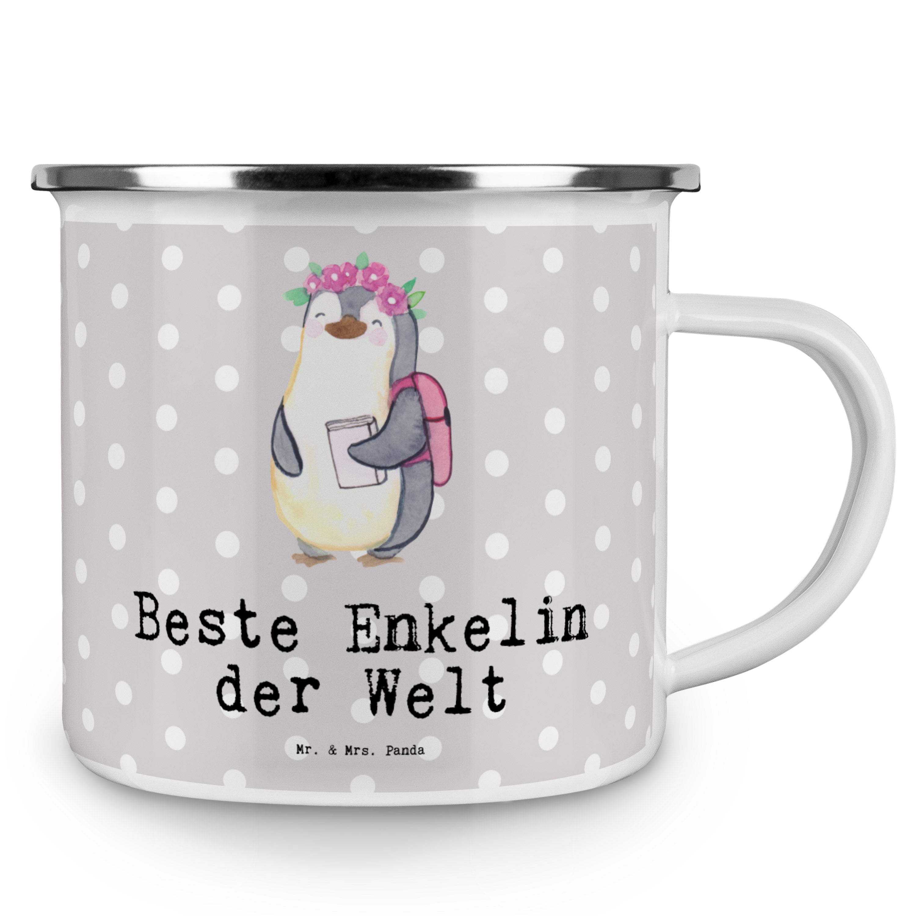 Camping Emaille Tasse Pinguin Beste Enkelin der Welt - Weiß