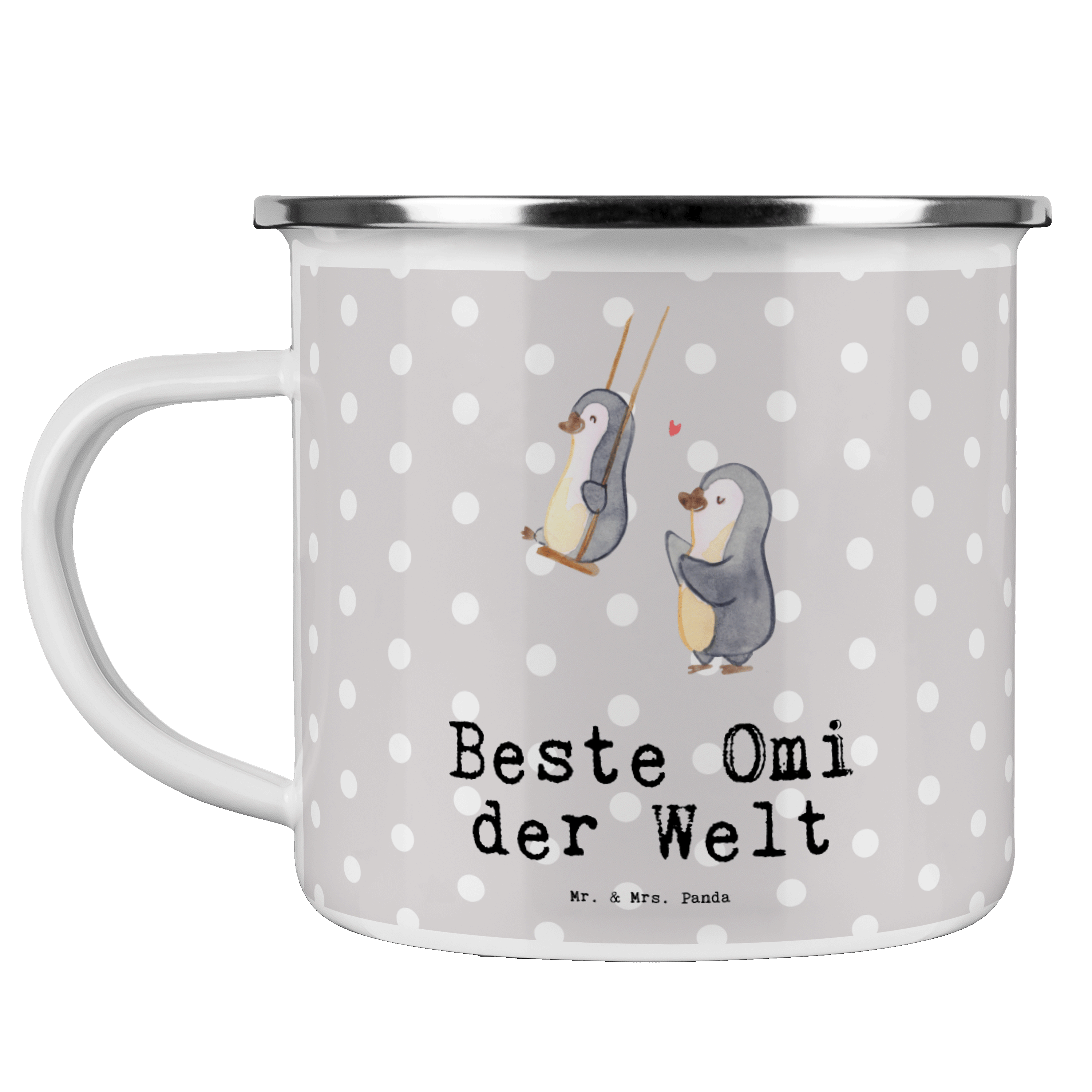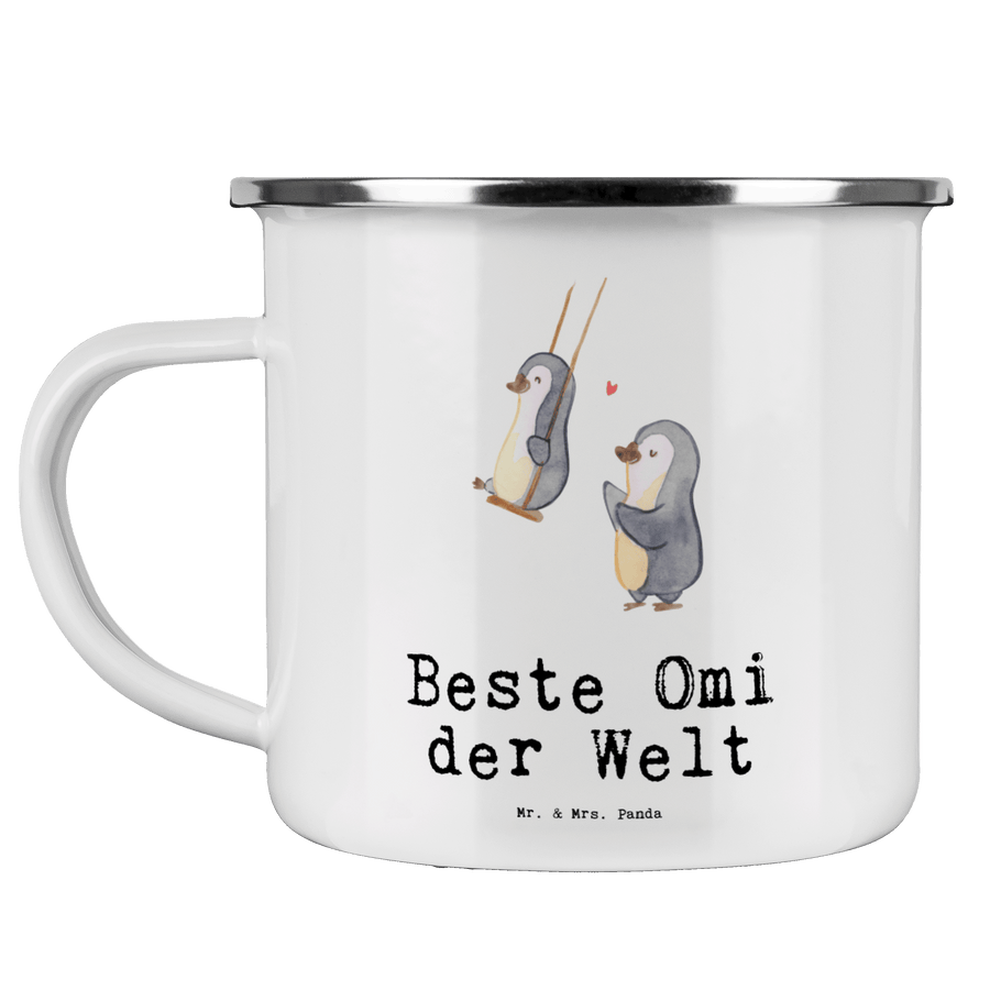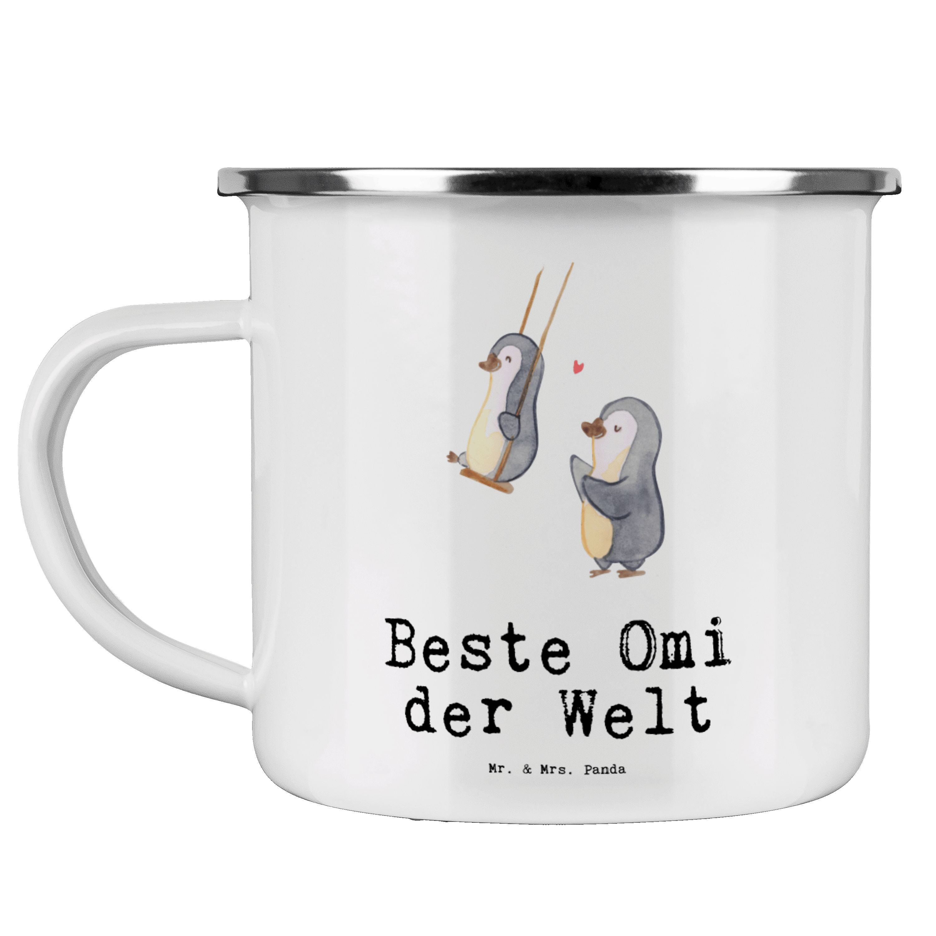 Camping Emaille Tasse Pinguin Beste Omi der Welt - Weiß