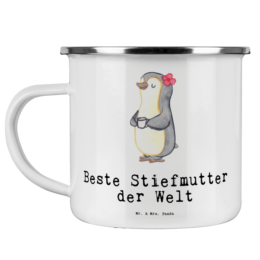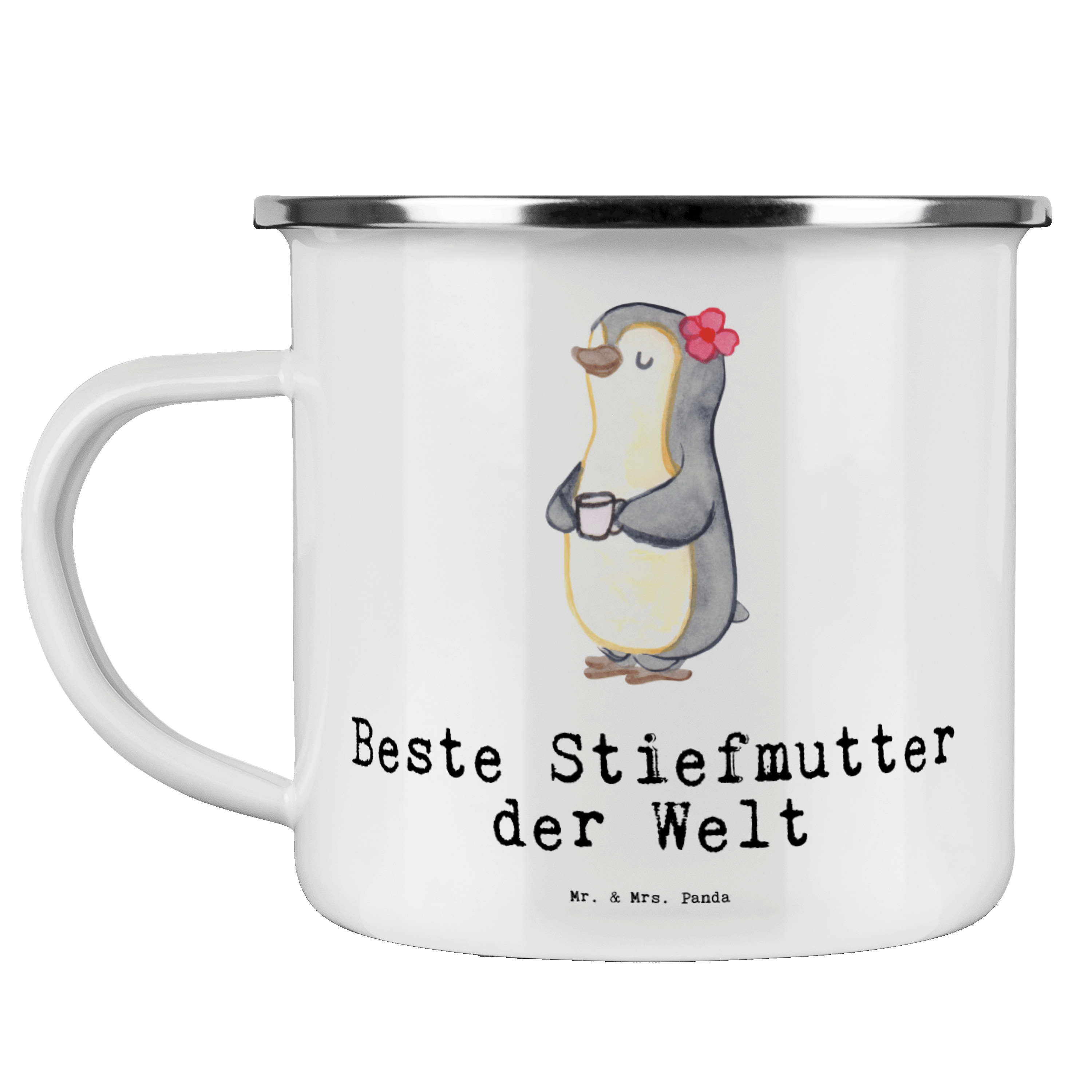 Camping Emaille Tasse Pinguin Beste Stiefmutter der Welt - Weiß