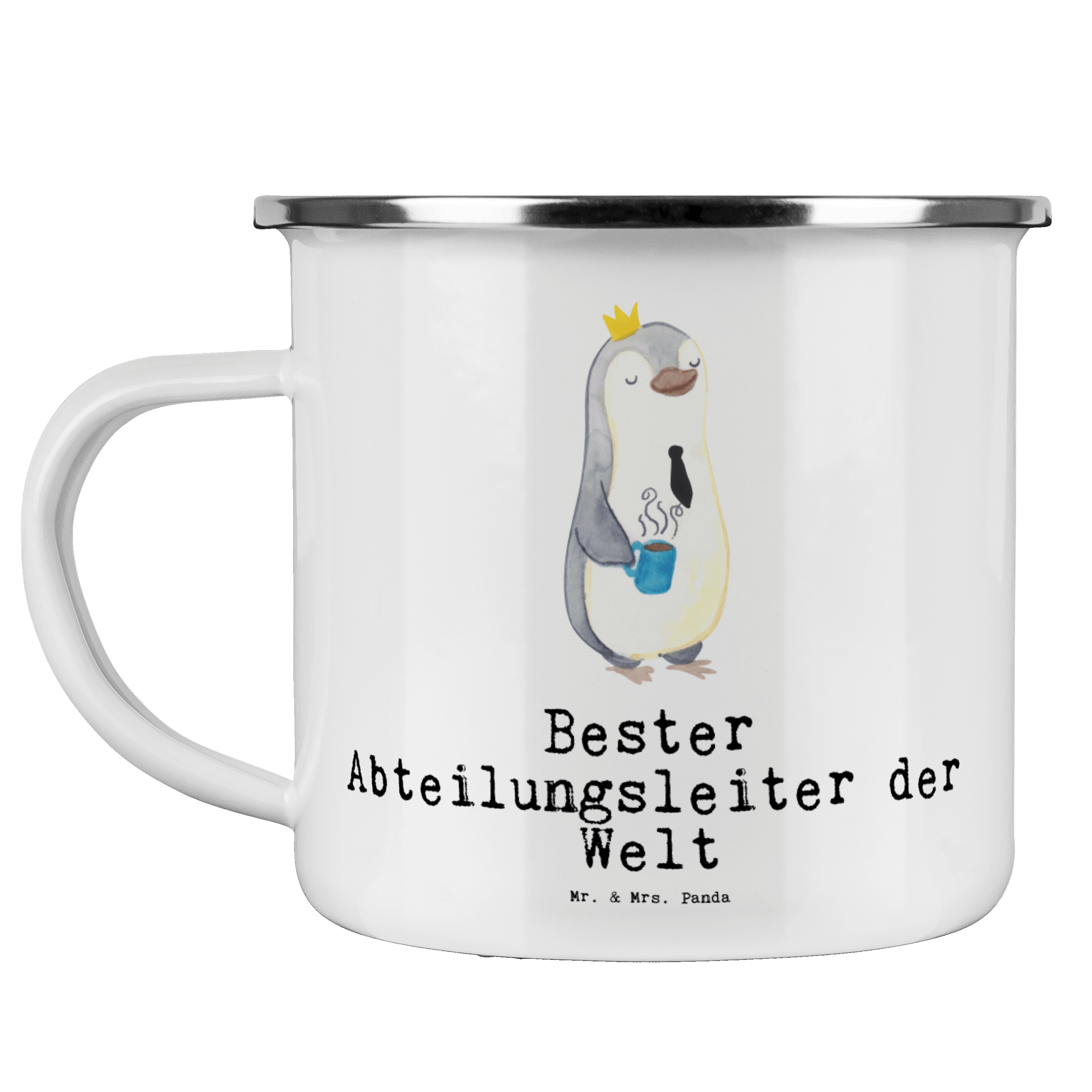 Camping Emaille Tasse Pinguin Bester Abteilungsleiter der Welt - Weiß