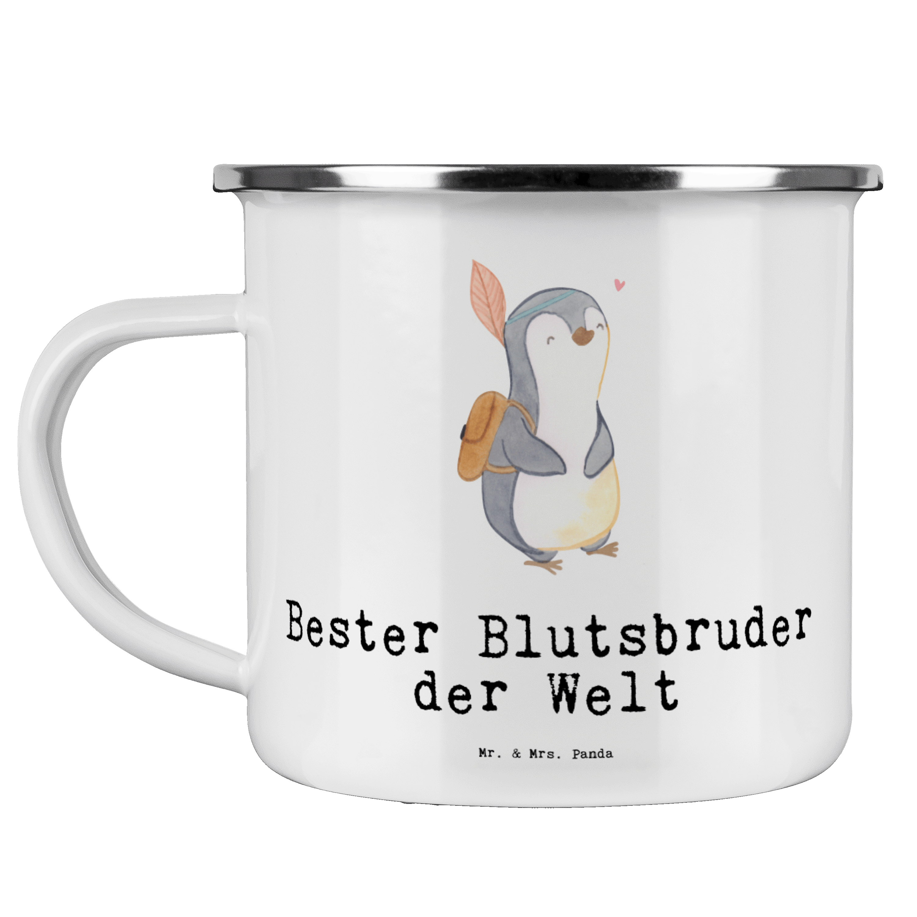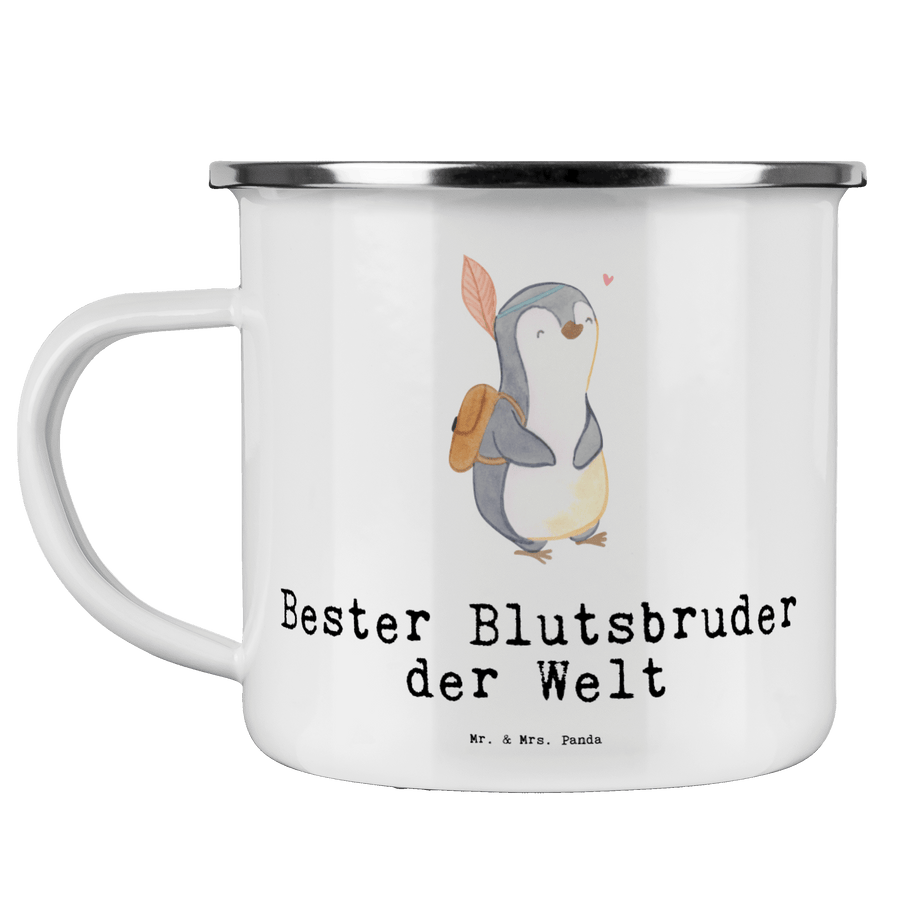 Camping Emaille Tasse Pinguin Bester Blutsbruder der Welt - Weiß