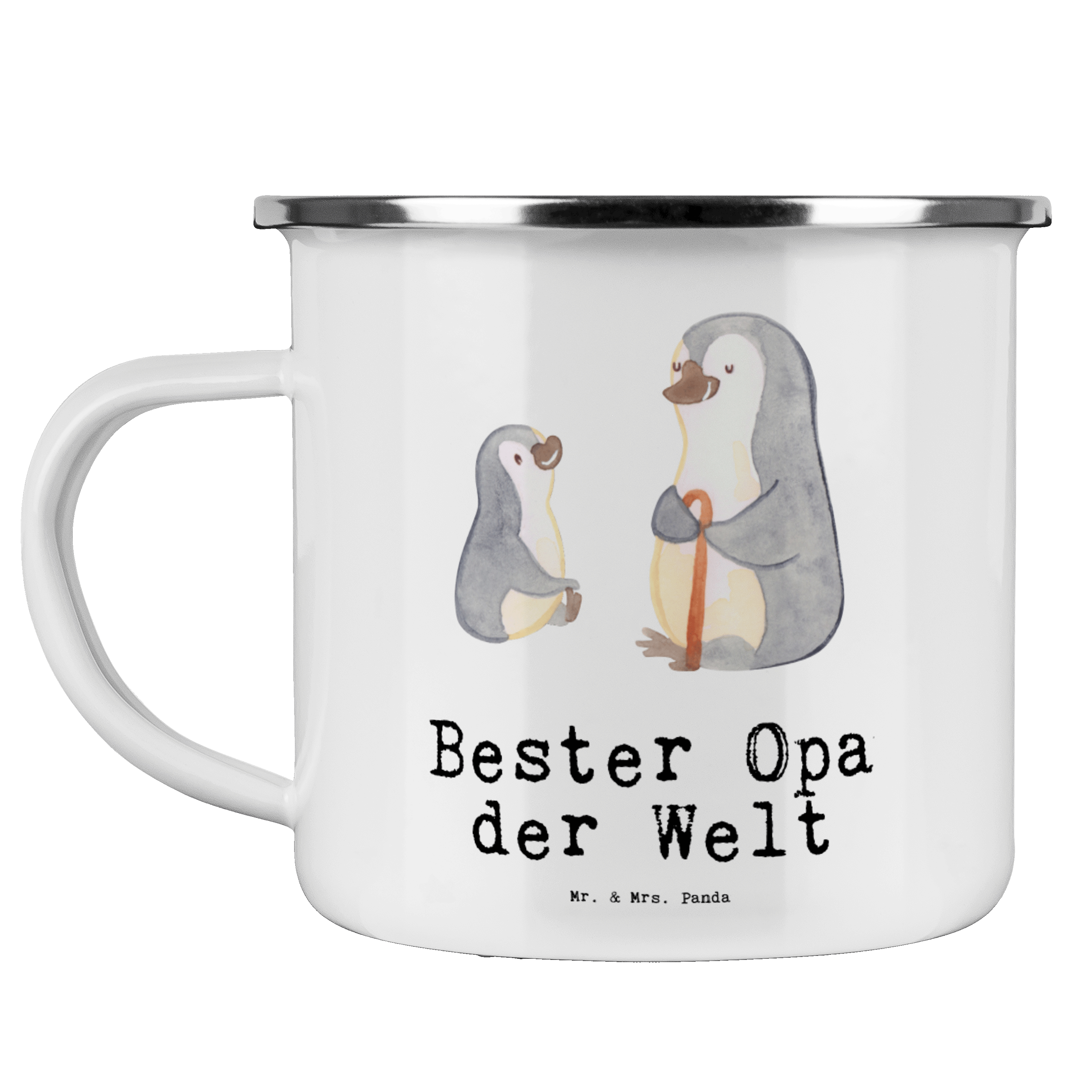 Camping Emaille Tasse Pinguin Bester Opa der Welt - Weiß