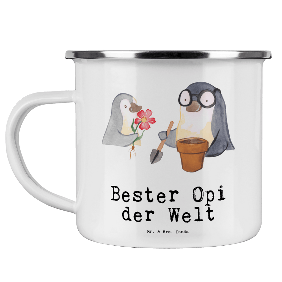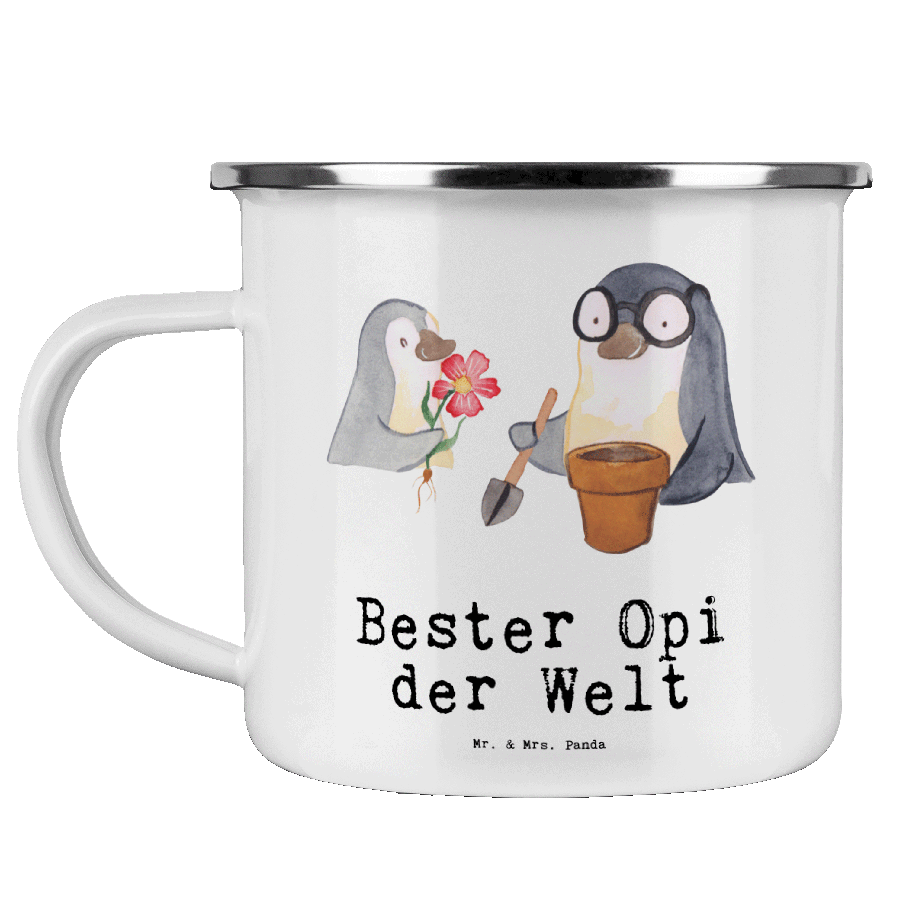Camping Emaille Tasse Pinguin Bester Opi der Welt - Weiß