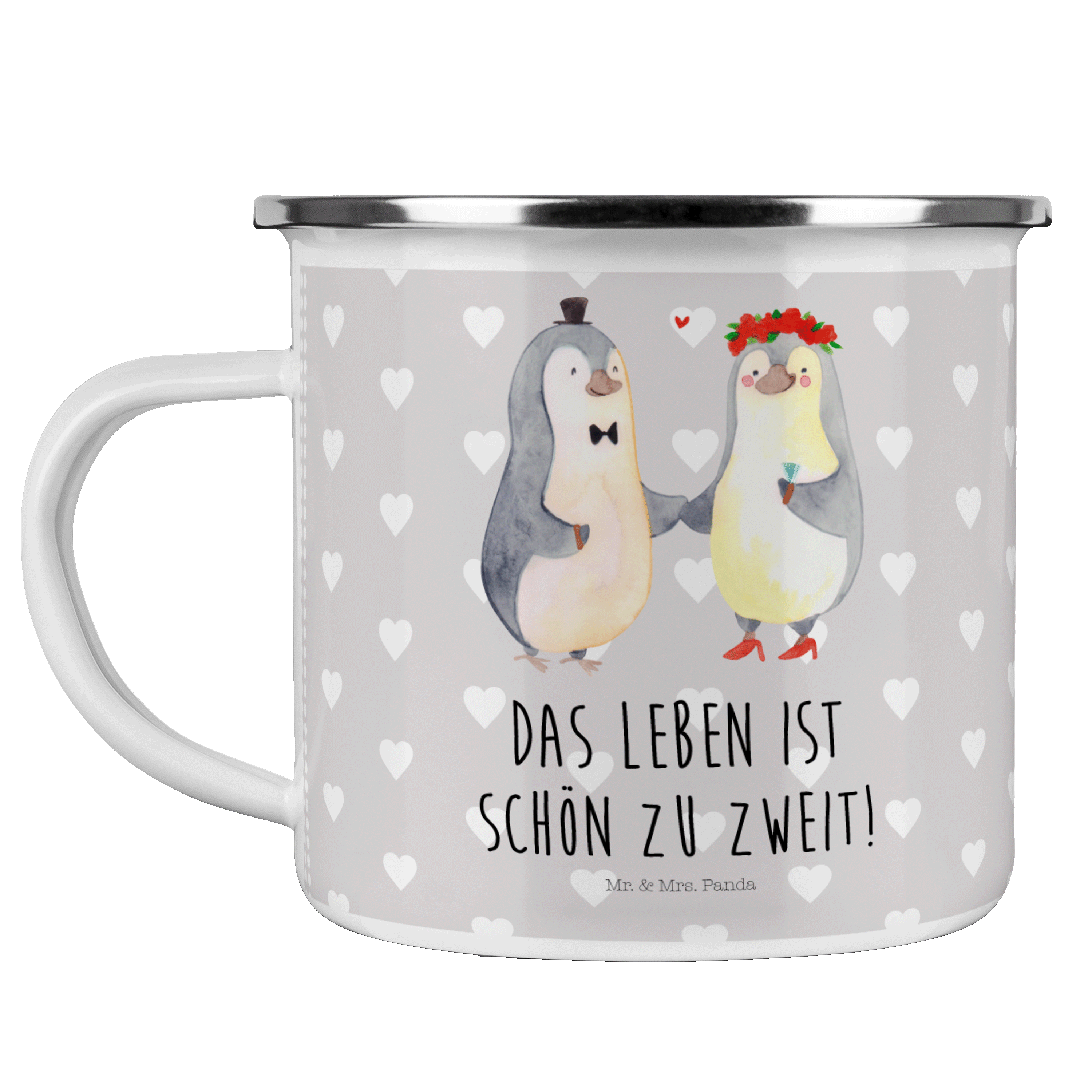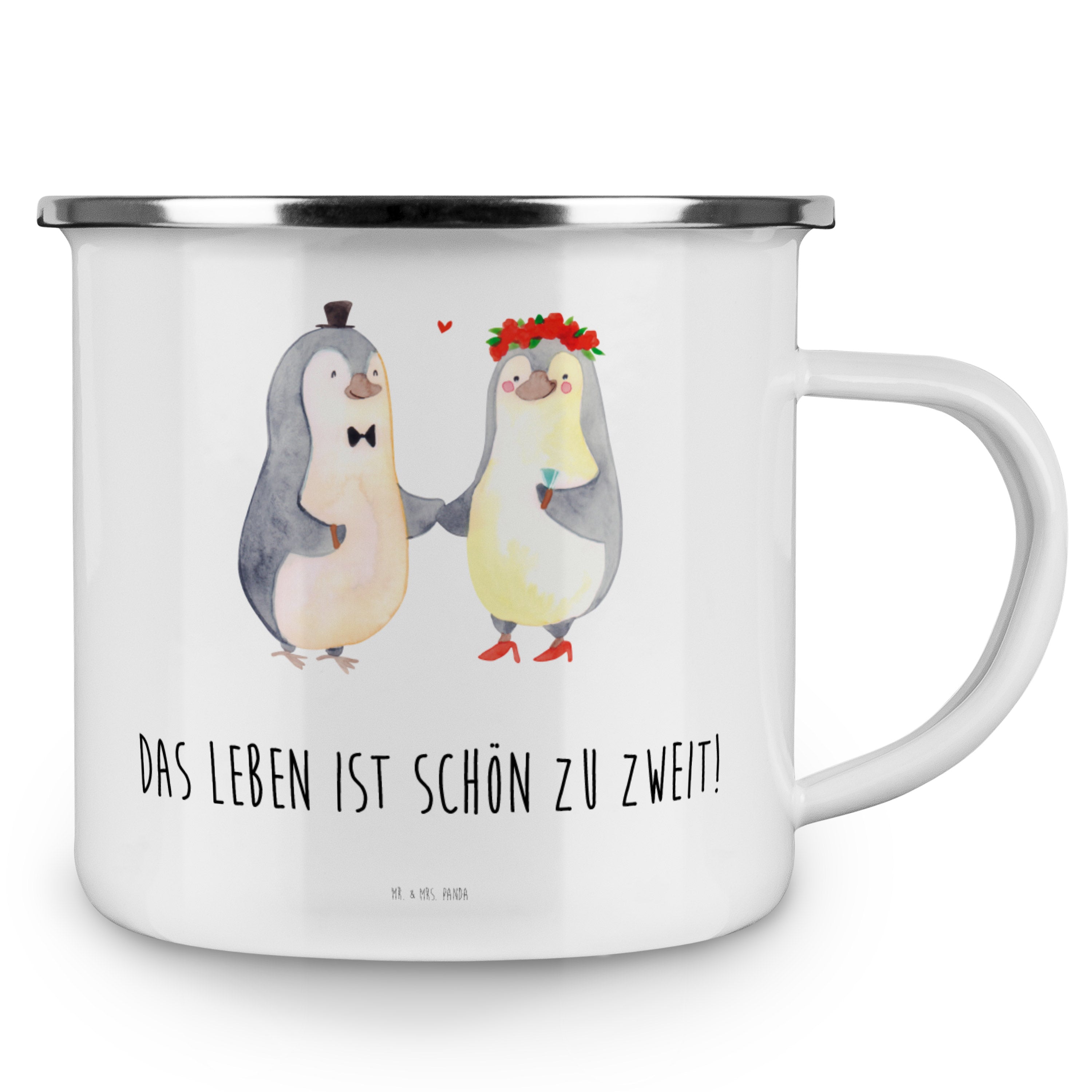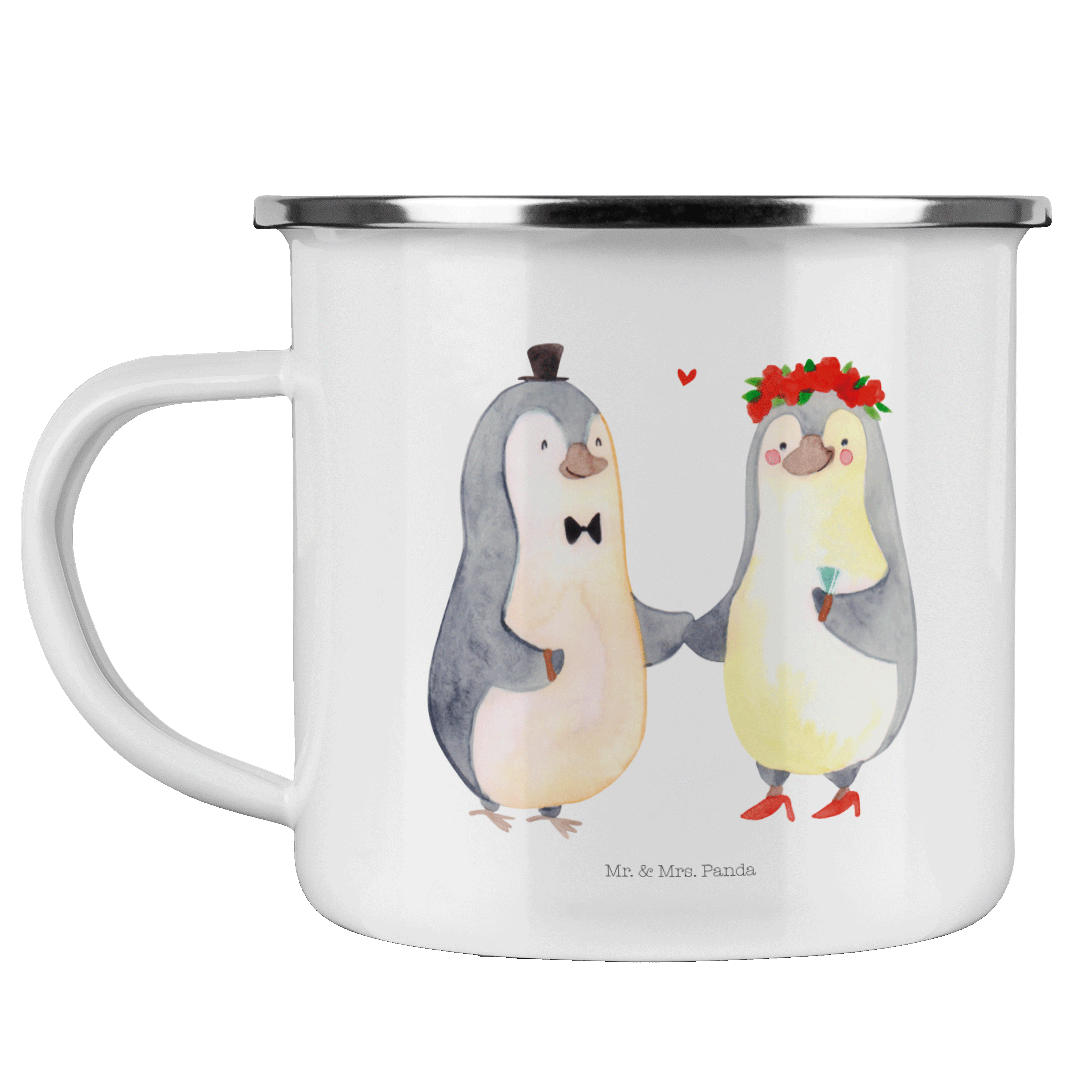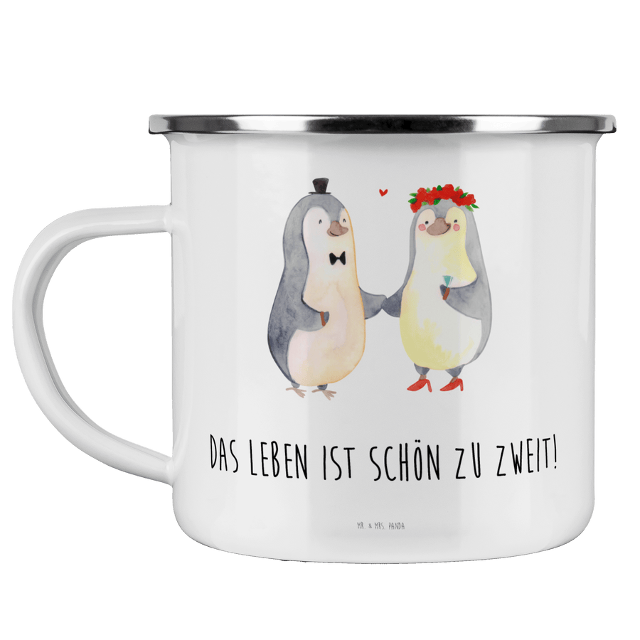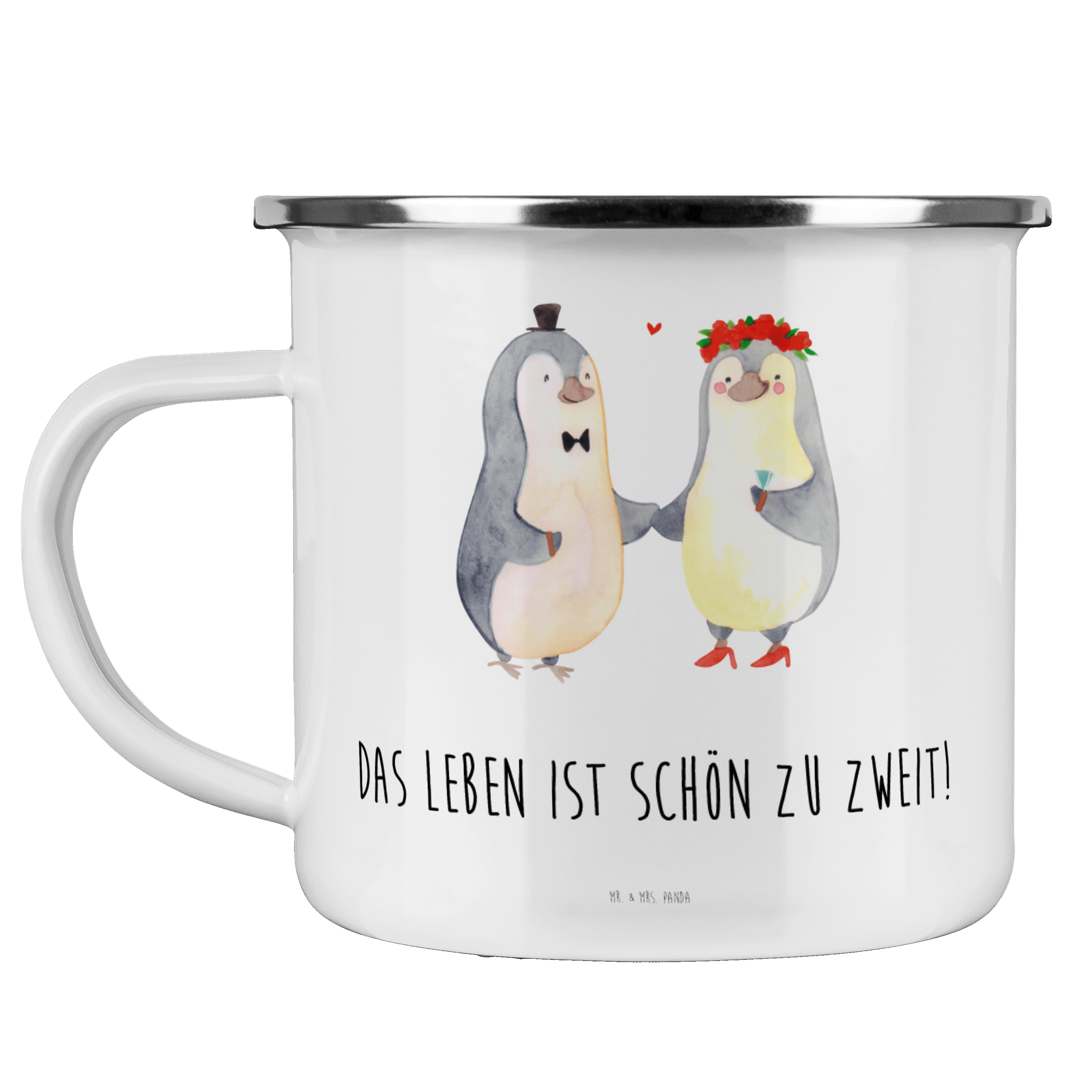 Camping Emaille Tasse Pinguin Heirat - mit Spruch - Weiß