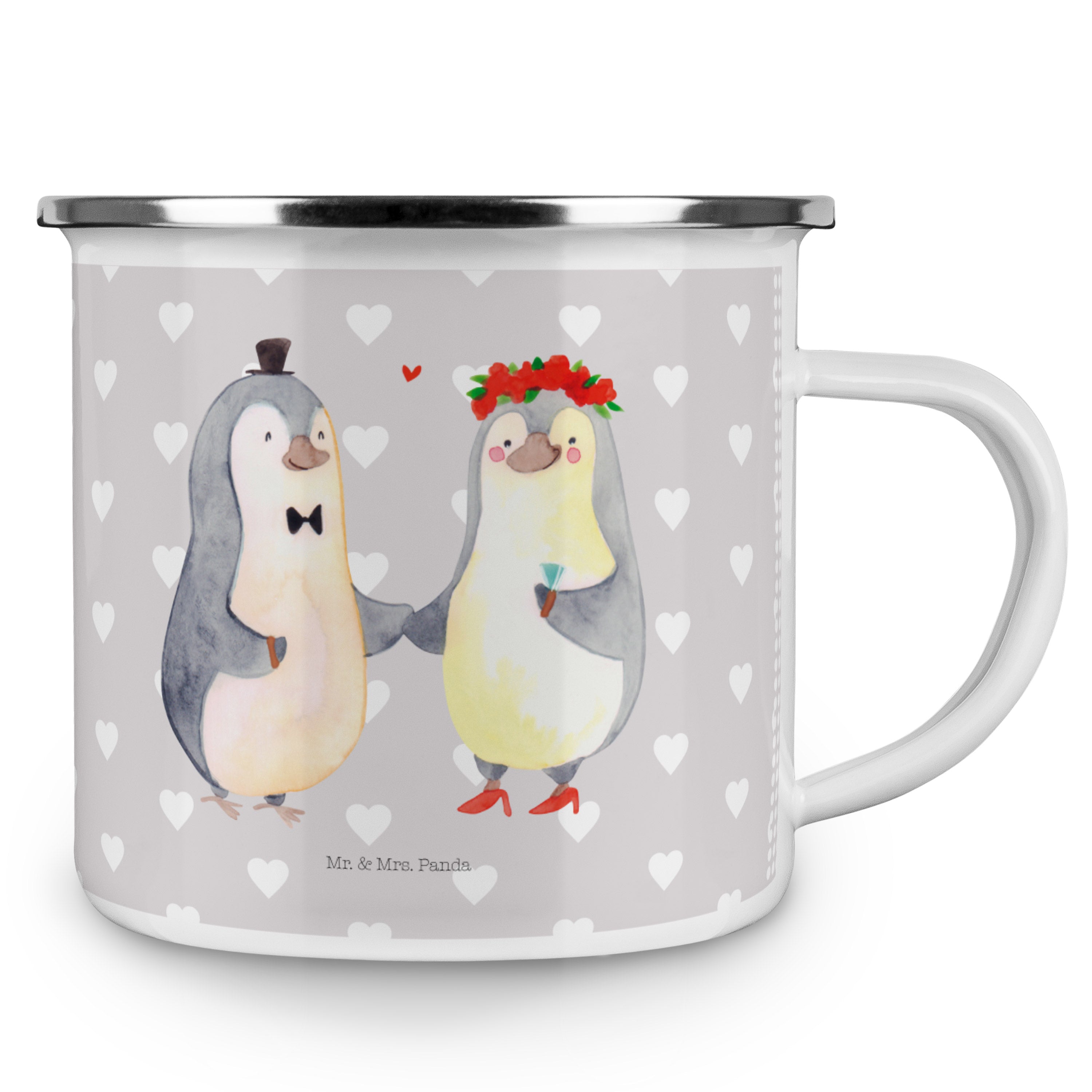 Camping Emaille Tasse Pinguin Heirat Campingtasse, Trinkbecher, Metalltasse, Outdoor Tasse, Emaille Trinkbecher, Blechtasse Outdoor, Emaille Campingbecher, Edelstahl Trinkbecher, Metalltasse für Camping, Kaffee Blechtasse, Camping Tasse Metall, Liebe, Partner, Freund, Freundin, Ehemann, Ehefrau, Heiraten, Verlobung, Heiratsantrag, Liebesgeschenk, Jahrestag, Hocheitstag
