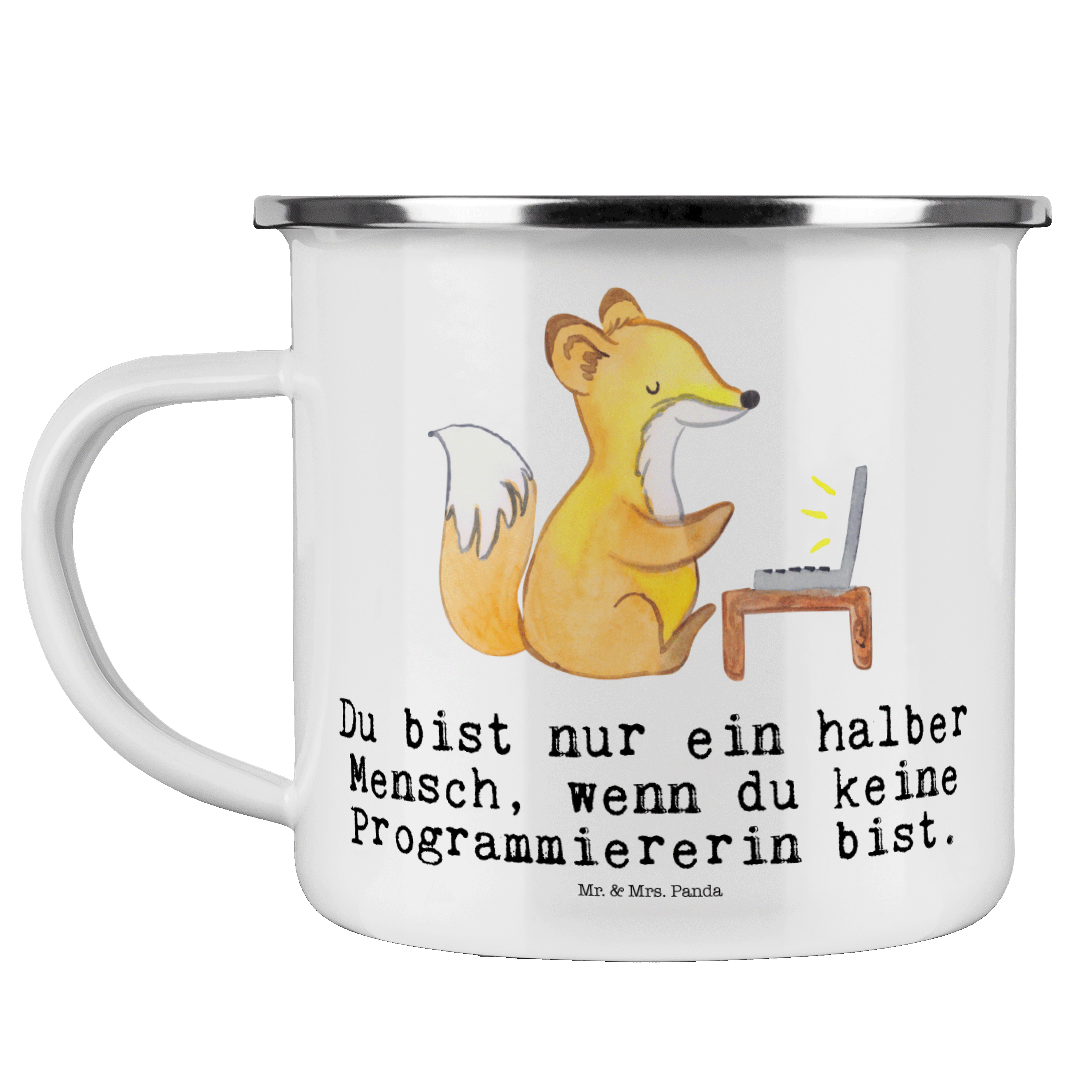 Camping Emaille Tasse Programmiererin mit Herz