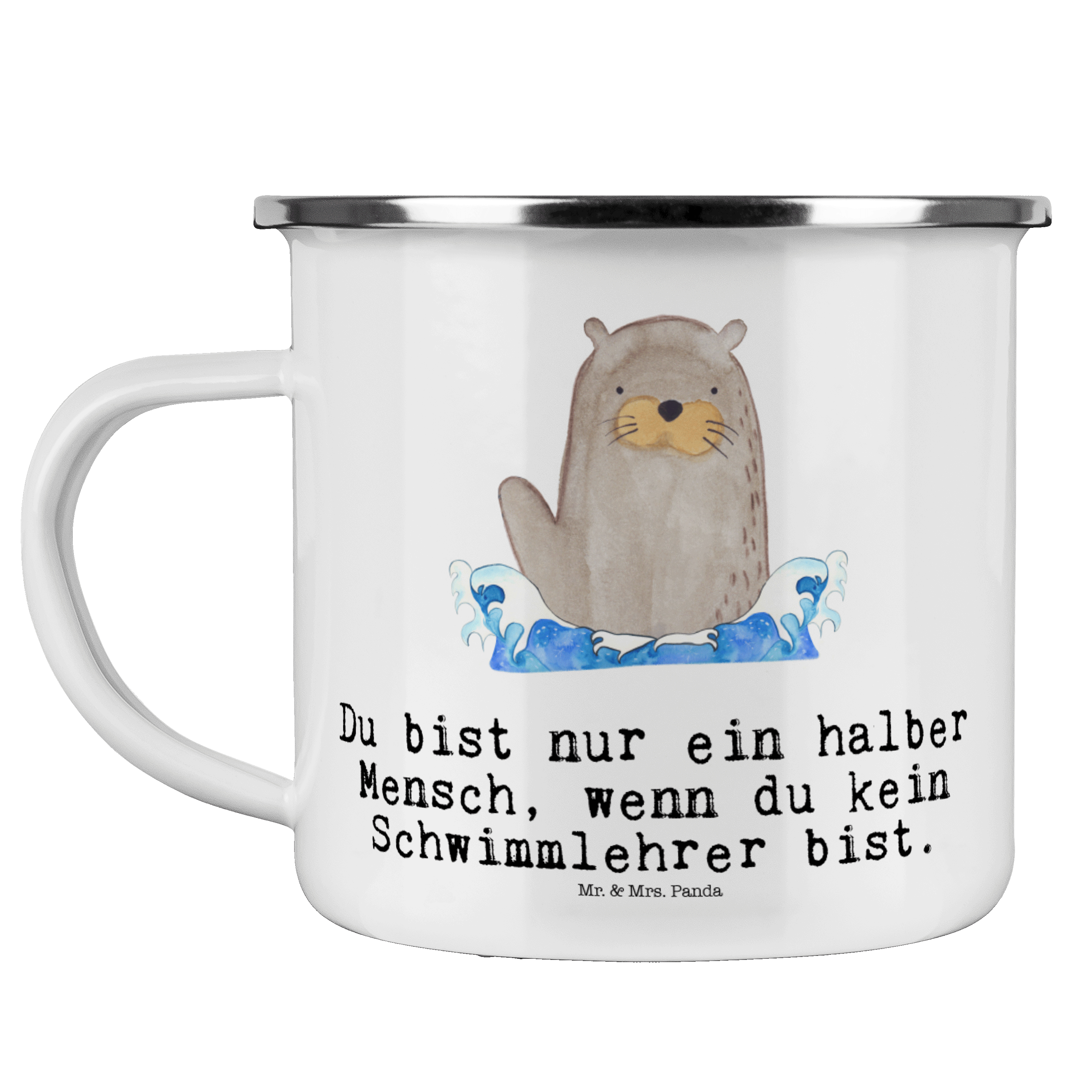 Camping Emaille Tasse Schwimmlehrer mit Herz