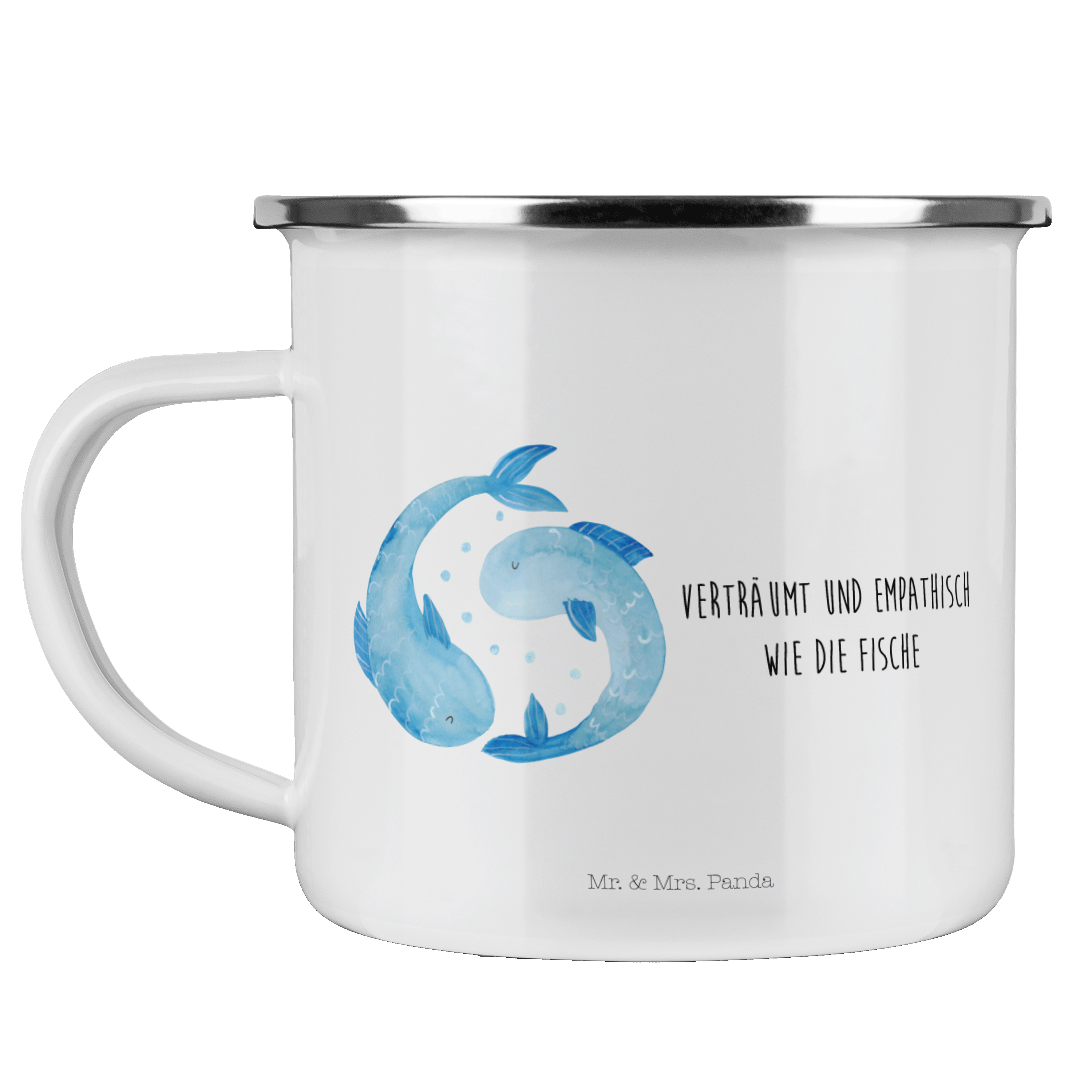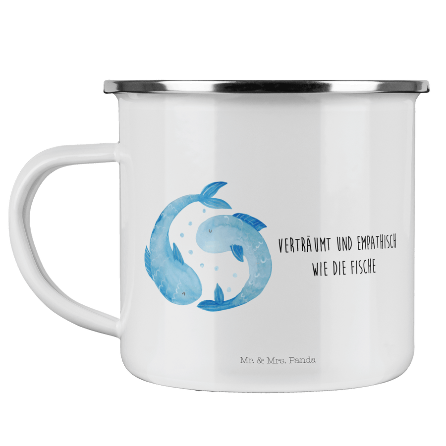 Camping Emaille Tasse Sternzeichen Fische - mit Spruch - Weiß