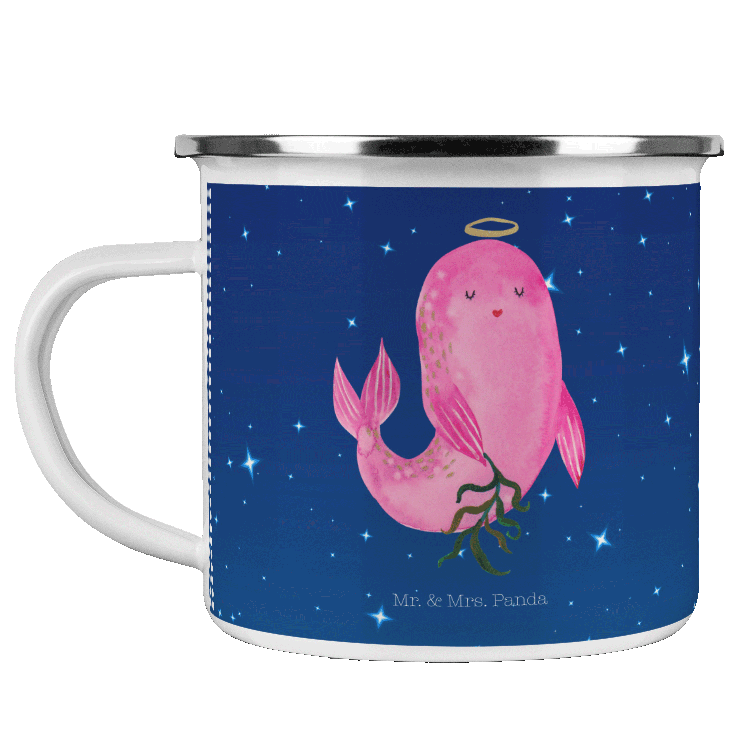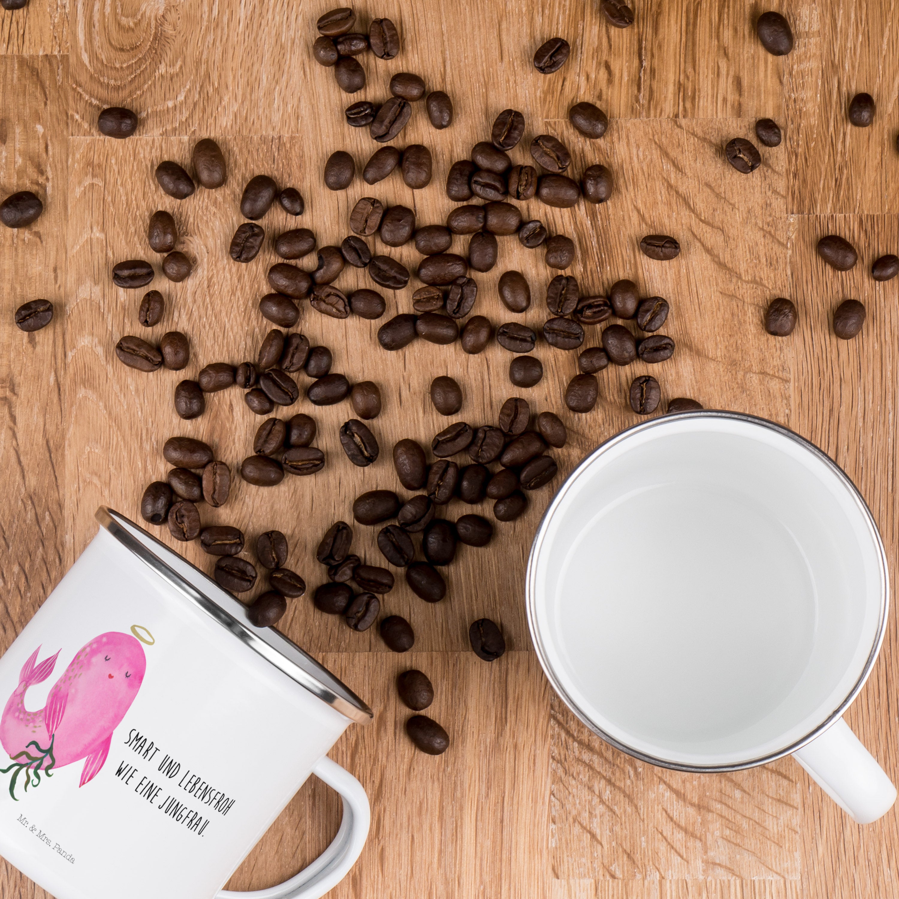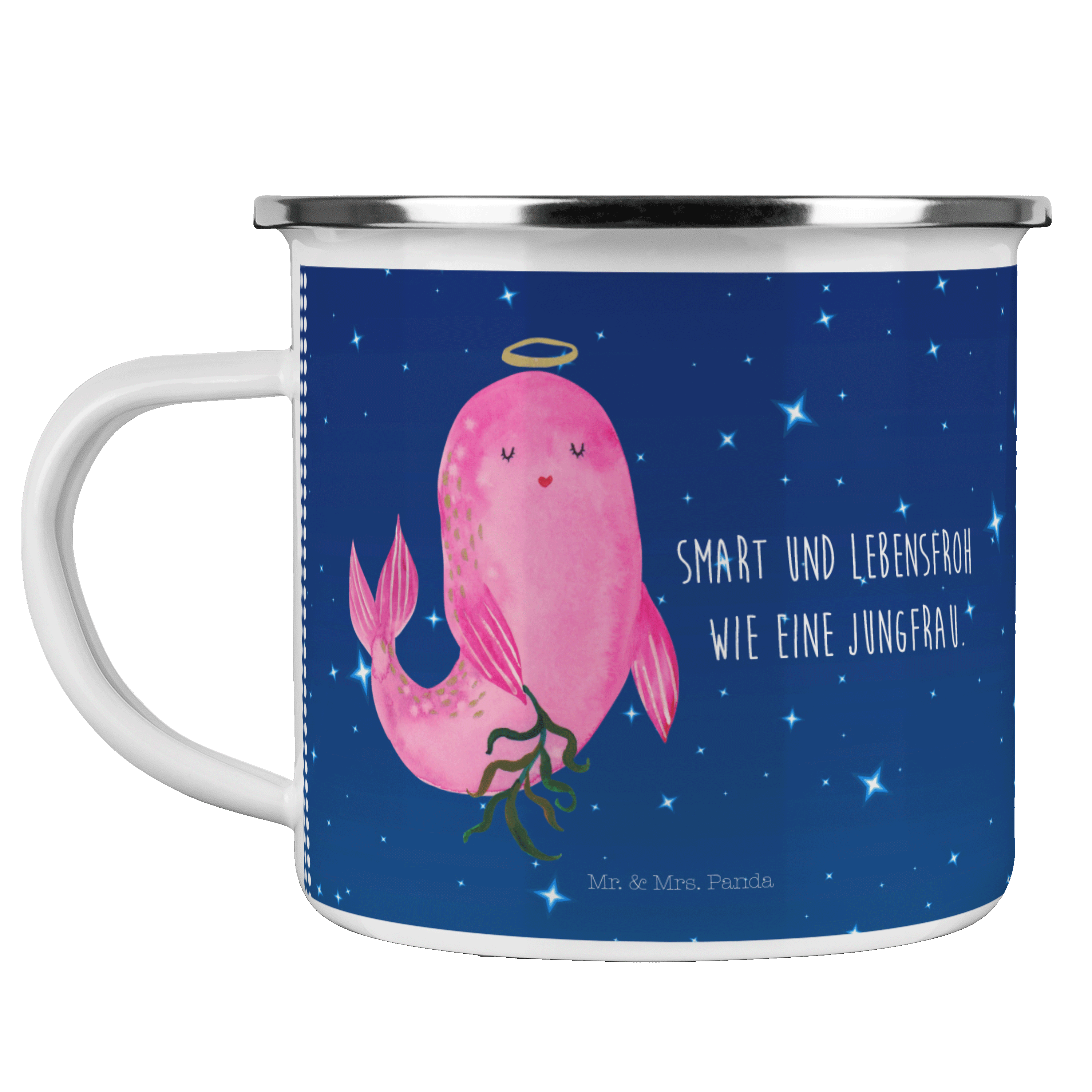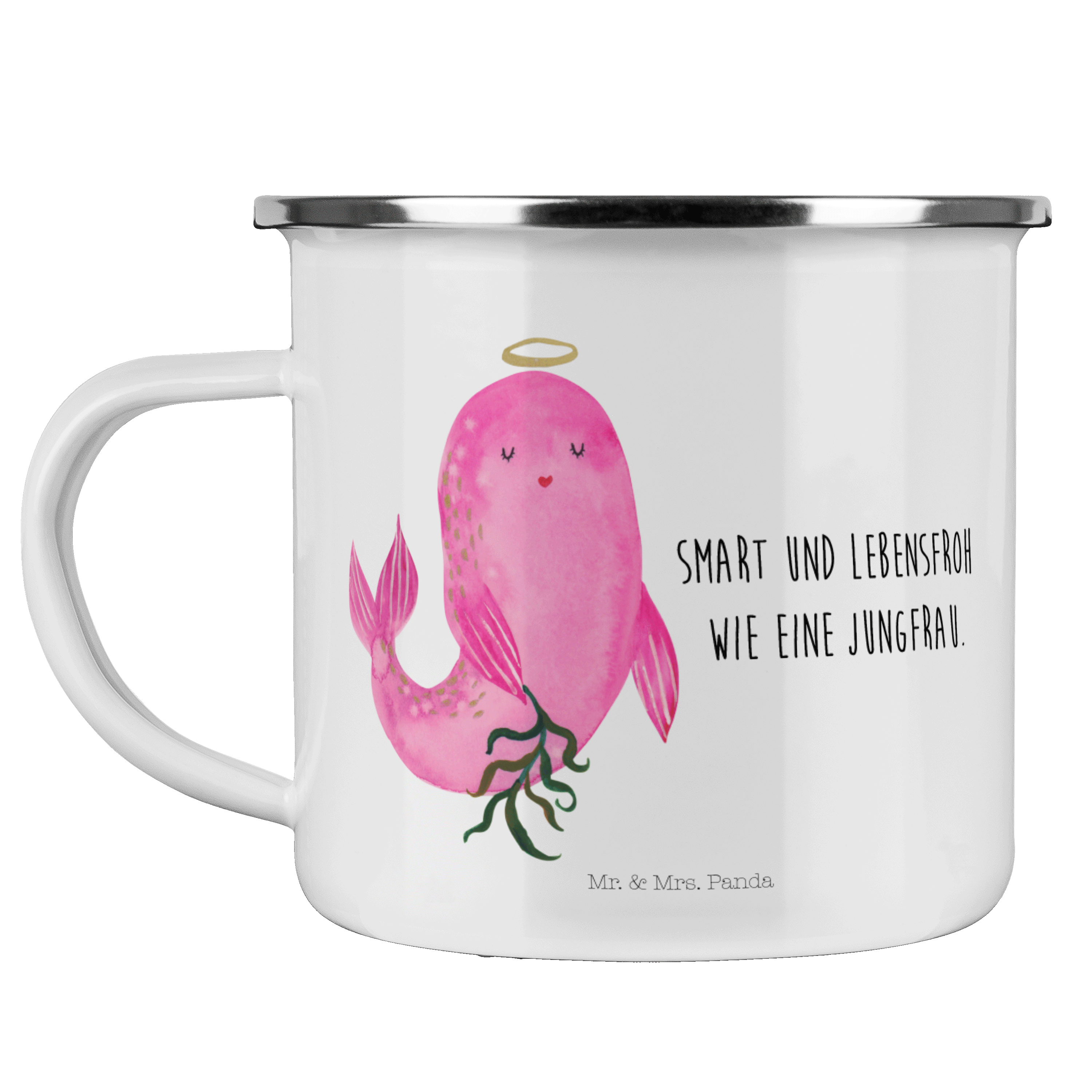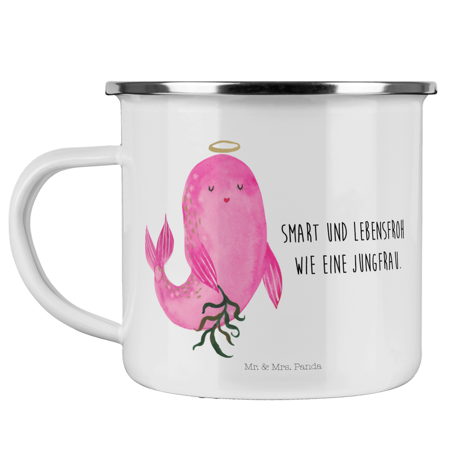 Camping Emaille Tasse Sternzeichen Jungfrau - mit Spruch - Weiß