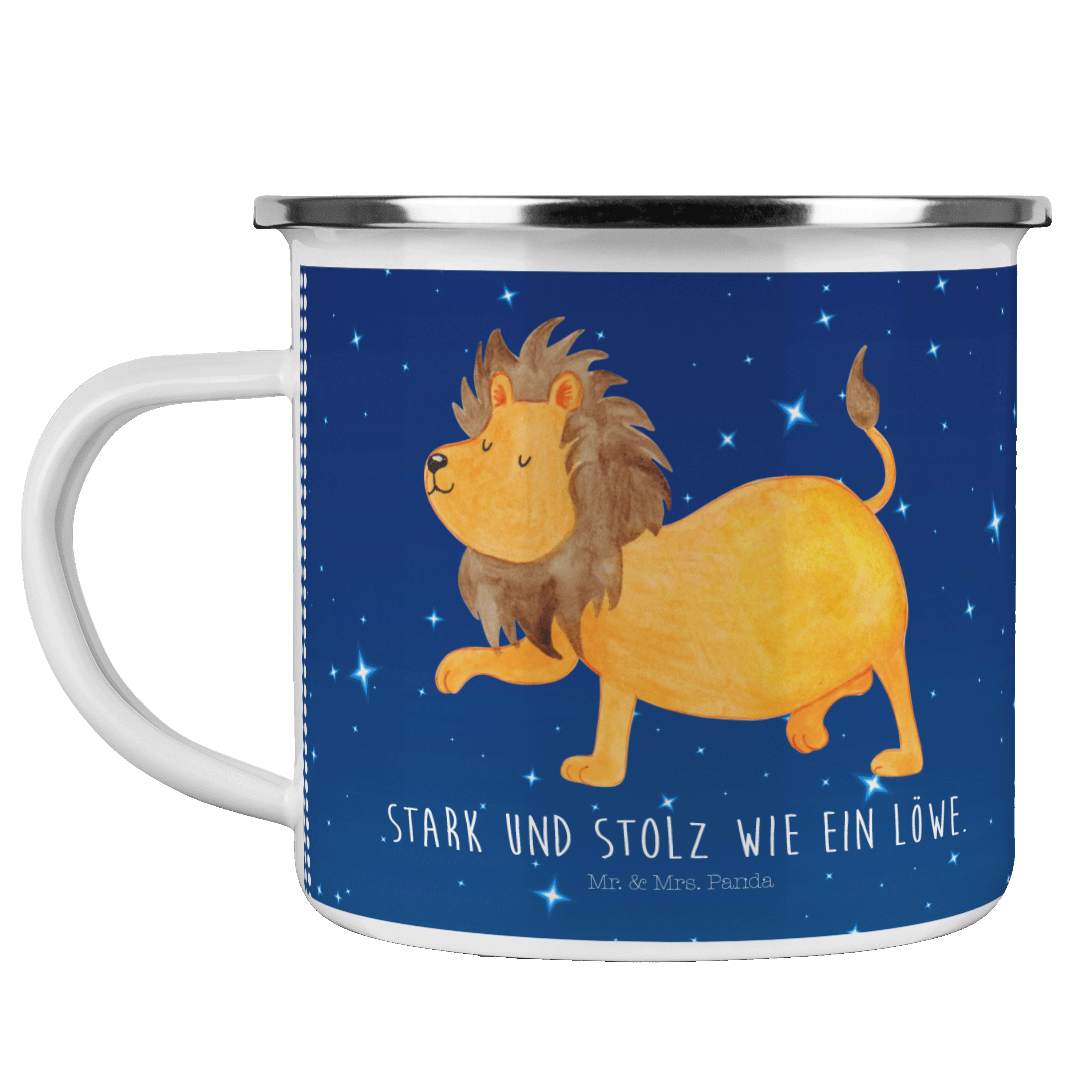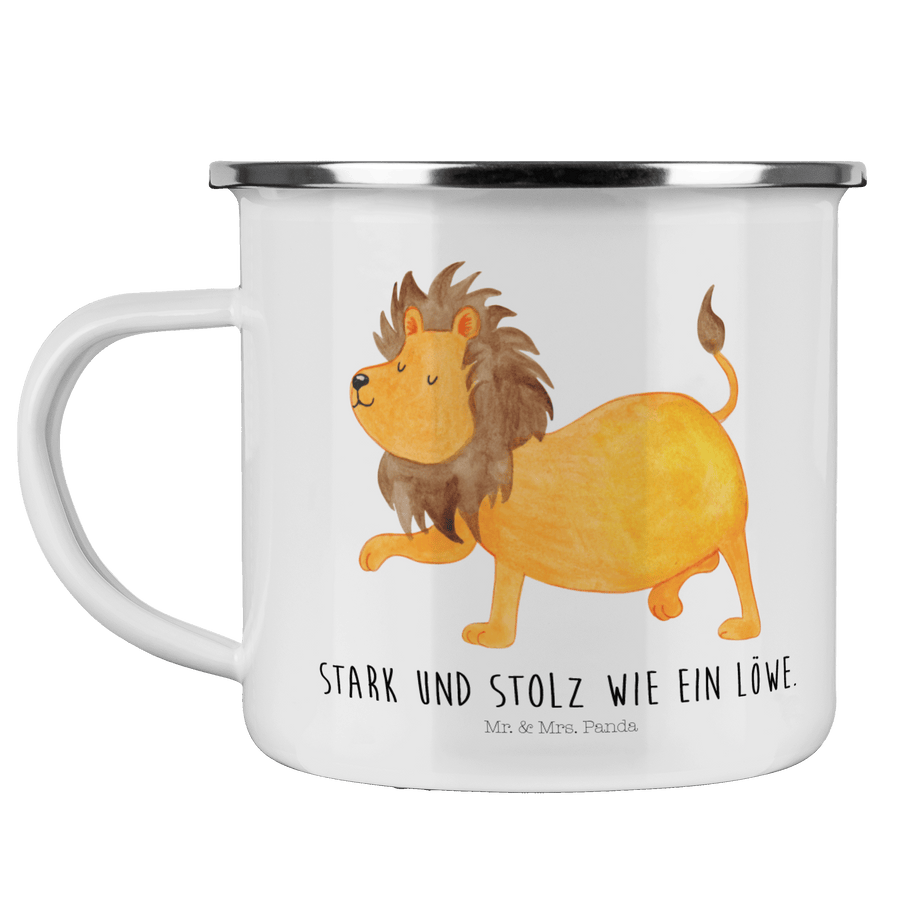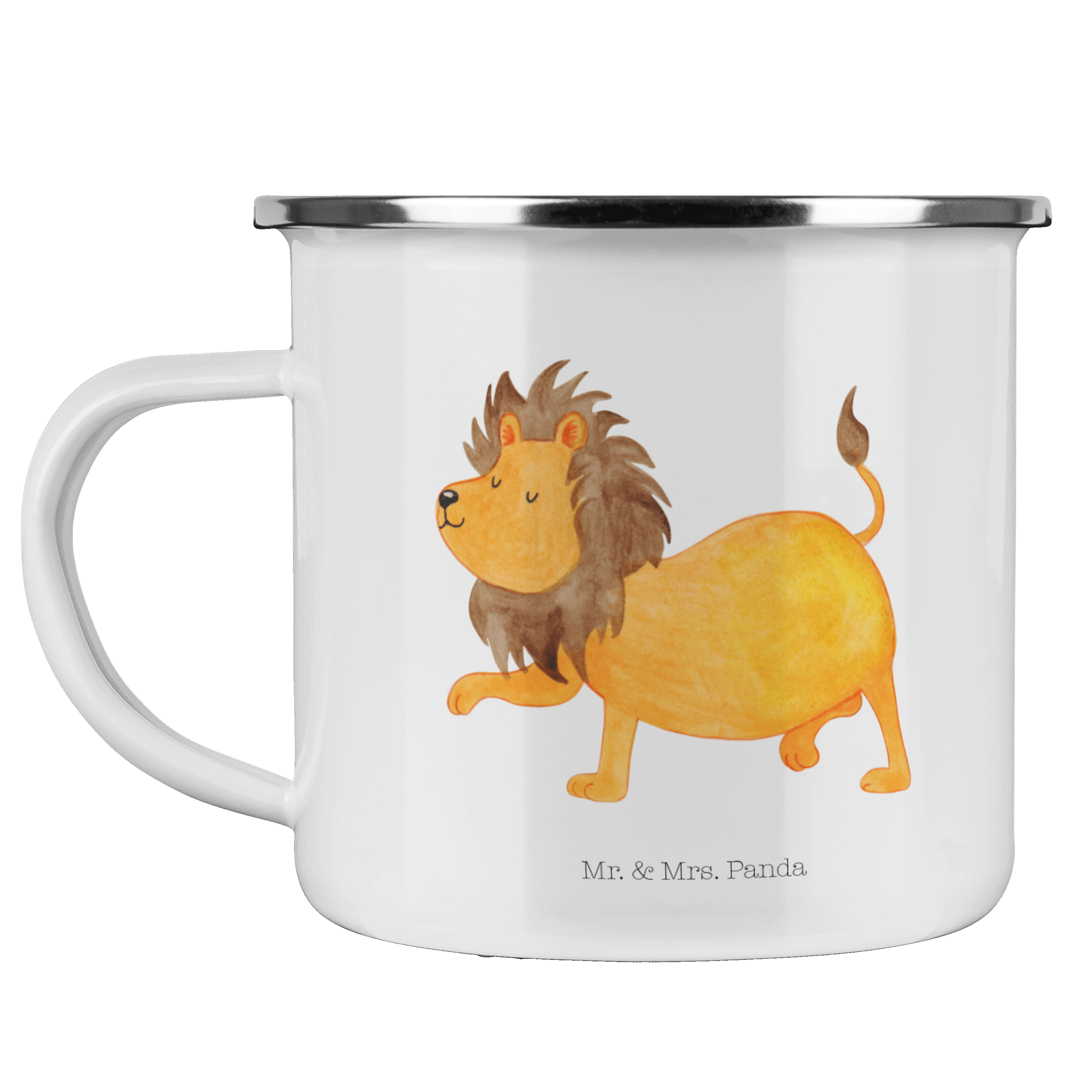 Camping Emaille Tasse Sternzeichen Löwe - mit Spruch - Weiß