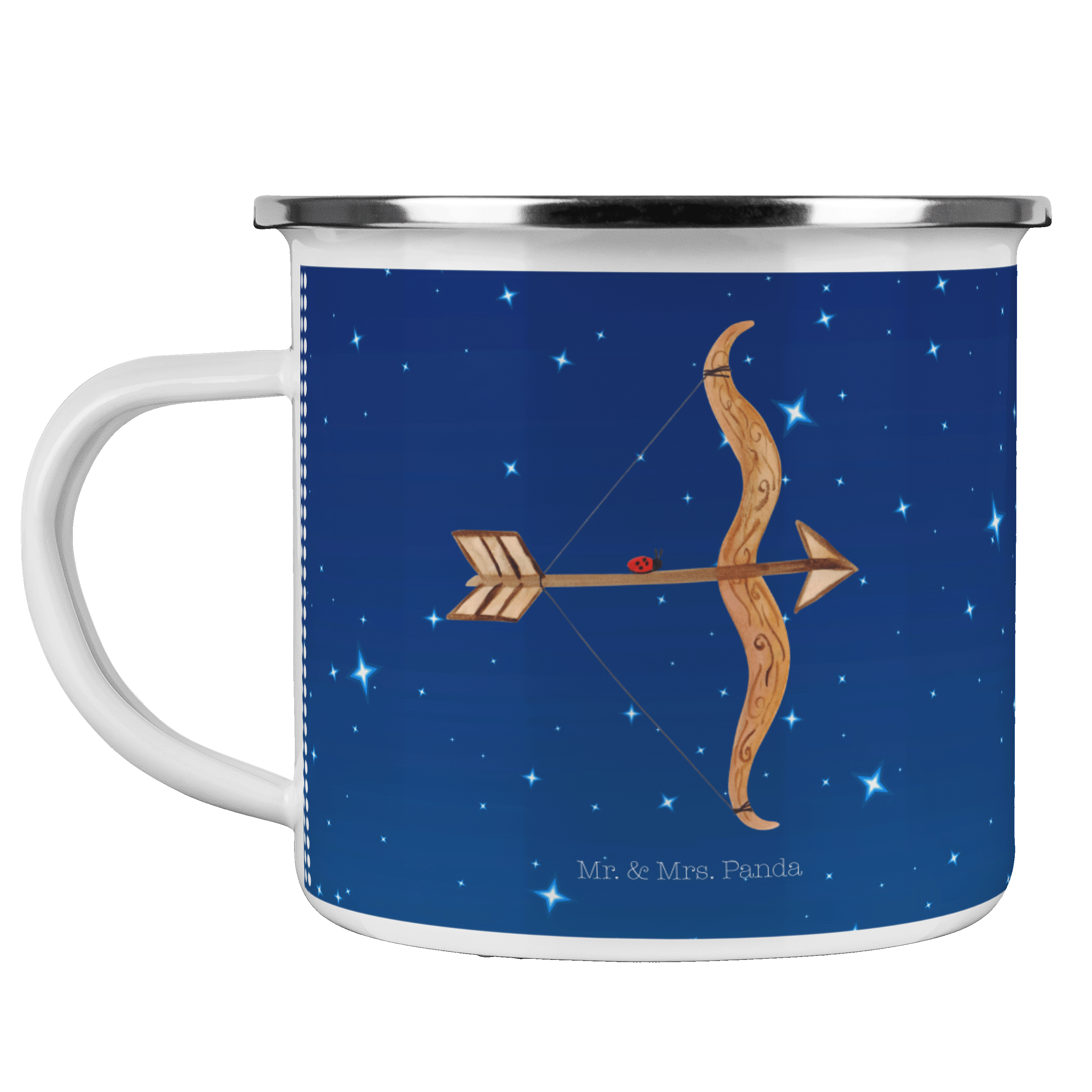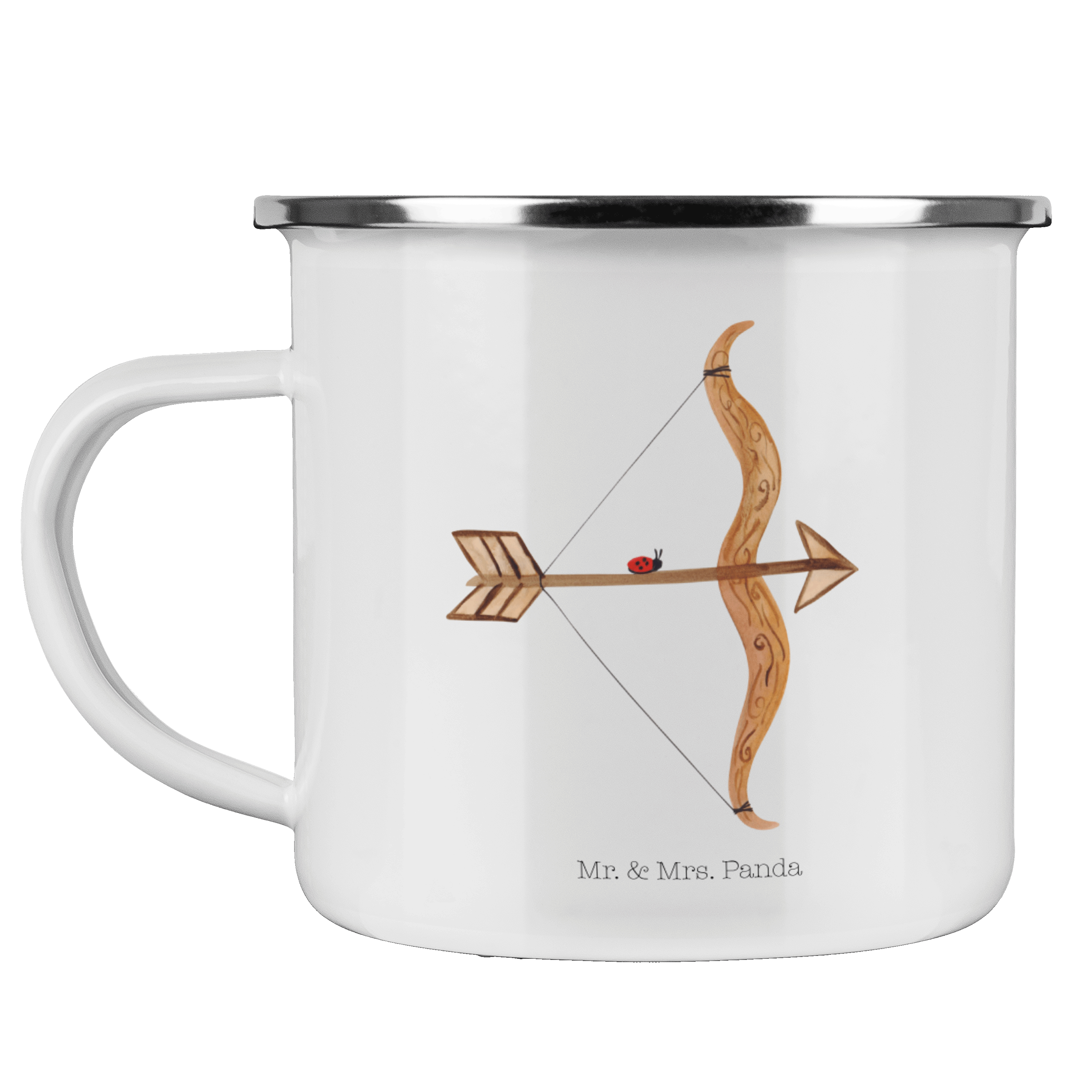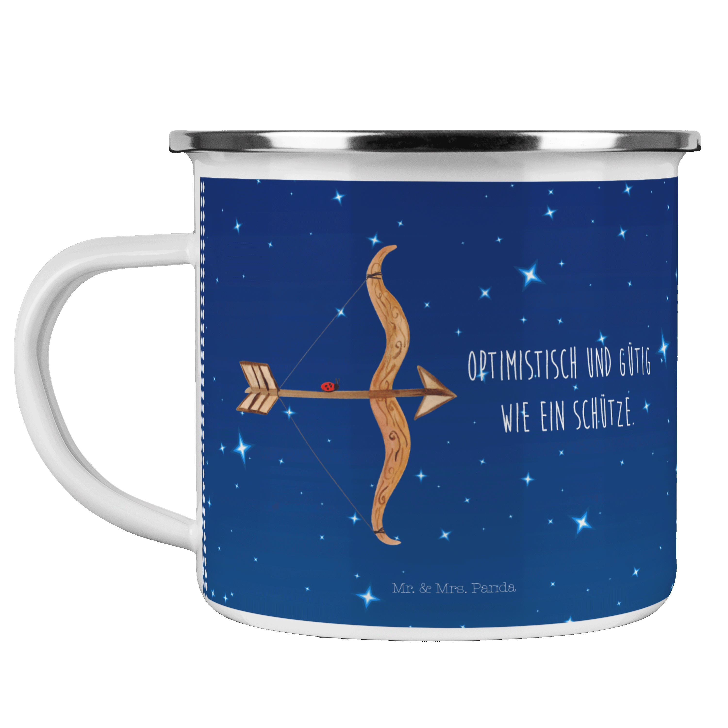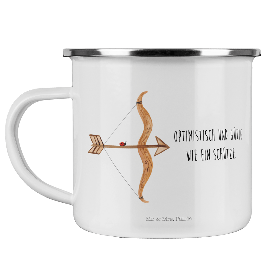 Camping Emaille Tasse Sternzeichen Schütze - mit Spruch - Weiß