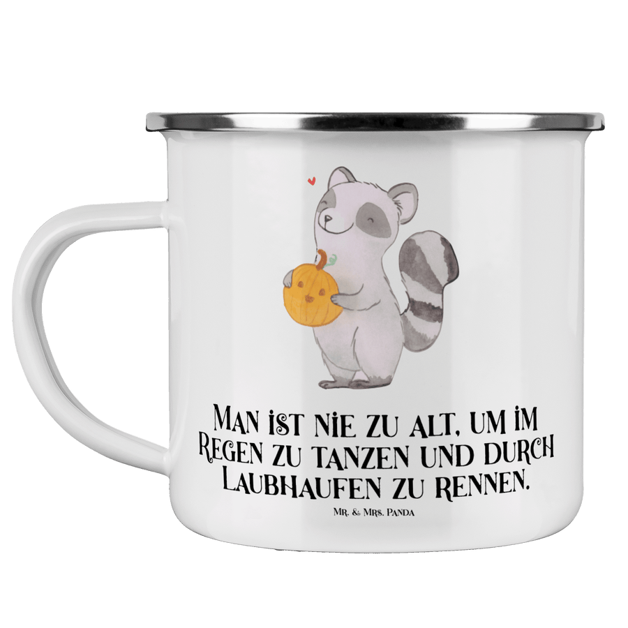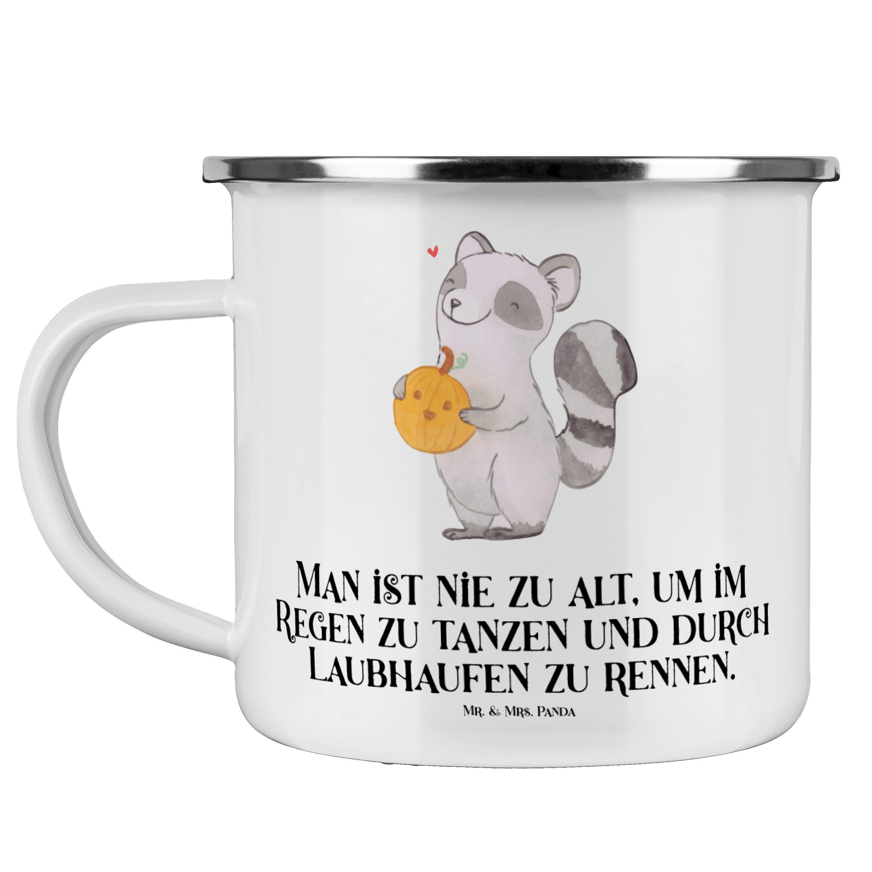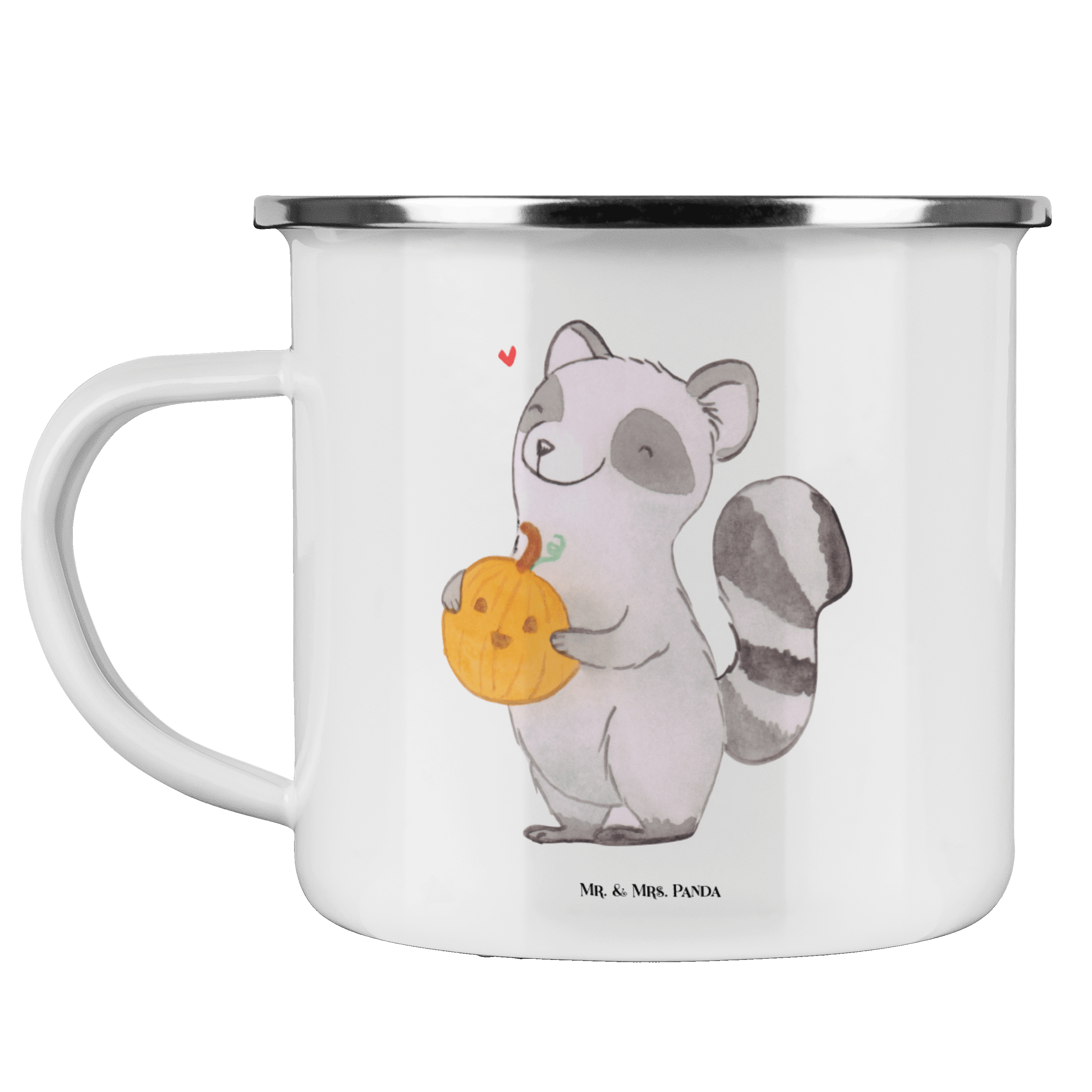 Camping Emaille Tasse Waschbär Kürbis - mit Spruch