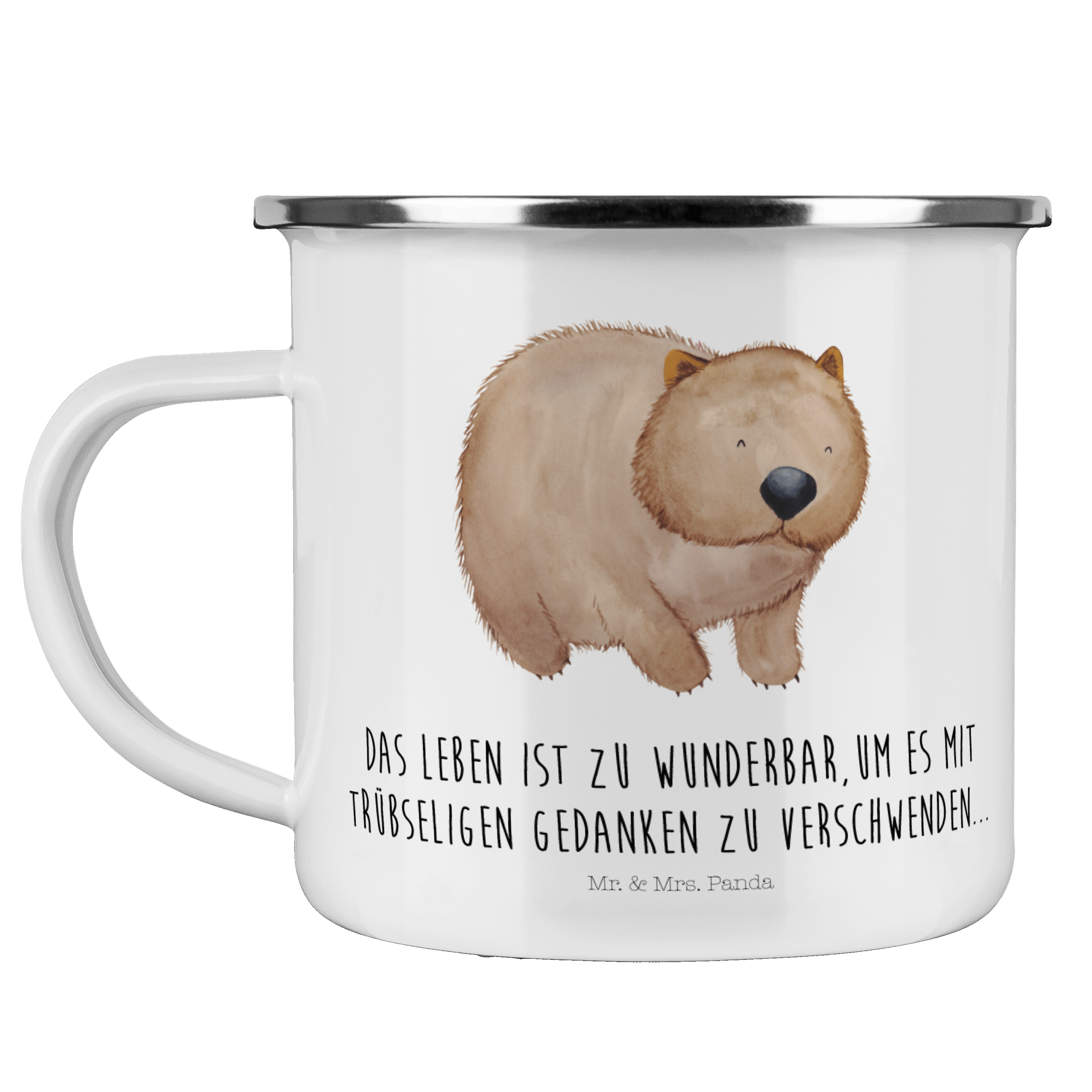 Camping Emaille Tasse Wombat - mit Spruch