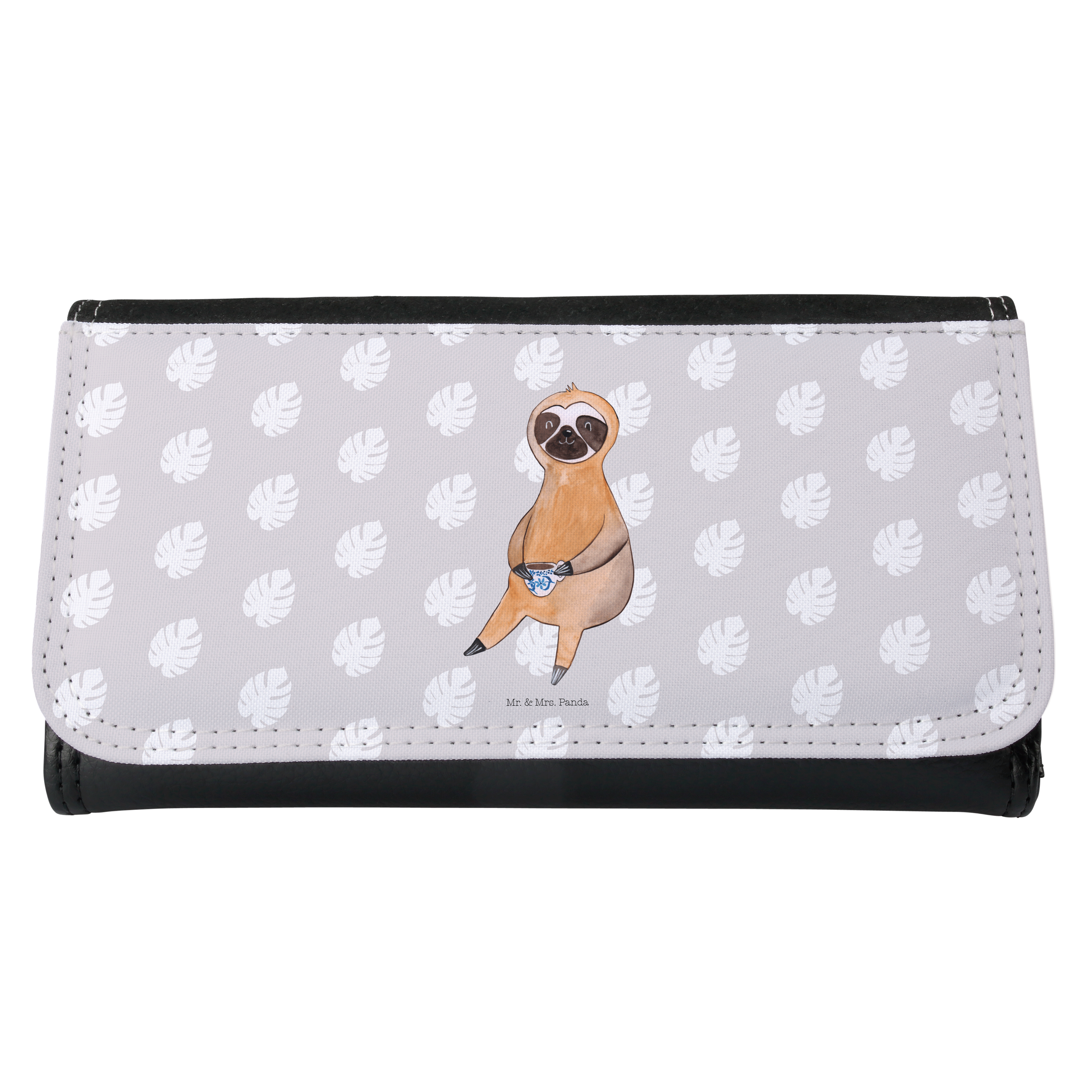 Damen Portemonnaie Faultier Kaffee - mit Spruch - Grau Pastell