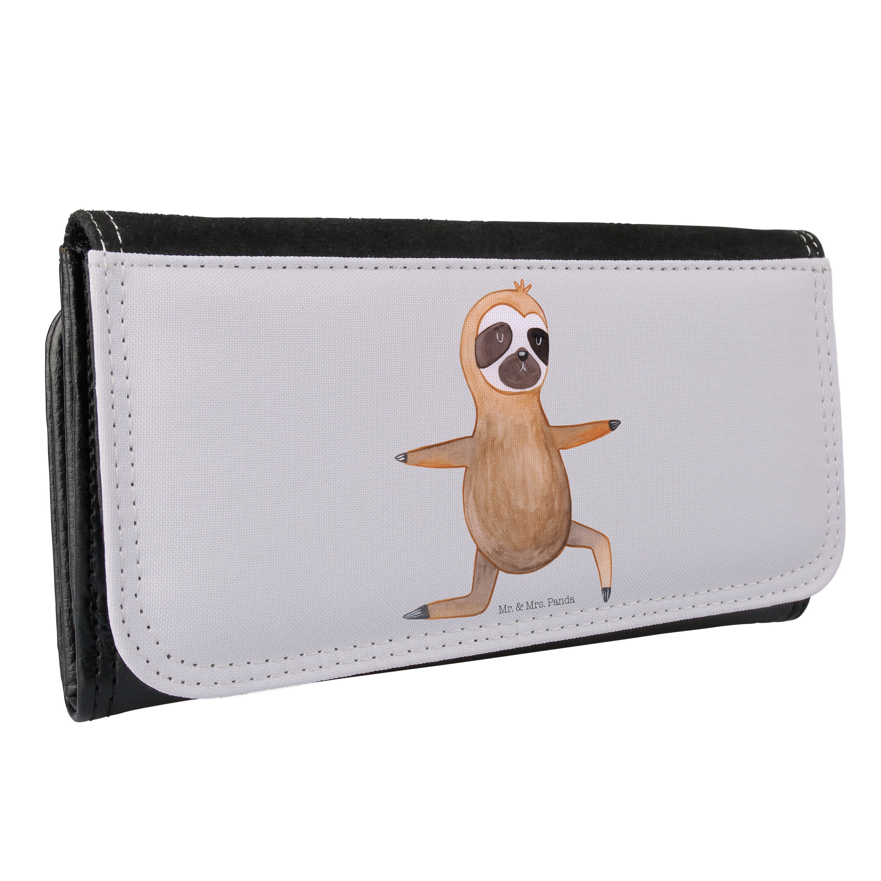 Damen Portemonnaie Faultier Yoga - mit Spruch - Grau Pastell