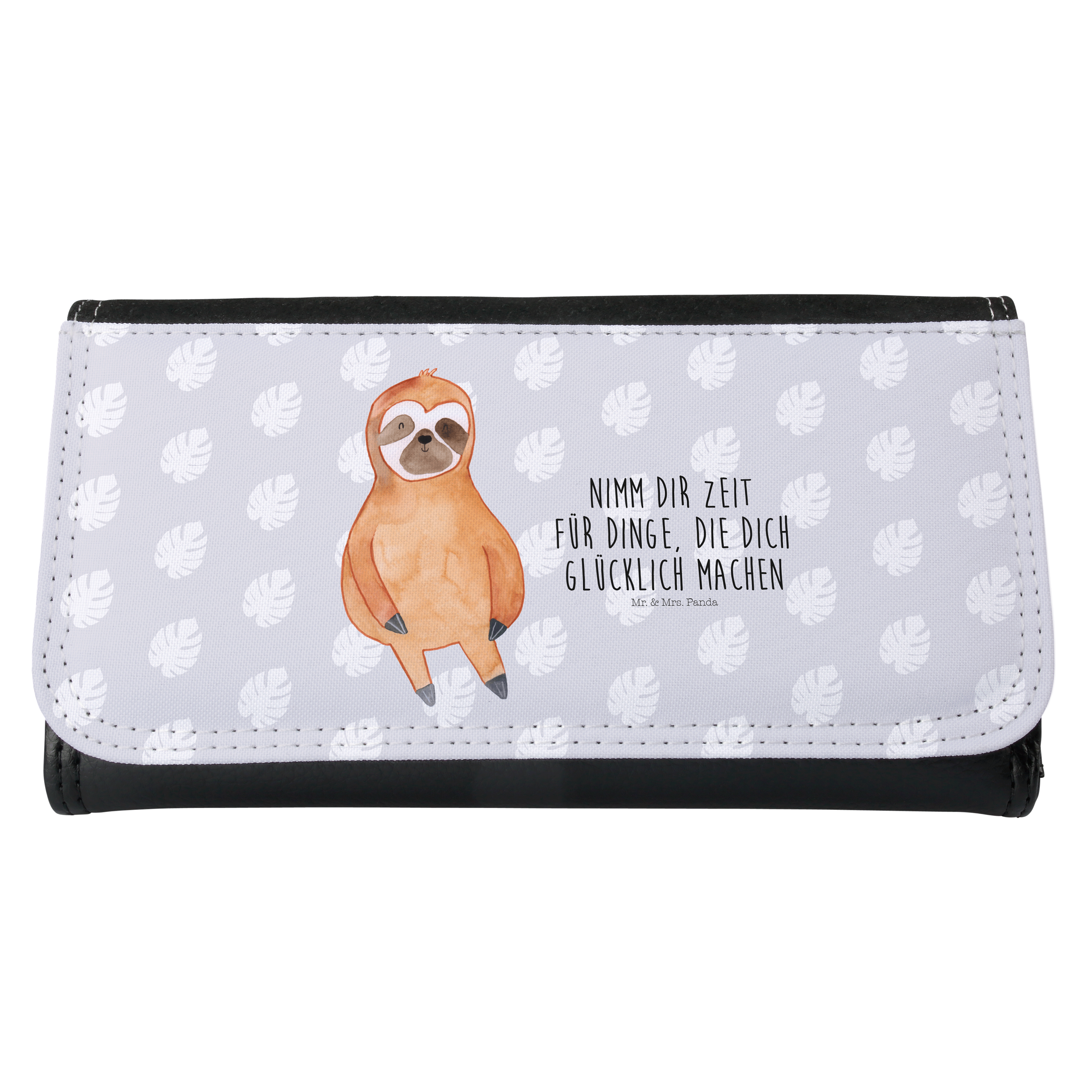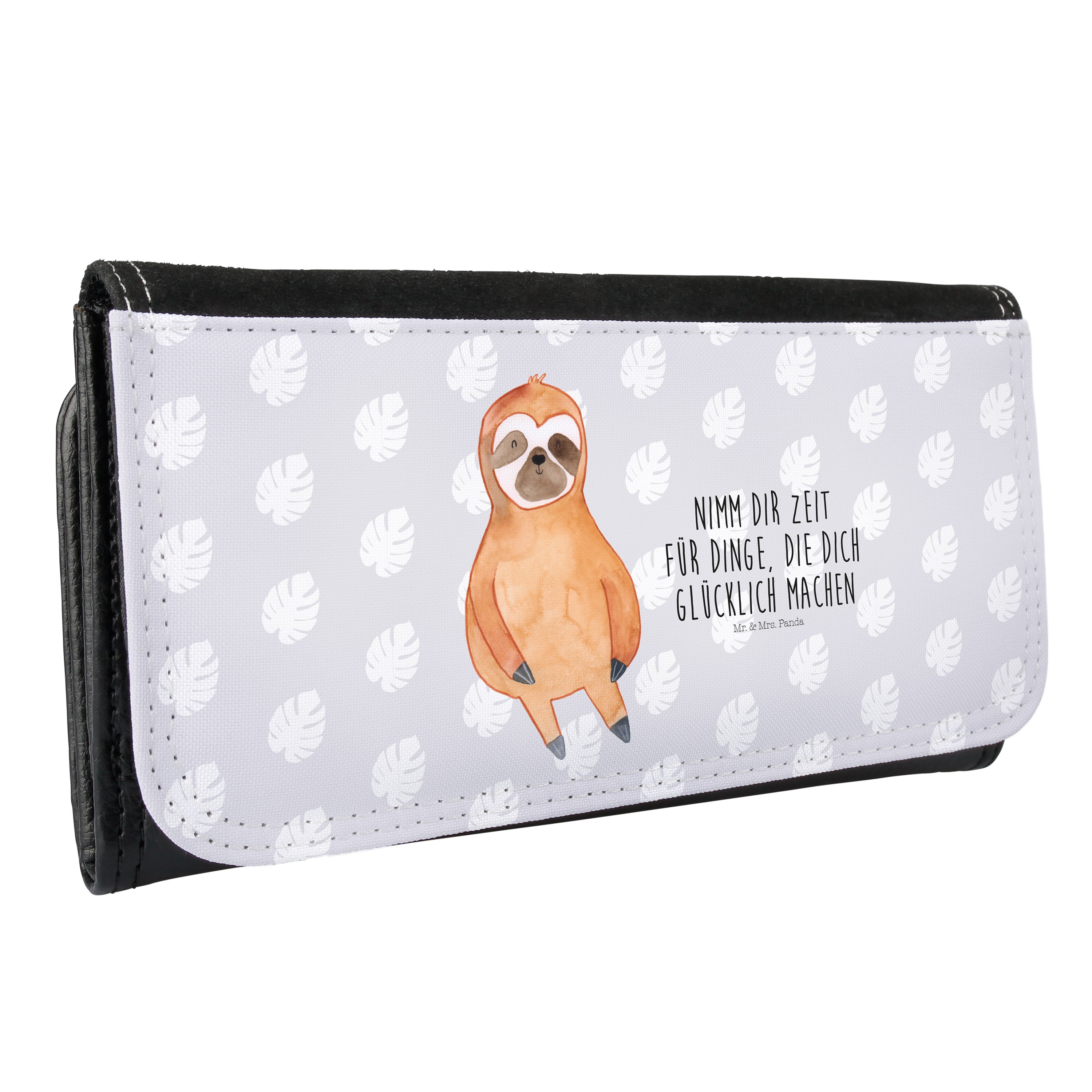 Damen Portemonnaie Faultier Zufrieden - mit Spruch - Grau Pastell